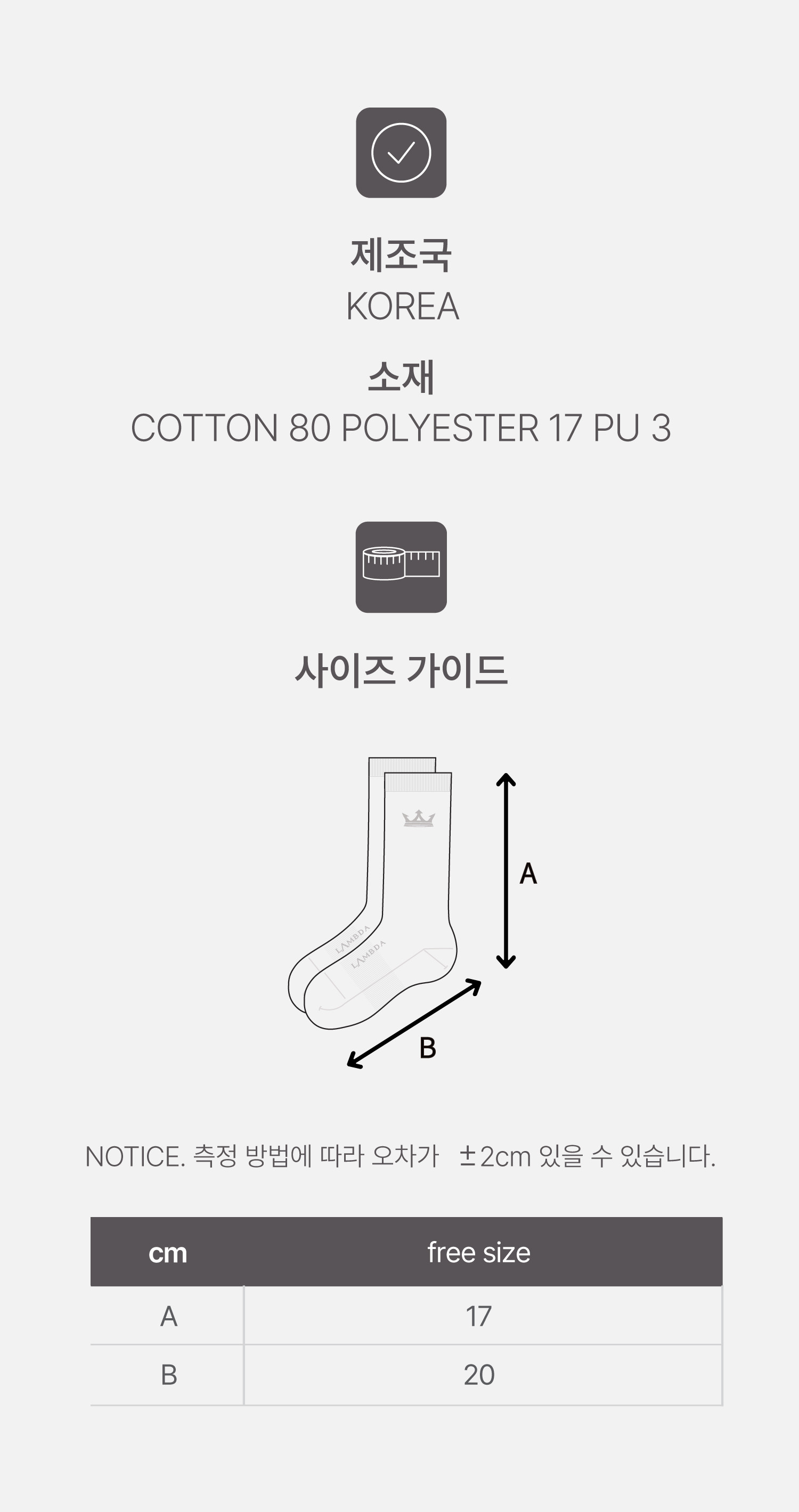 | 치수 | FREE SIZE 발목 길이 : 종아리 중단 |