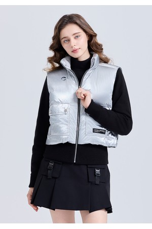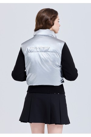 여성 글로시 숄더 프리 스윙 구스다운 자켓 실버
