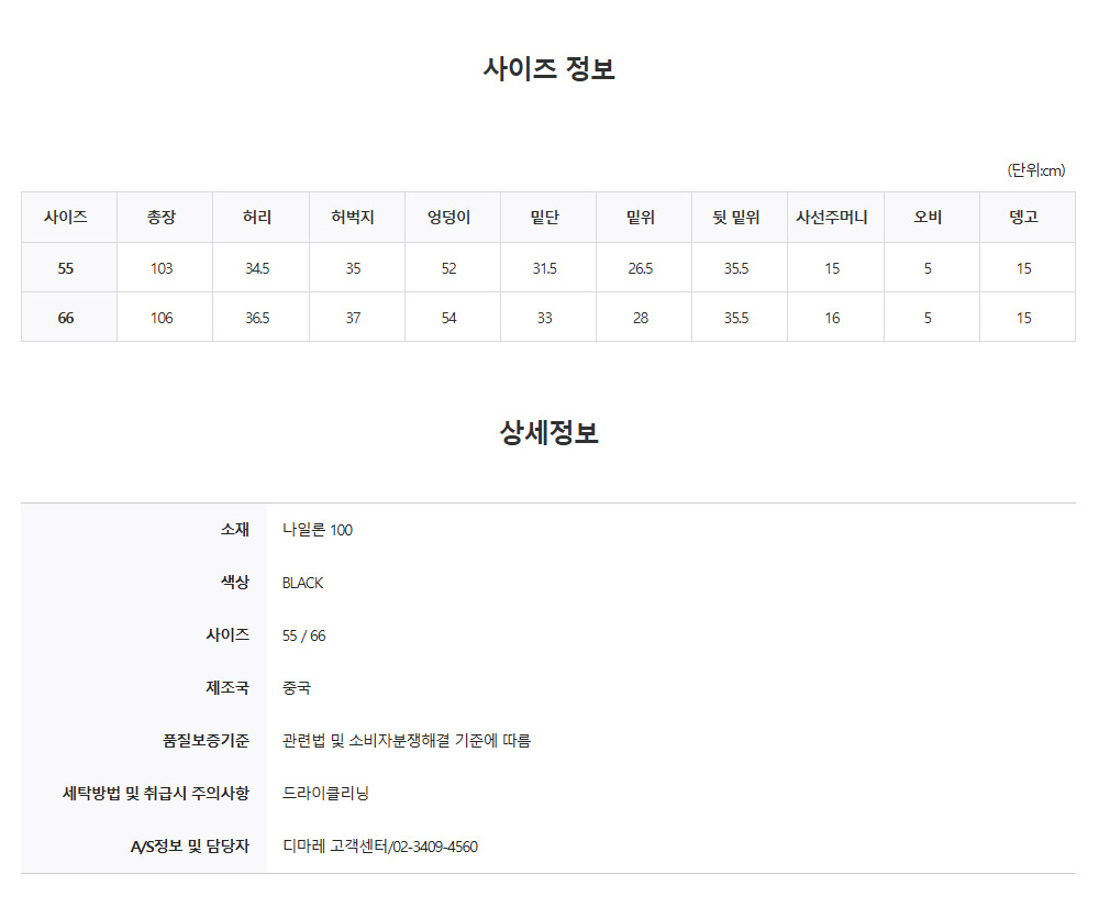 | 세탁방법 및 취급시 주의사항 | 상품상세설명참조 |