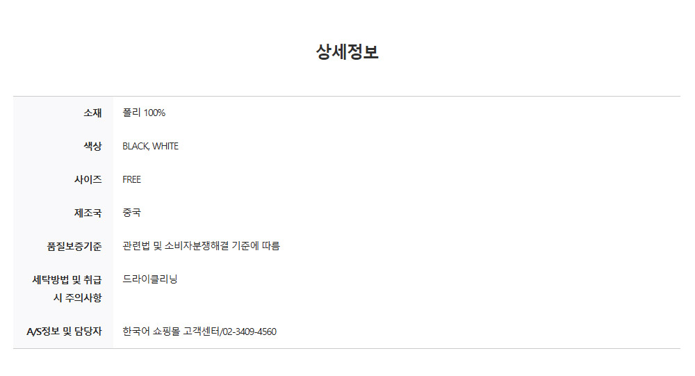 | 세탁방법 및 취급시 주의사항 | 상품상세설명참조 |