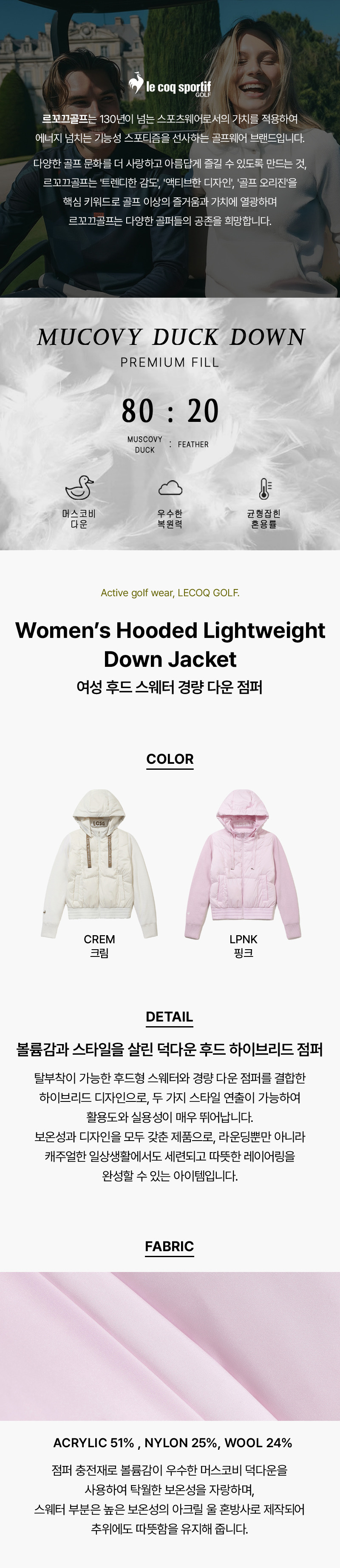 여성 후드 스웨터 경량 다운 점퍼 _CREM GQ422LKCO1