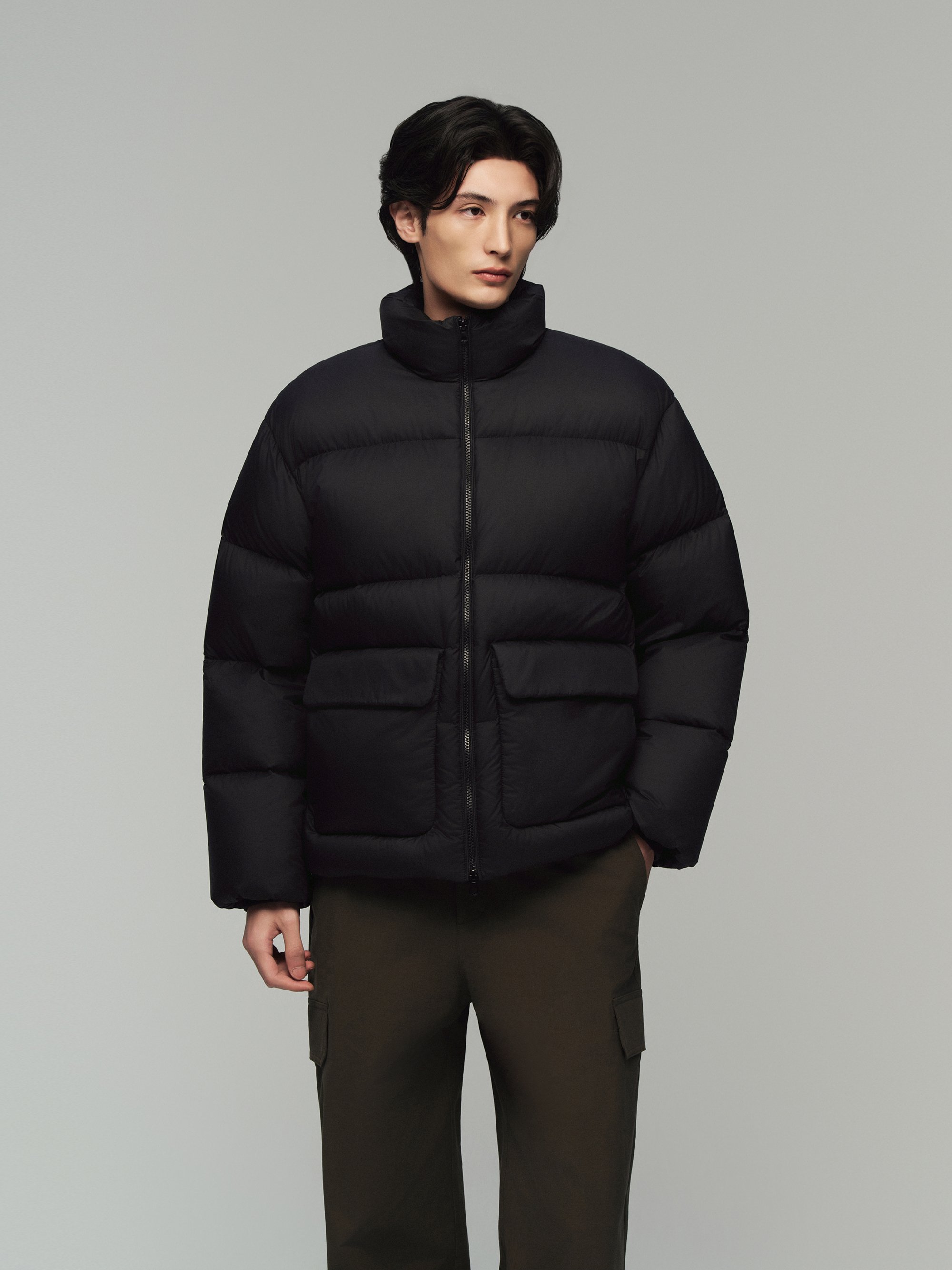 아웃포켓 하이넥 숏 컴포트 헤비 다운자켓
