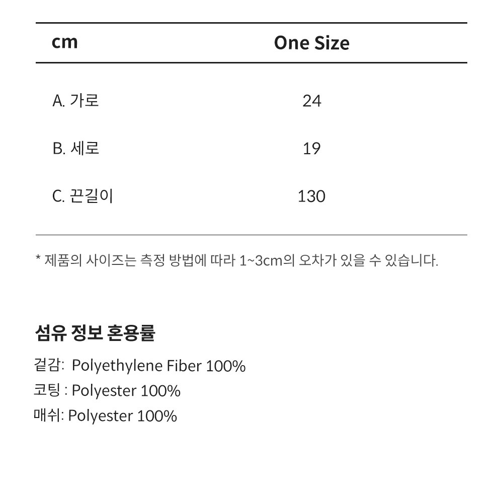 | 크기 | 상세 사이즈 본문 이미지 참고 *측정 방식에 따라 오차가 있을 수 있음 |
