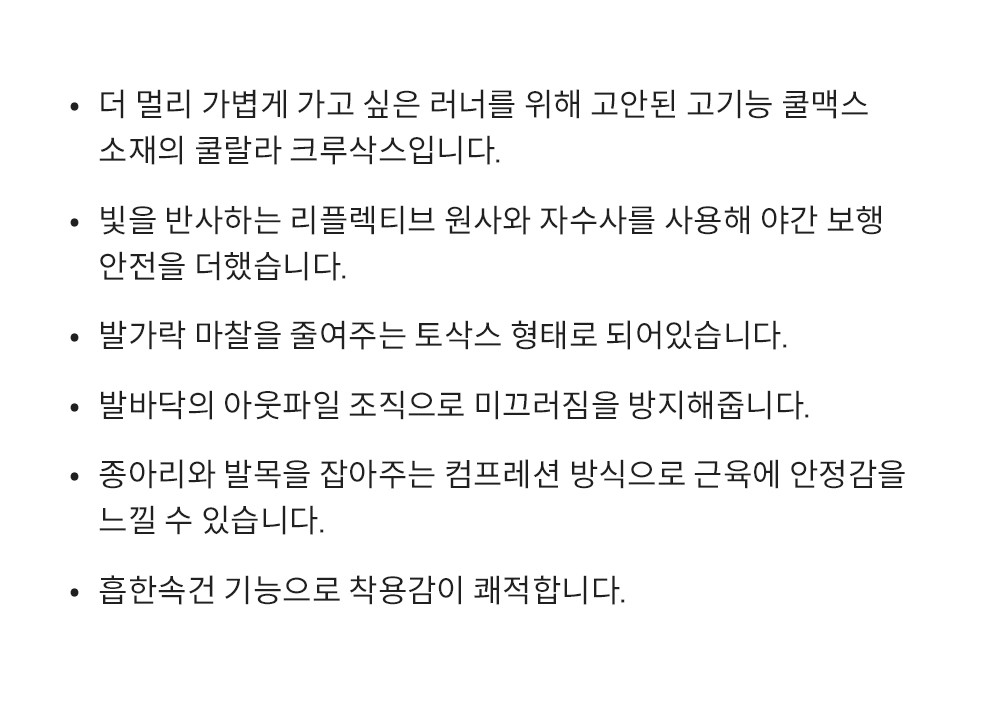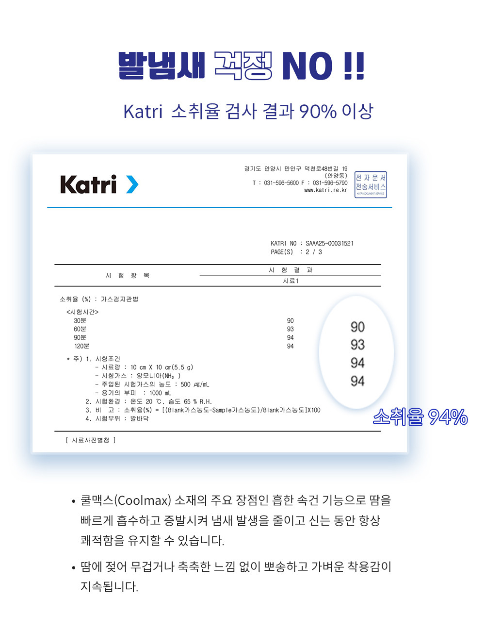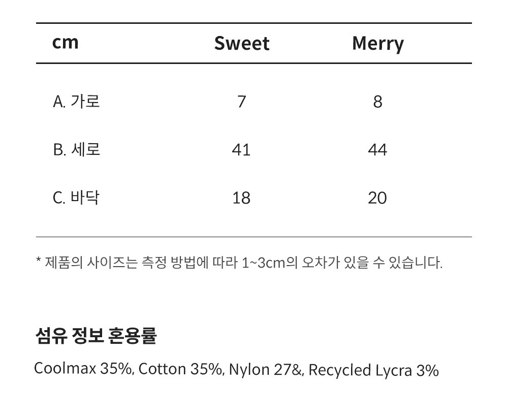 | 소재 | Coolmax 35%, Cotton 35%, Nylon 27&, Recycled Lycra 3% |