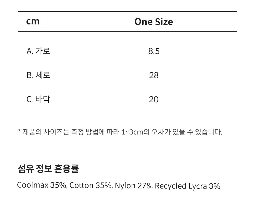 | 소재 | Coolmax 35%, Cotton 35%, Nylon 27&, Recycled Lycra 3% |