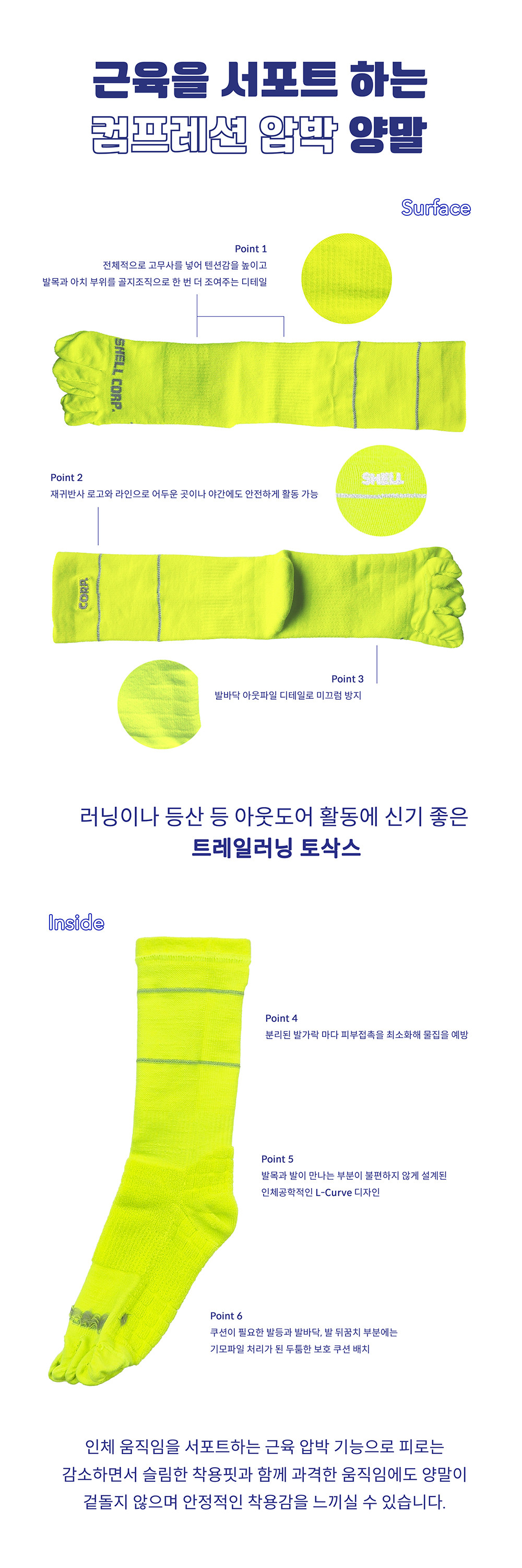 쿨랄라 쿨맥스 컴프레션 트레일러닝 토삭스 - 니삭스 - 3 Colors