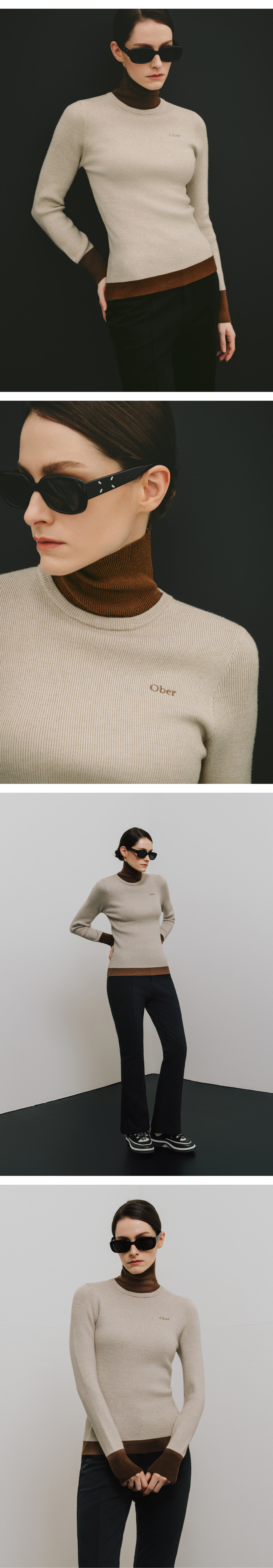 [Basic] 레이어드 배색 폴라 니트