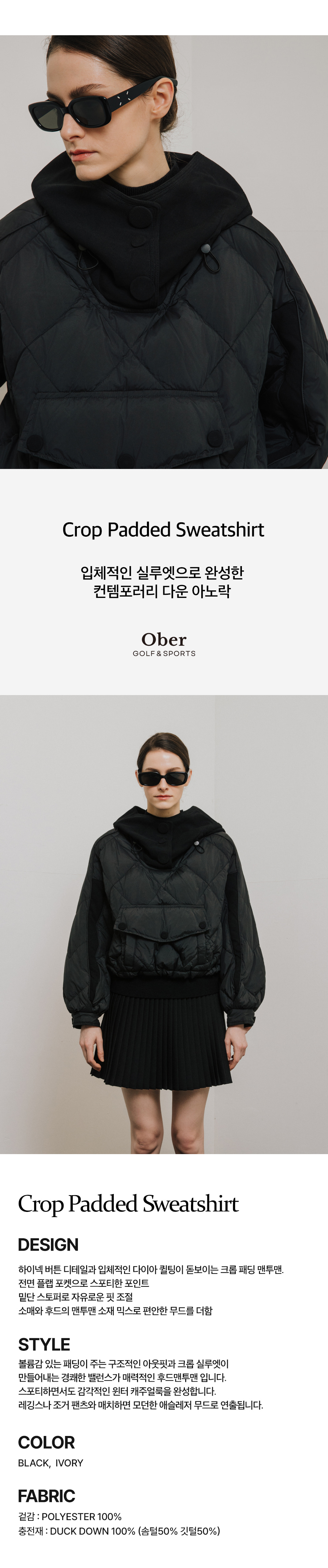 다운 크롭 패딩맨투맨