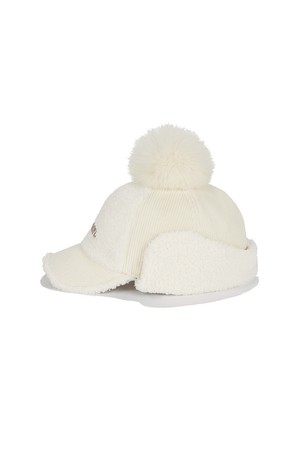 리얼 퍼방울 코듀로이 귀달이 캡 BEIGE (WOMAN)