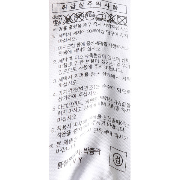 | 세탁방법 및 취급시 주의사항 | 제품 라벨(Label) 및 태그(Tag) 참조 |
