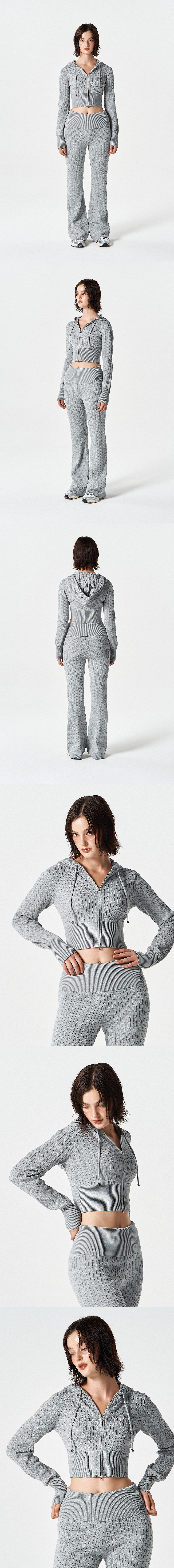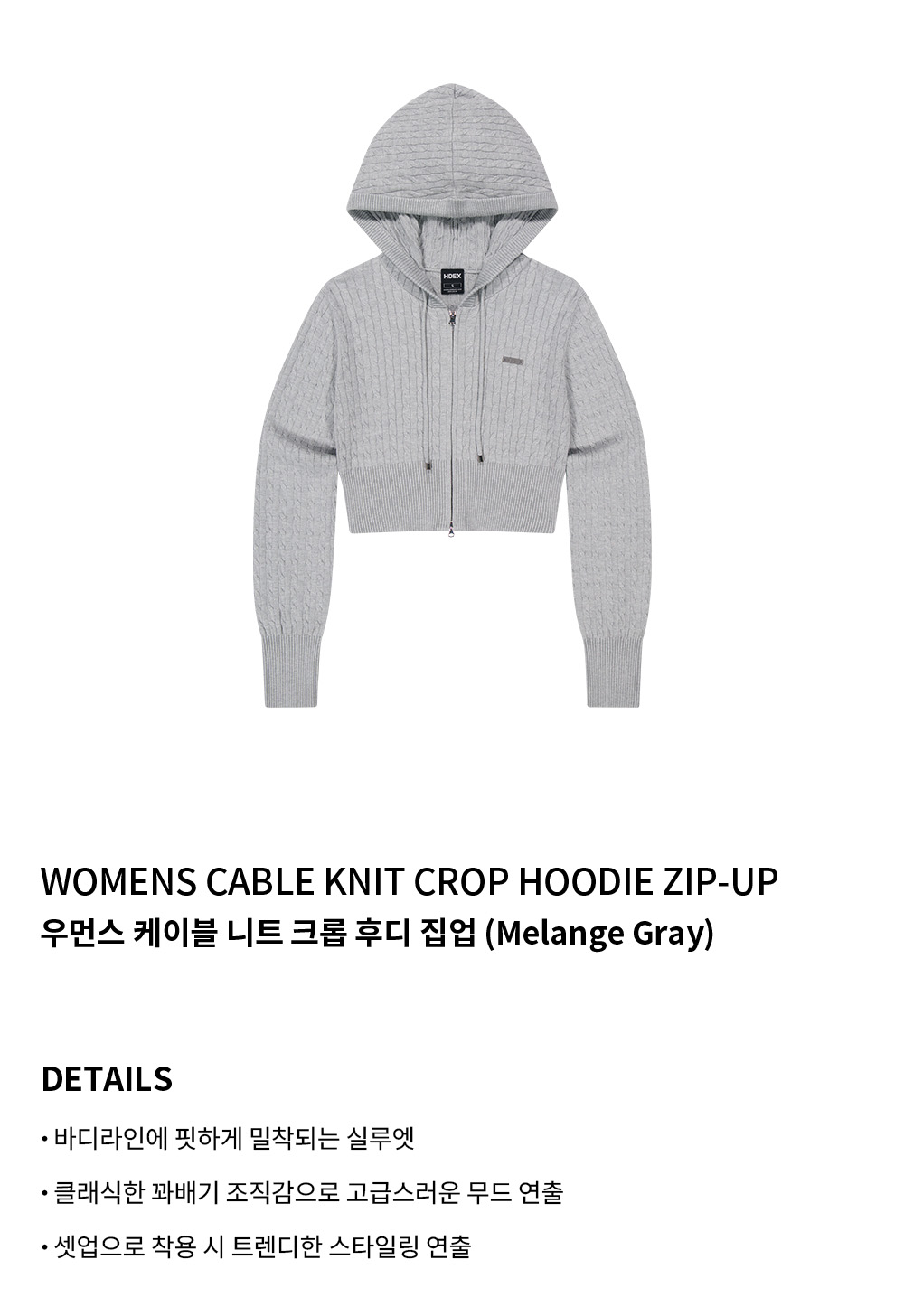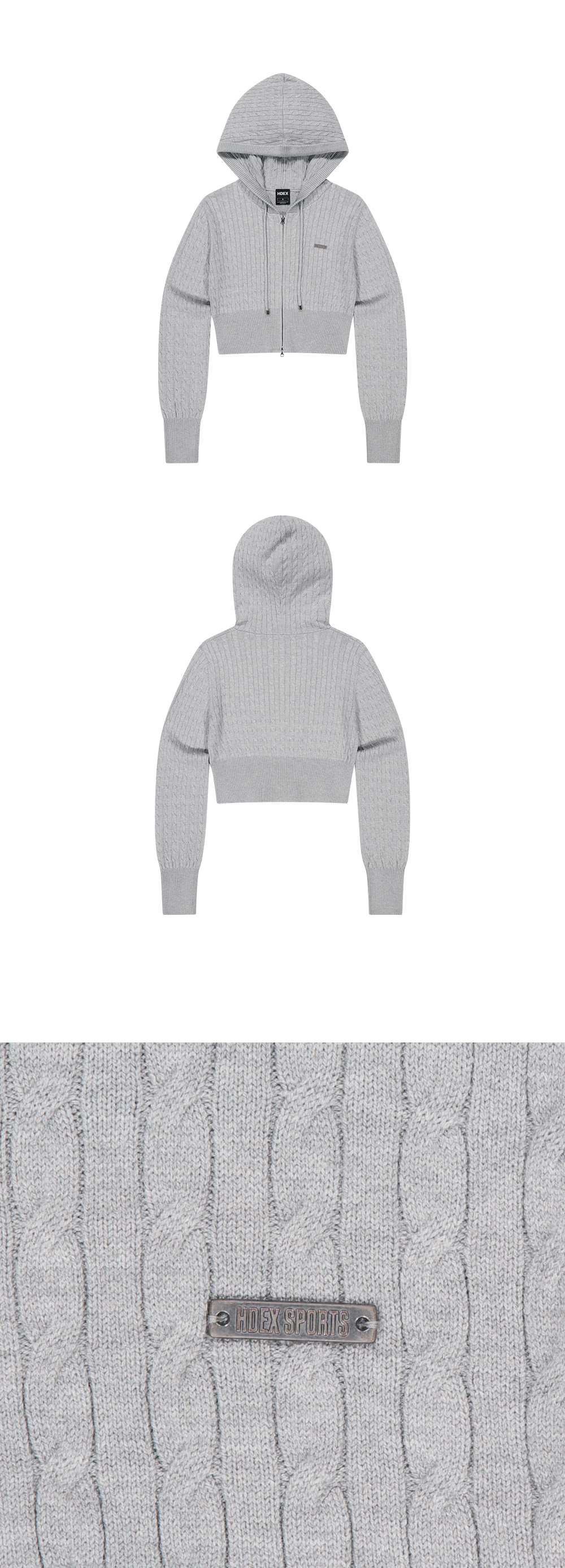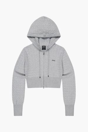 우먼스 케이블 니트 크롭 후디 집업 (Melange Gray)