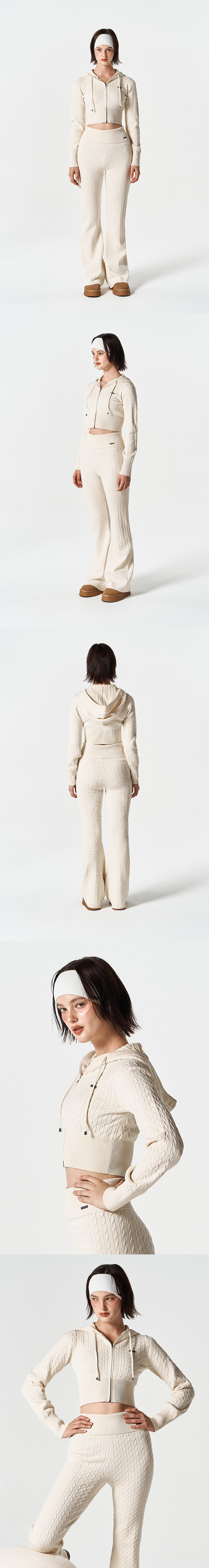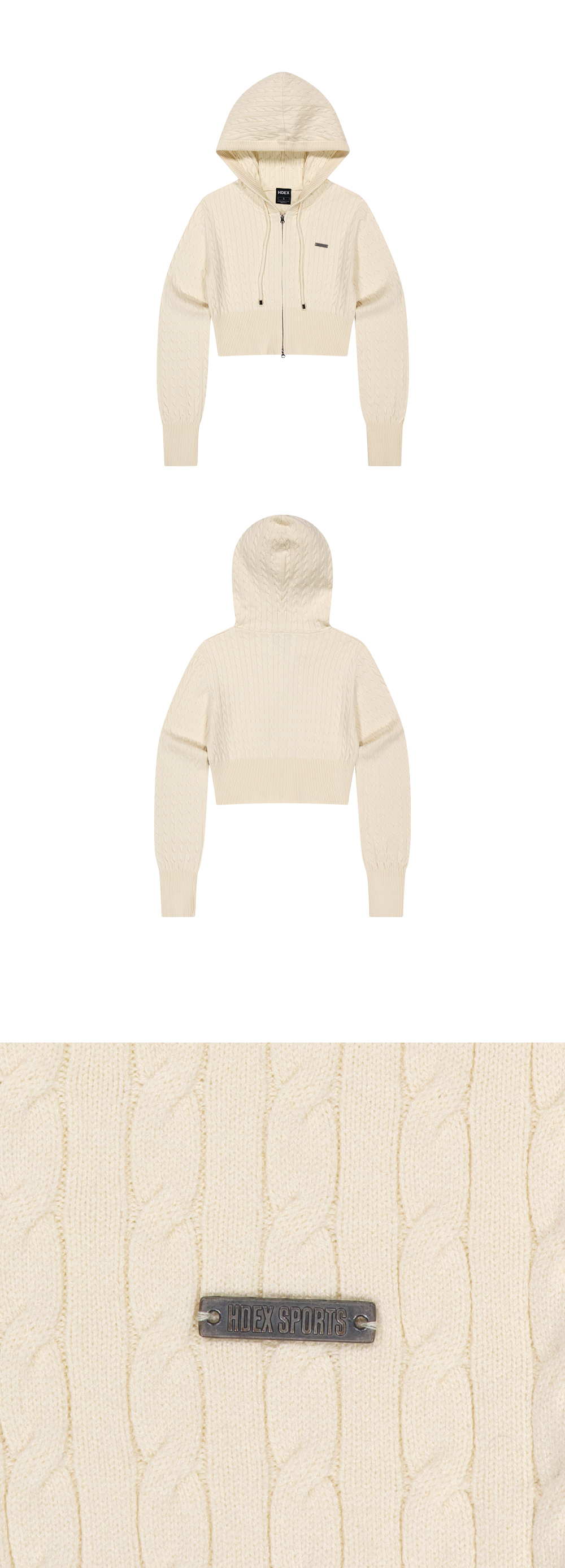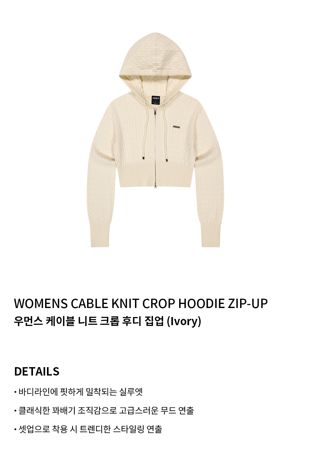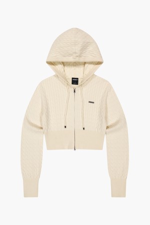 우먼스 케이블 니트 크롭 후디 집업 (Ivory)