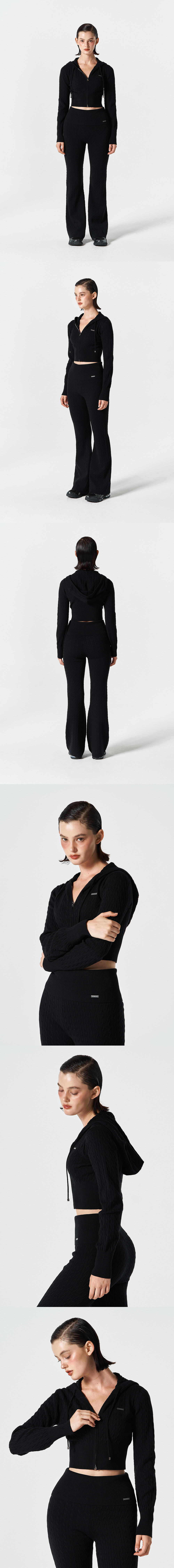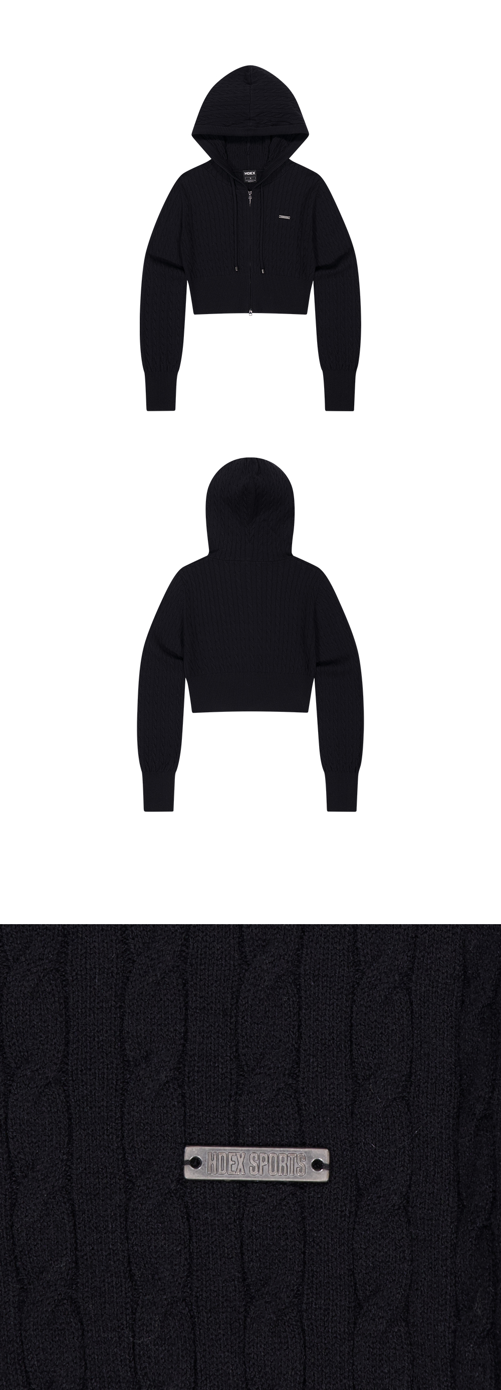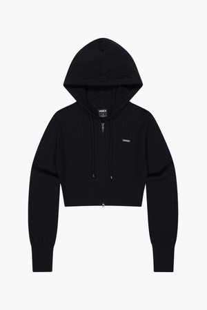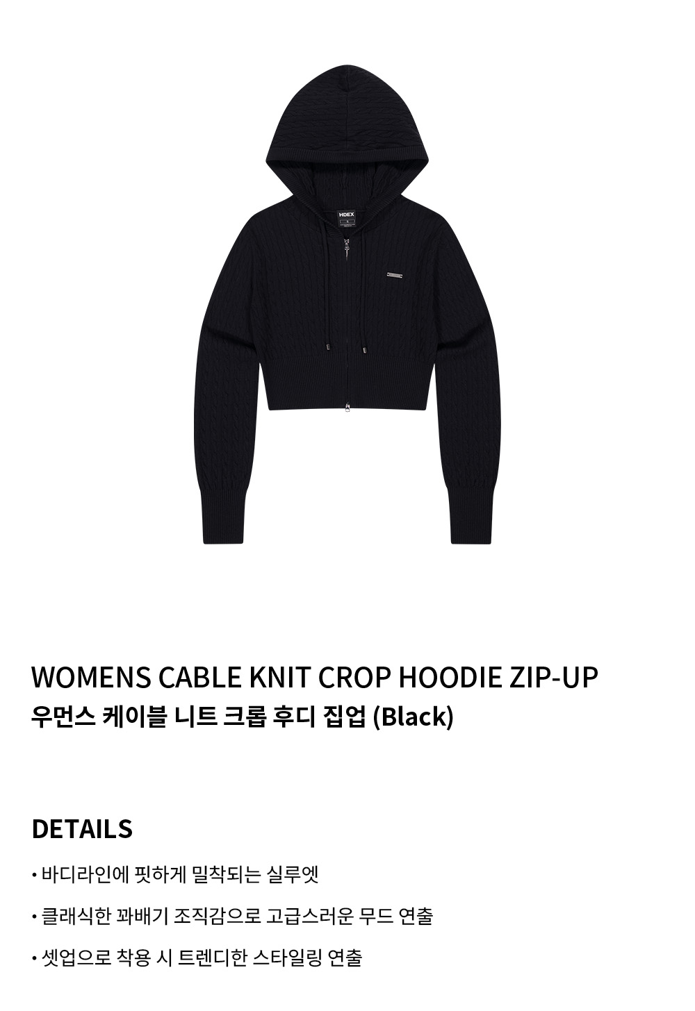 우먼스 케이블 니트 크롭 후디 집업 (Black)