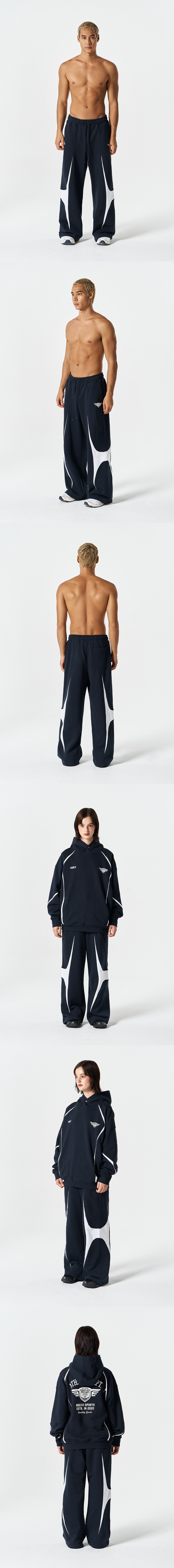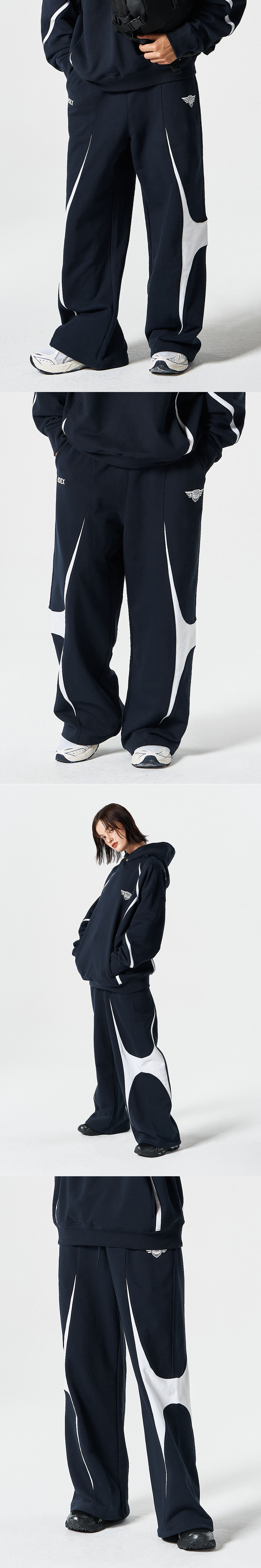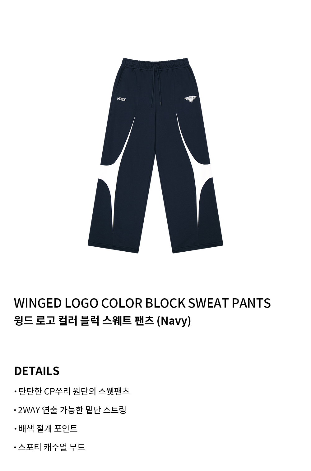 윙드 로고 컬러 블럭 스웨트 팬츠 (Navy)