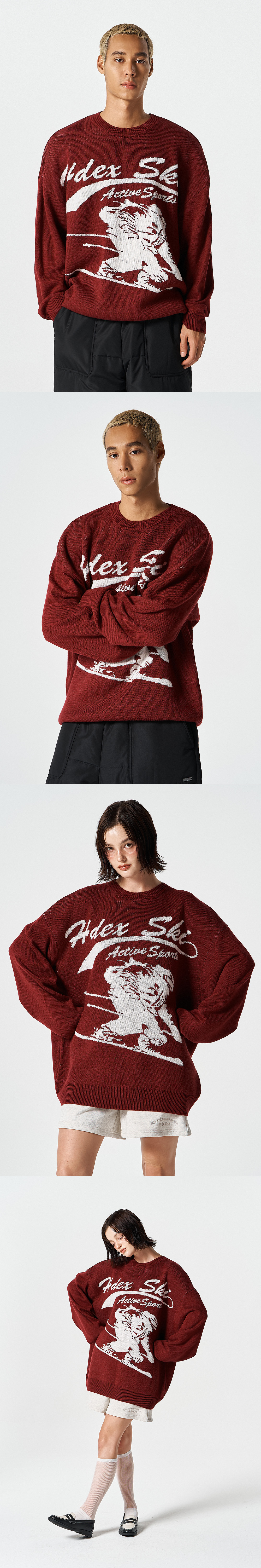 오버핏 스키 니트 (Cherry Red)
