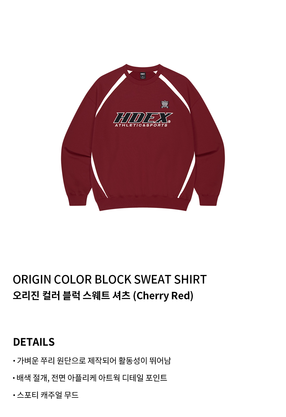 오리진 컬러 블럭 스웨트 셔츠 (Cherry Red)