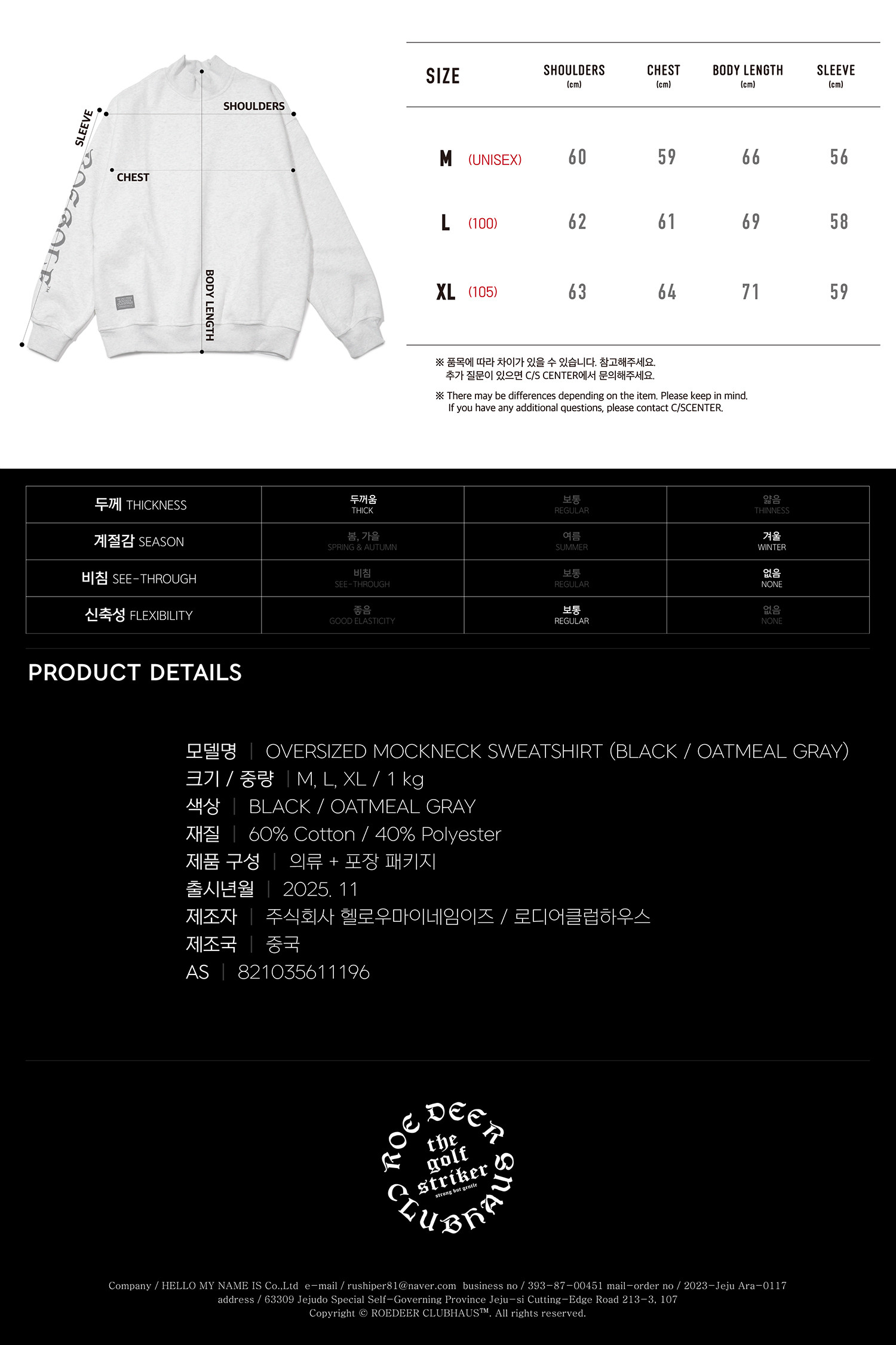 로디어클럽하우스의 시그니처 오버사이즈 모크넥 맨투맨입니다.
