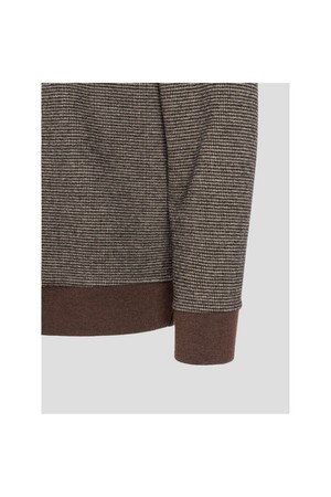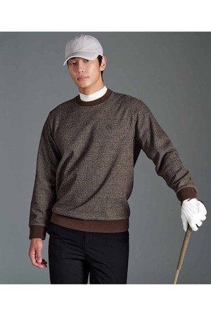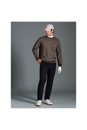패턴이 매력적인 블루종핏 티셔츠입니다. 사냥개의 이빨에서 유래된 하운드 투스 패턴으로 클래식하면서도 고급스러운 느낌이 특징입니다. 코듀로이 소재와 같이 겨울 무드가 잘 드러나는 면 팬츠와 함께 연출하는 코디를 추천합니다.