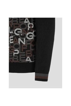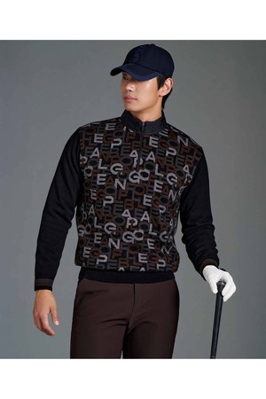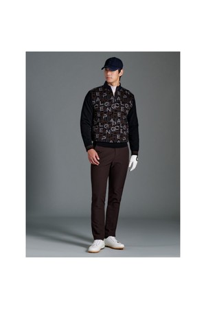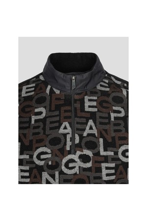남성 방풍 로고 자카드 반집업 니트 블랙