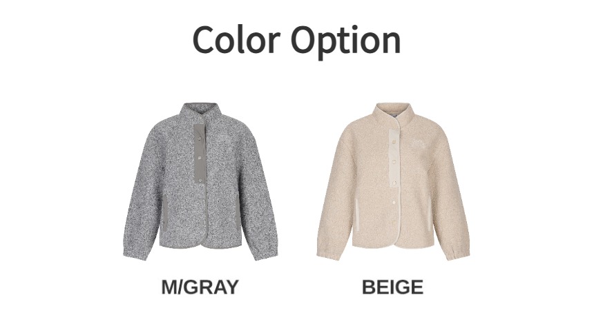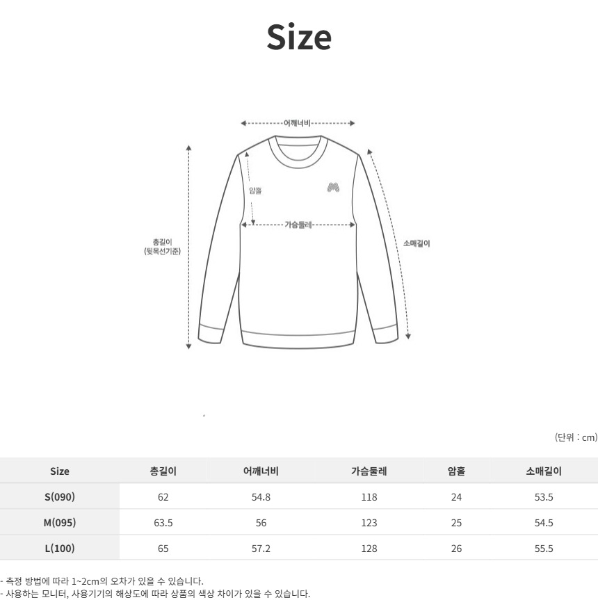 | 치수 | 090 총기장62 어깨너비54.8 가슴둘레118 암홀24 소매길이53.5 095 총기장63.5 어깨너비56 가슴둘레123 암홀25 소매길이54.5 100 총기장65 어깨너비57.2 가슴둘레128 암홀26 소매길이55.5 |