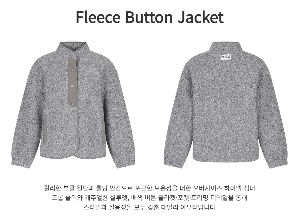 | 소재 | 겉감 폴리에스터100 안감 폴리에스터 100 배색 폴리에스터100 충전재 폴리에스터 100 |