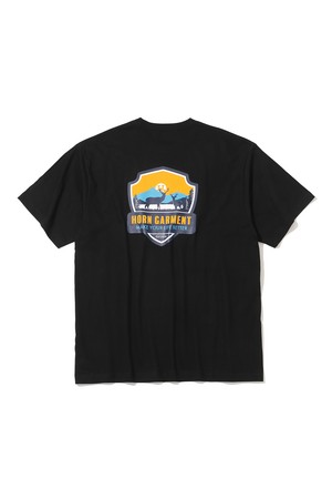 오리지널 일러스트를 플로깅 프린트와 실크 프린트로 믹스한 내추럴 무드의 티셔츠
