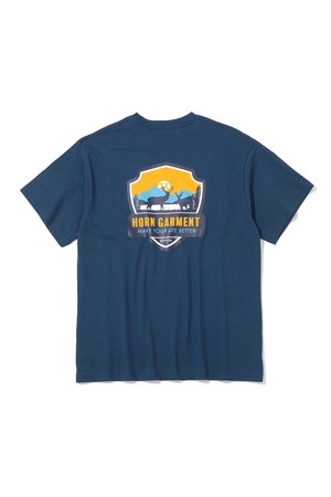 오리지널 일러스트를 플로깅 프린트와 실크 프린트로 믹스한 내추럴 무드의 티셔츠