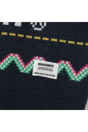 부드러운 울 혼방사를 사용한 페어아일 패턴에, 톰과 제리 캐릭터를 각각 좌우 소매에 배치