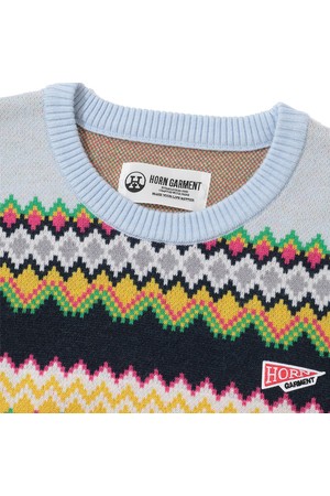 선명한 컬러와 유니크한 페어아일 패턴으로 눈길을 끄는 포인트 아이템