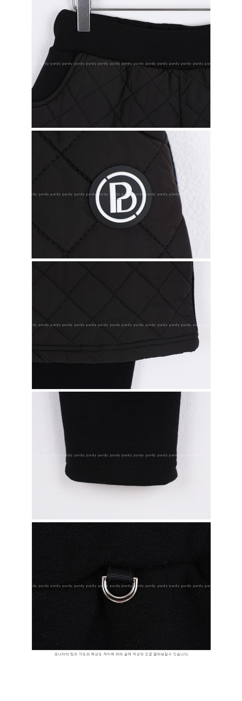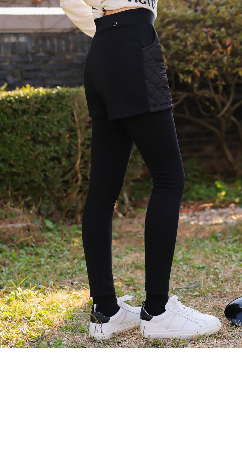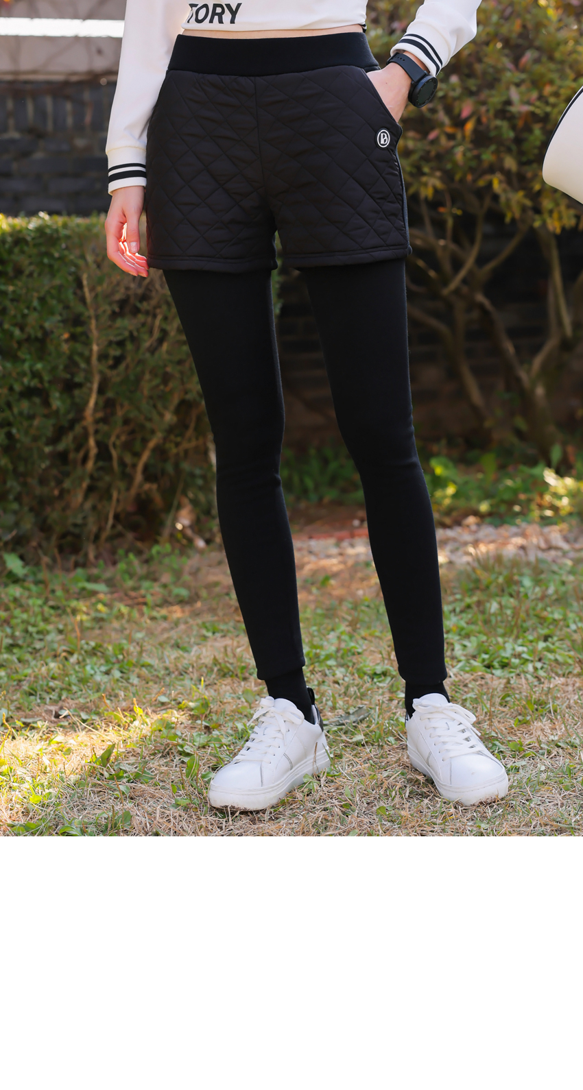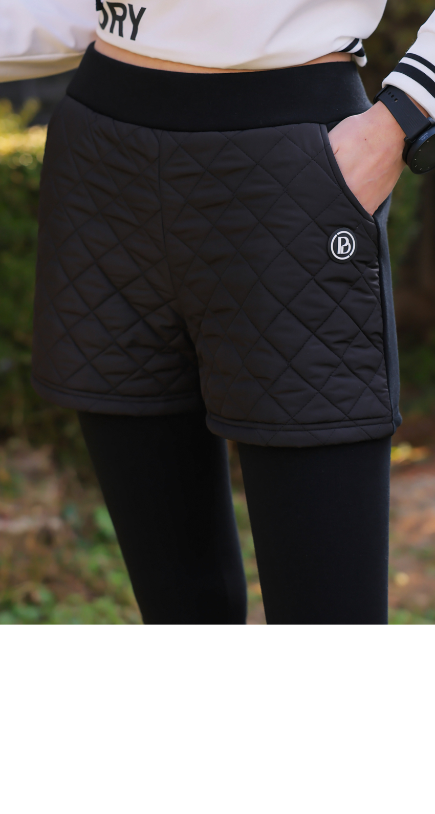 | 소재 | 팬츠 겉감_폴리에스테르100% / 충전재_폴리에스테르100% 레깅스_폴리에스테르60% + 면37% + 스판 3% |
