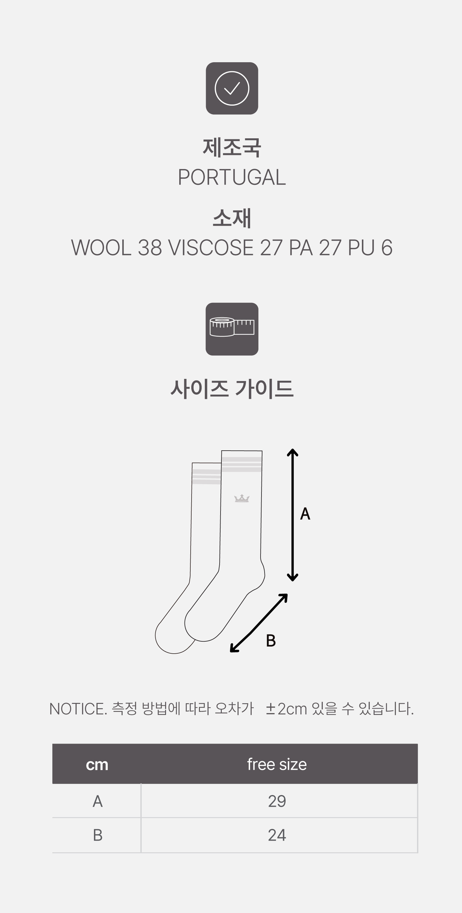 | 치수 | FREE SIZE 발목 길이 : 종아리 중단 |