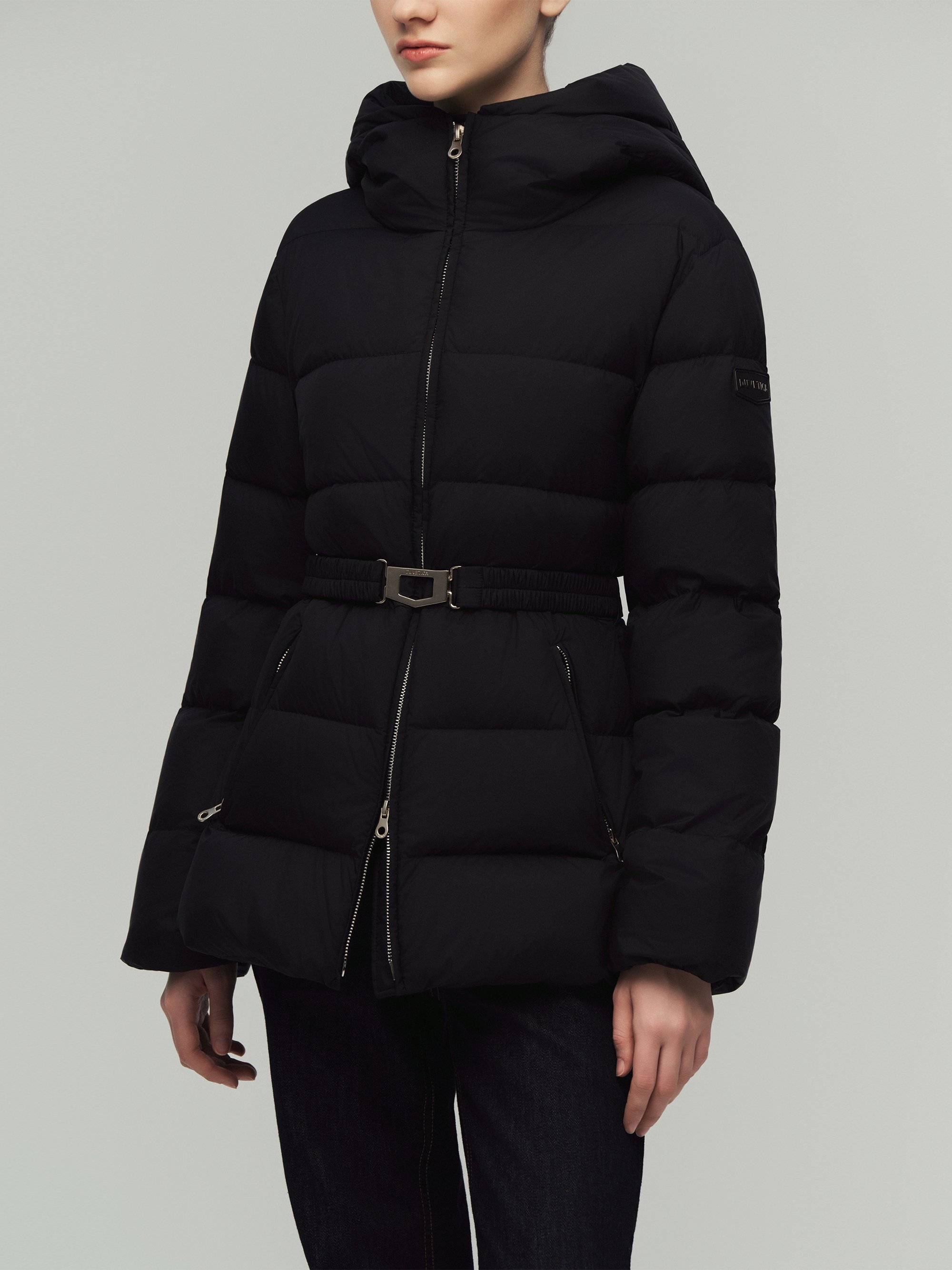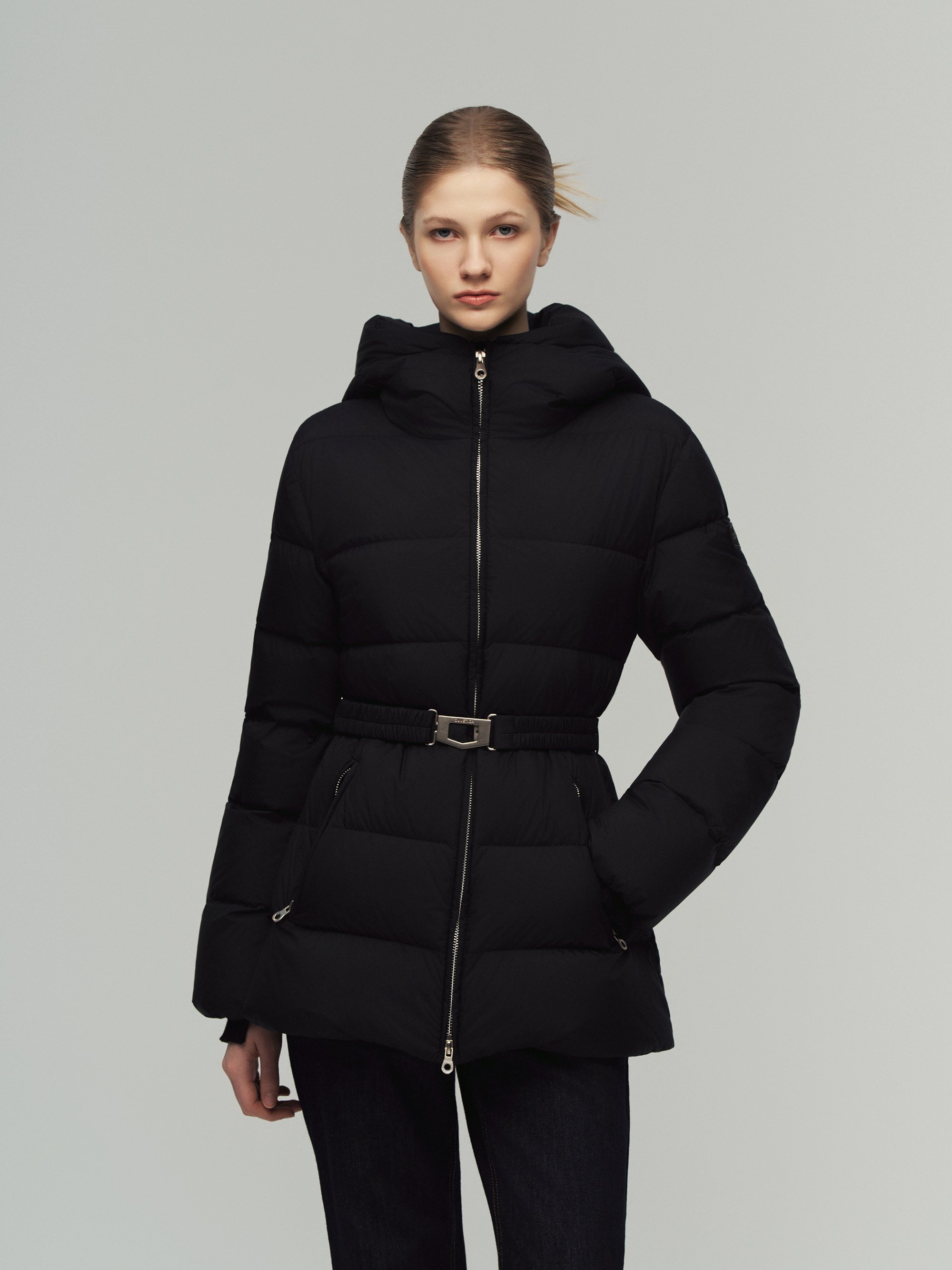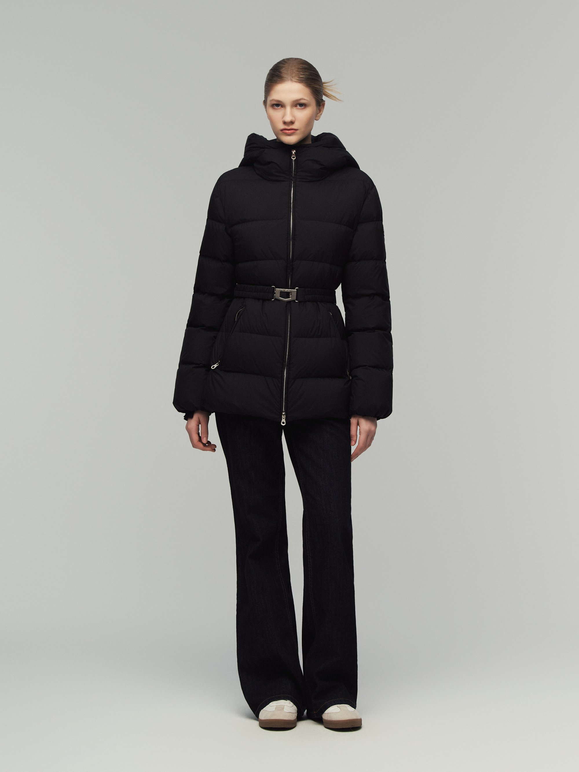 매트 벨티드 미드 다운자켓