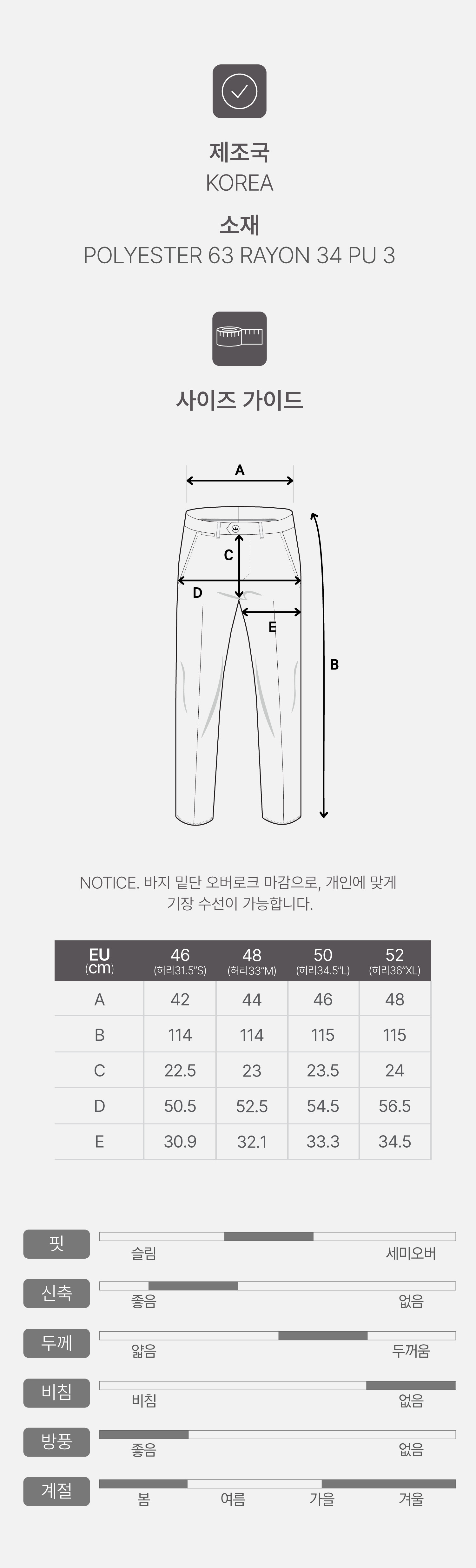 | 치수 | EU46(허리31.5" S), EU48(허리33" M), EU50(허리34.5" L), EU52(허리36" XL) |