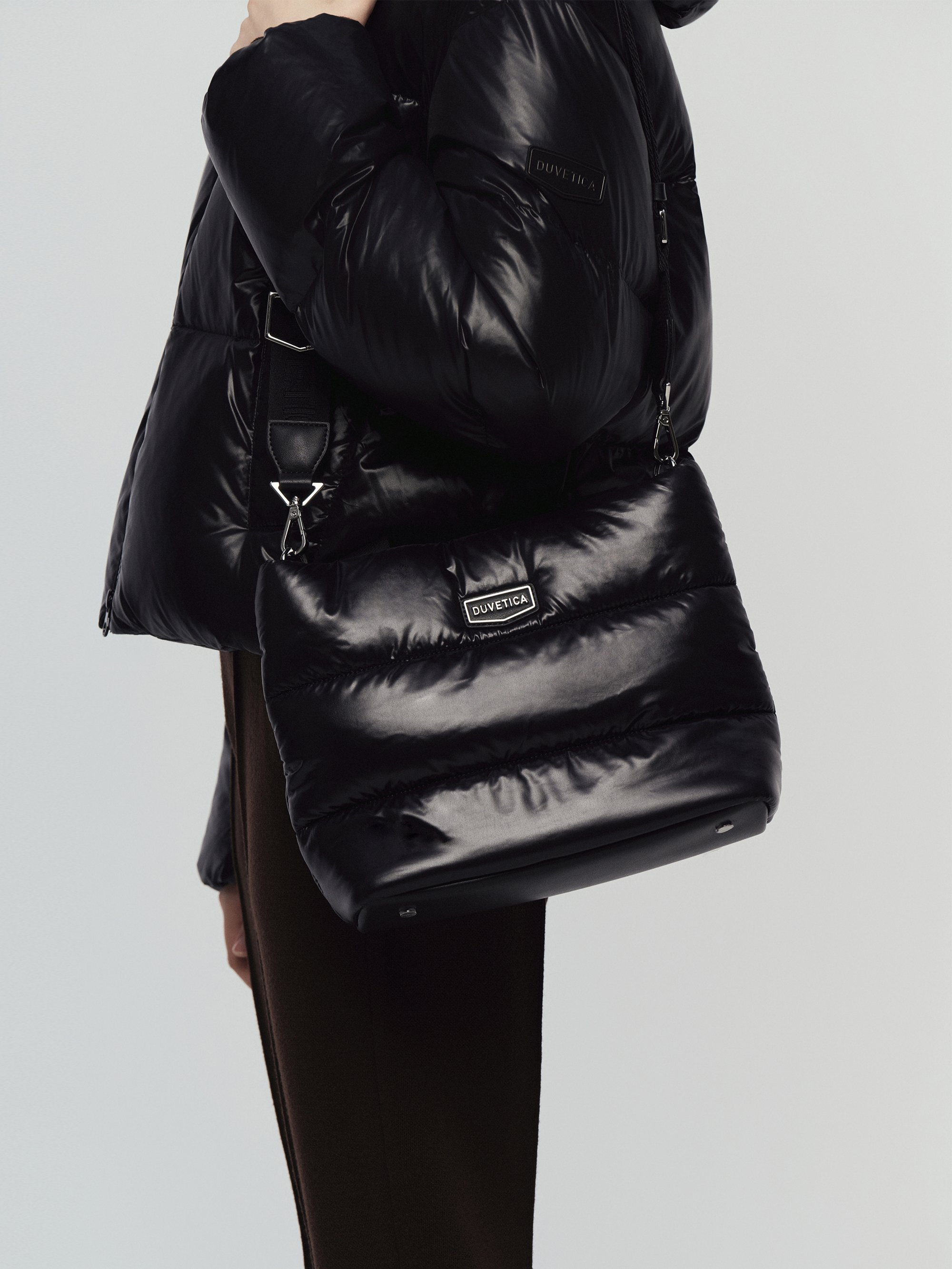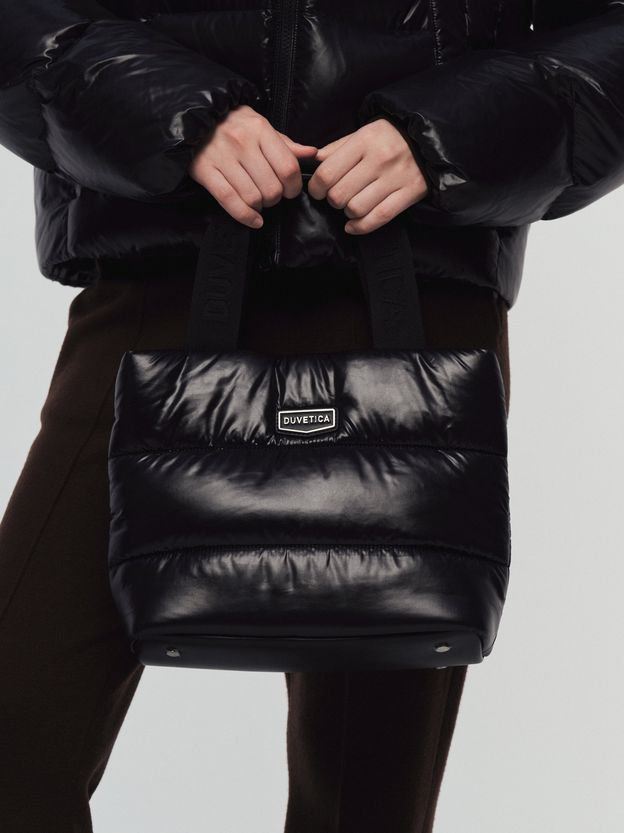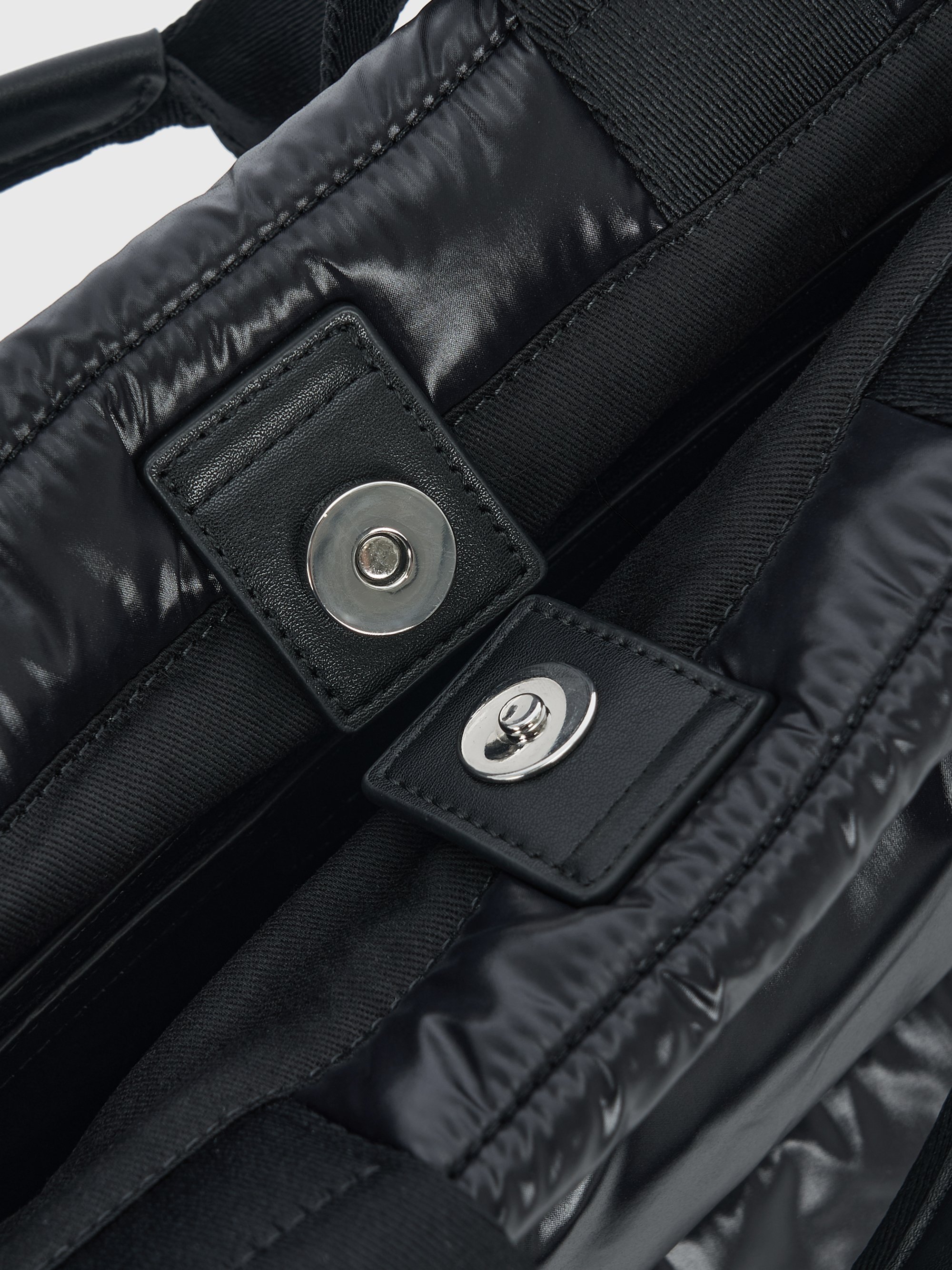 - 볼륨감 있는 가로 퀼팅 디테일이 포인트인 소프트 패딩 토트백
