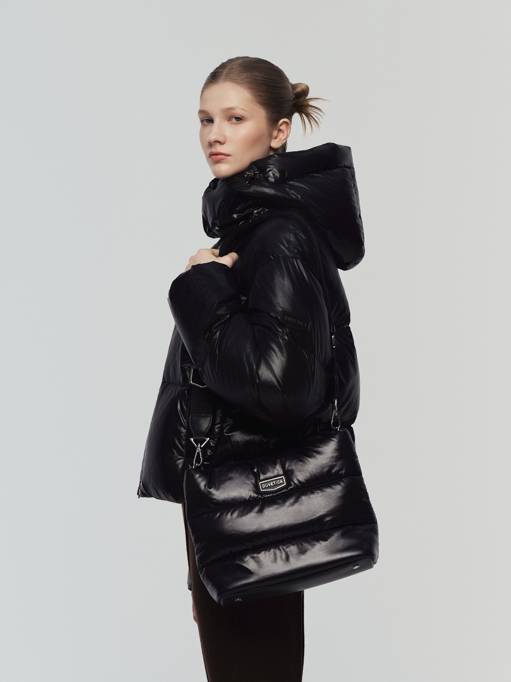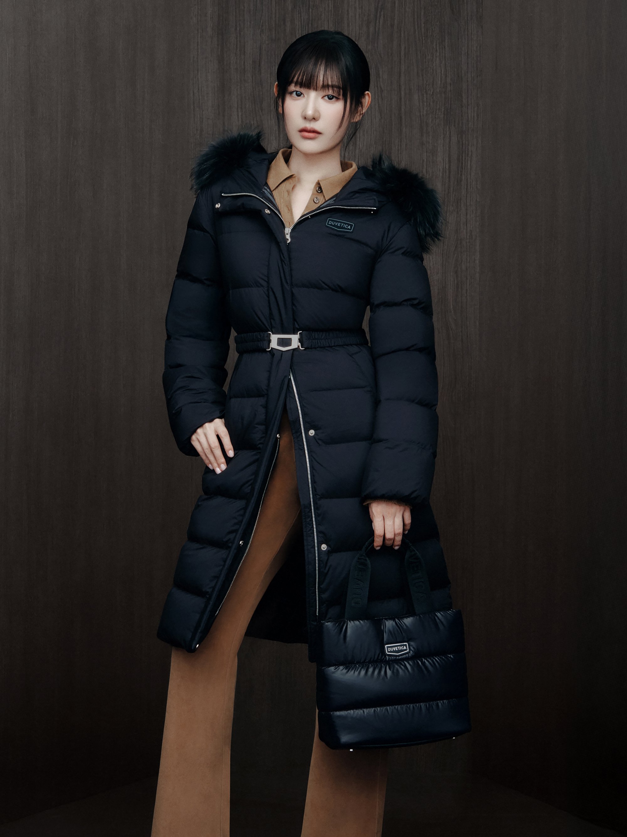- 전면 DUVETICA 메탈 로고 와펜으로 미니멀한 브랜드 감성 표현
