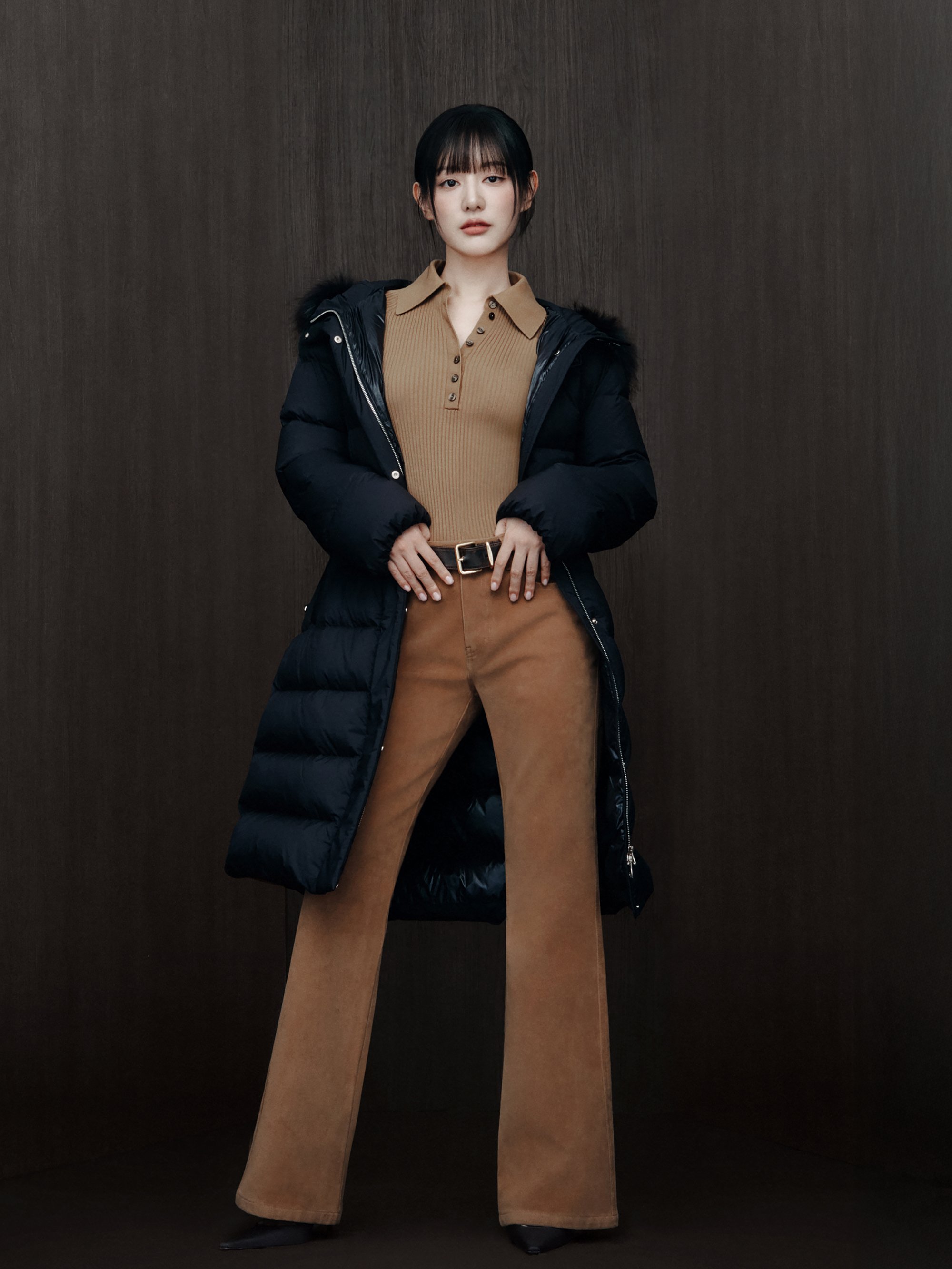 - 슬림한 실루엣과 시그니처 오각 허리 벨트 디테일로 페미닌한 무드 강조함