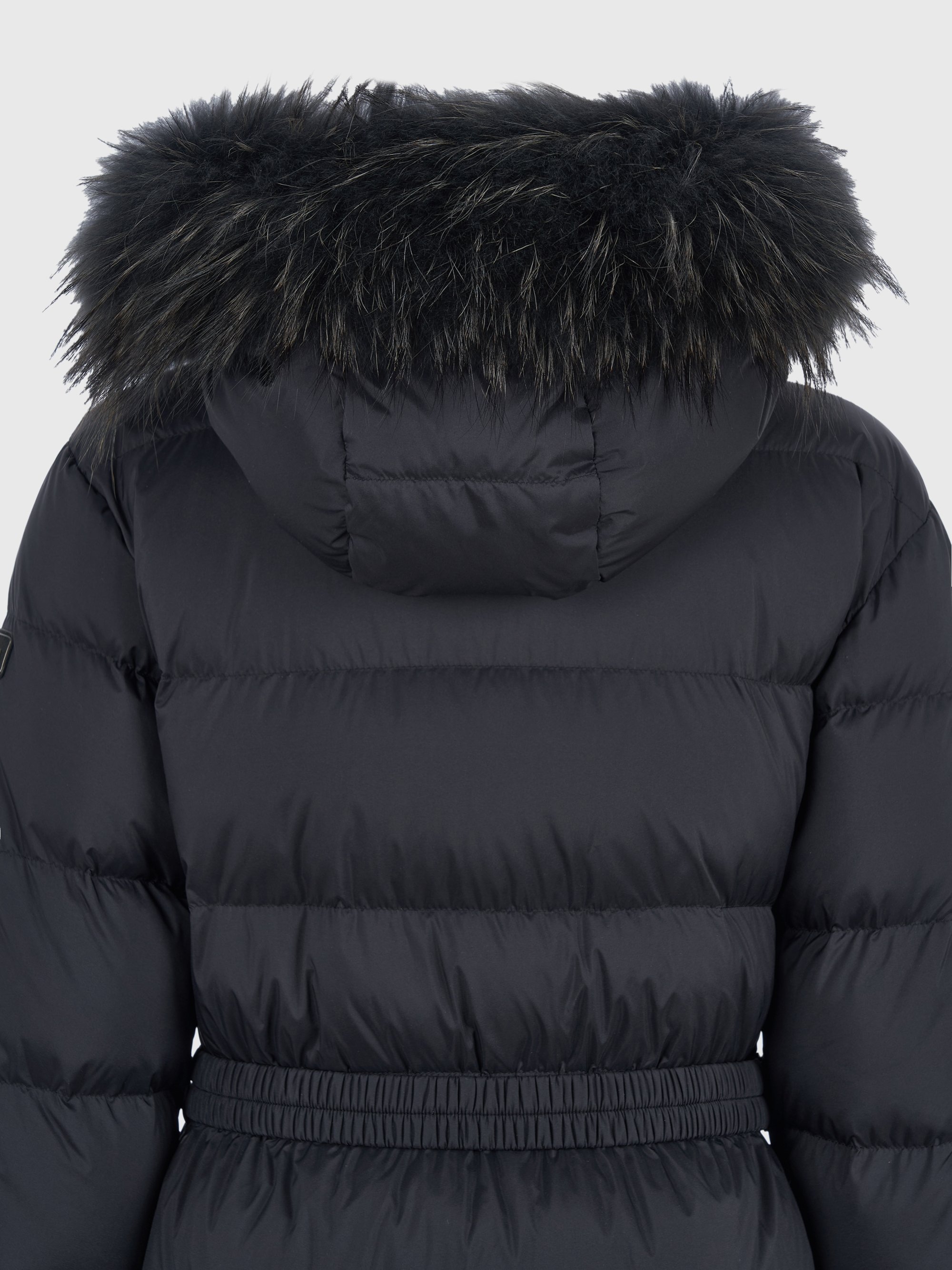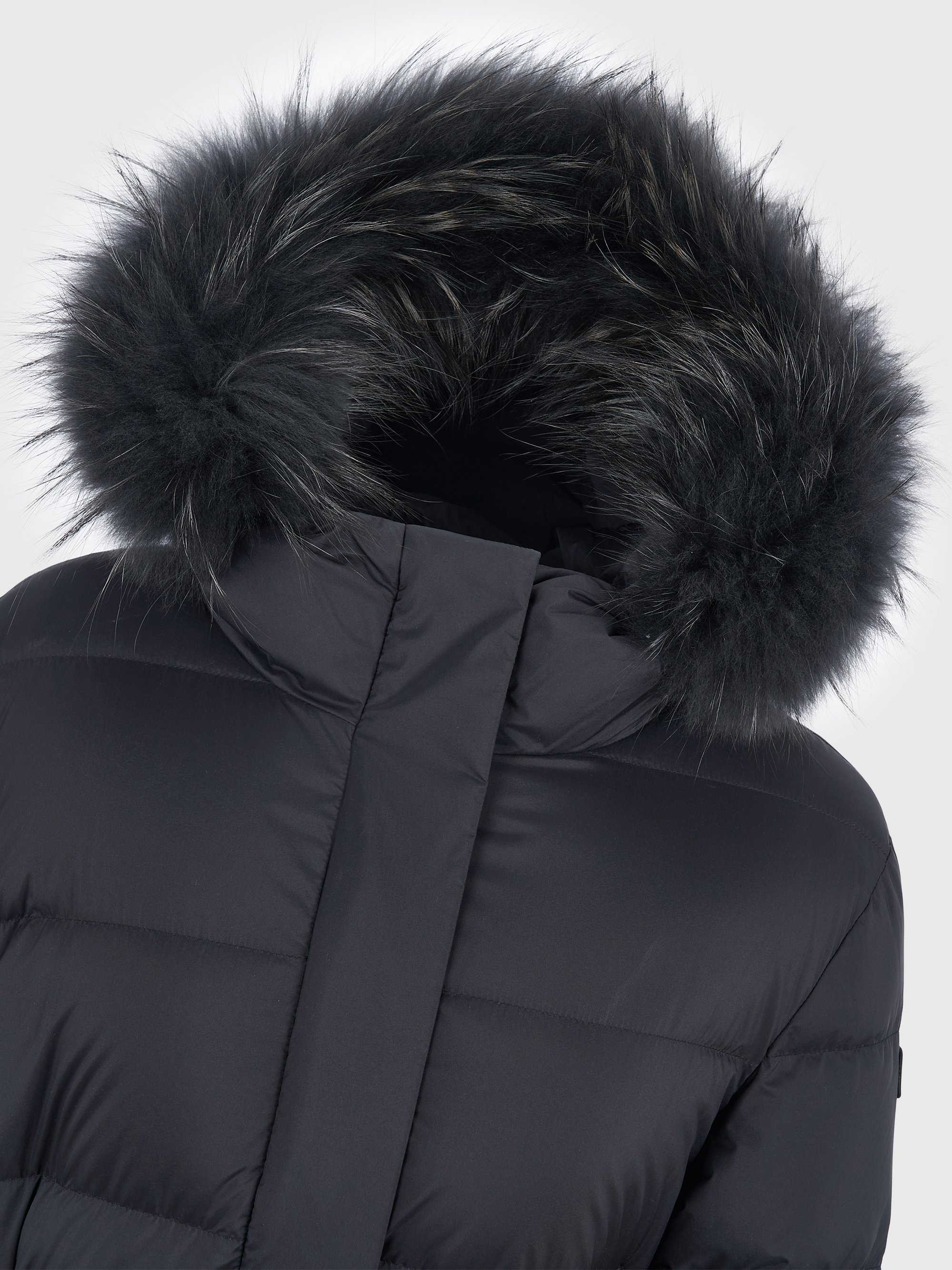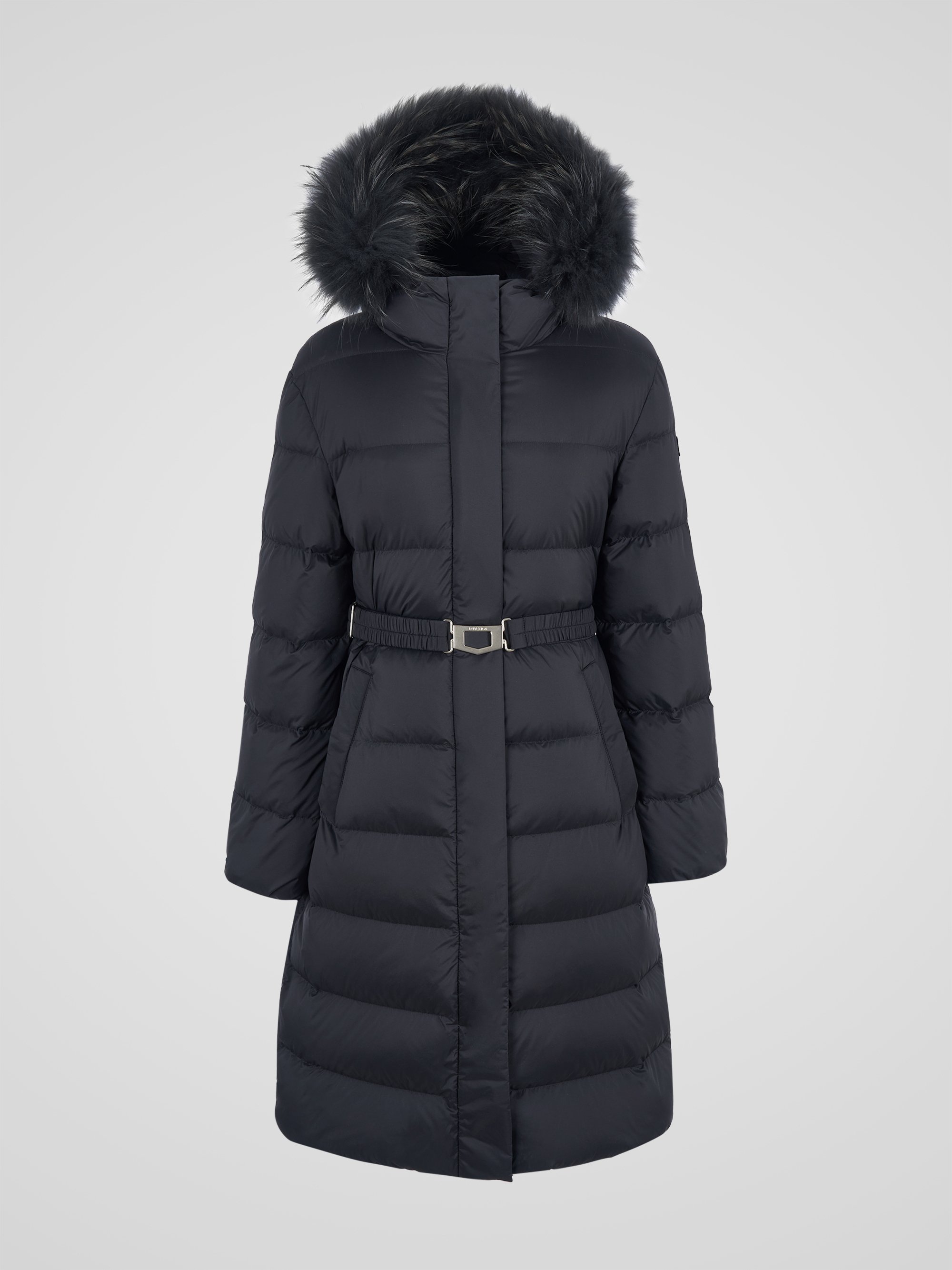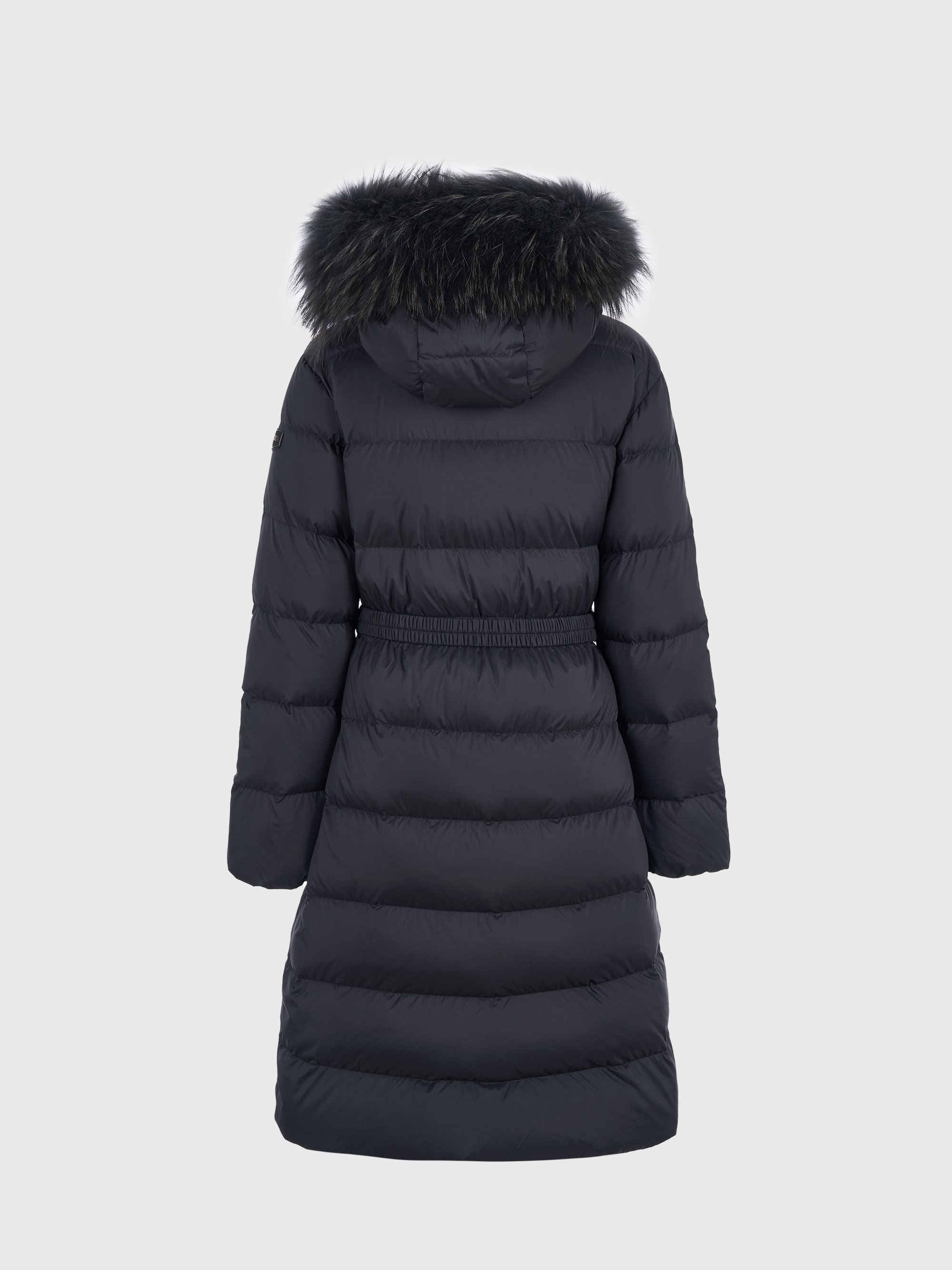 - 무릎을 덮는 롱기장에 유럽산 라쿤퍼를 매치하여 한겨울까지 따뜻하게 연출 가능