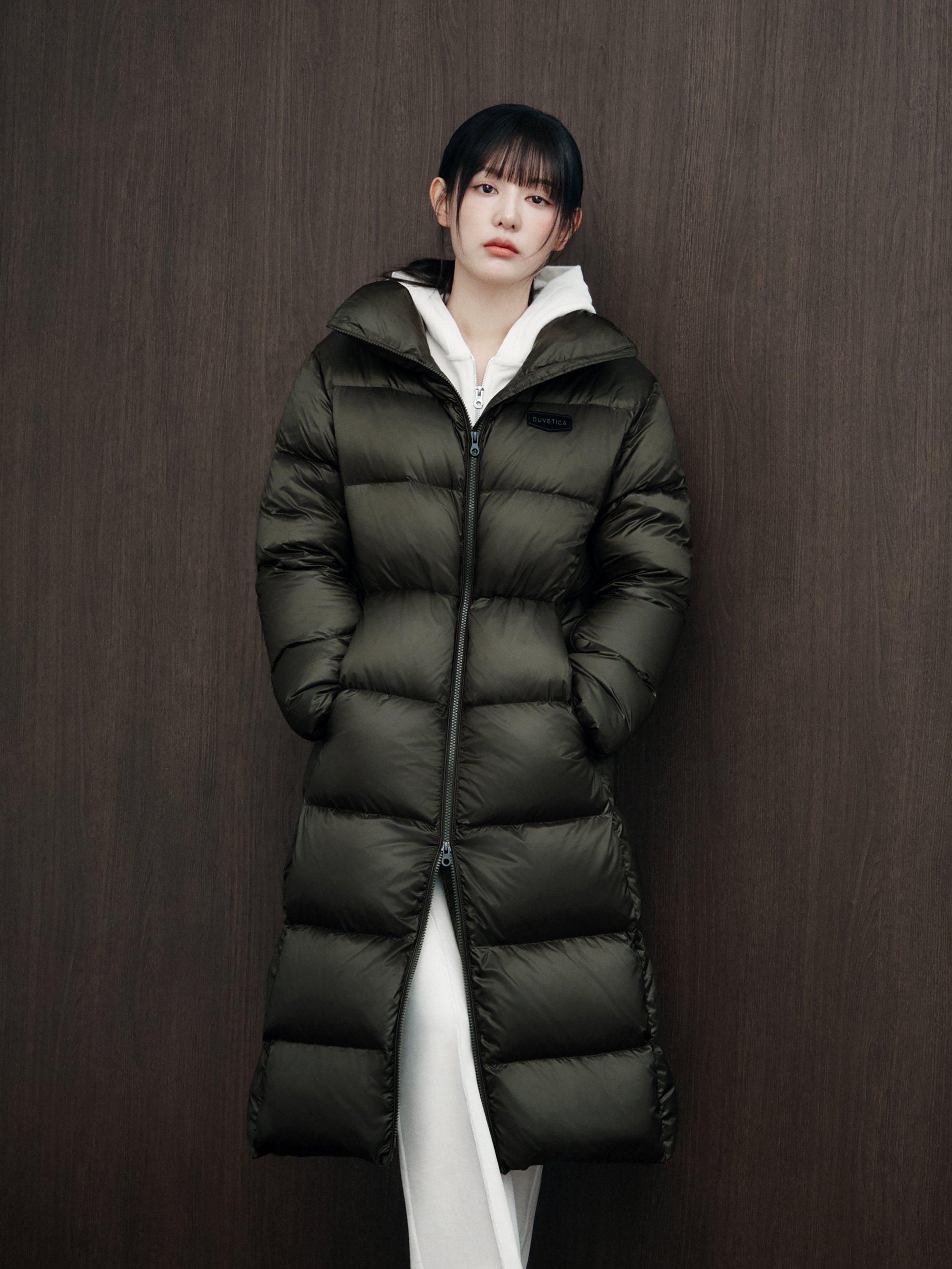 알바르다 세미글로시 하이넥 롱 다운자켓