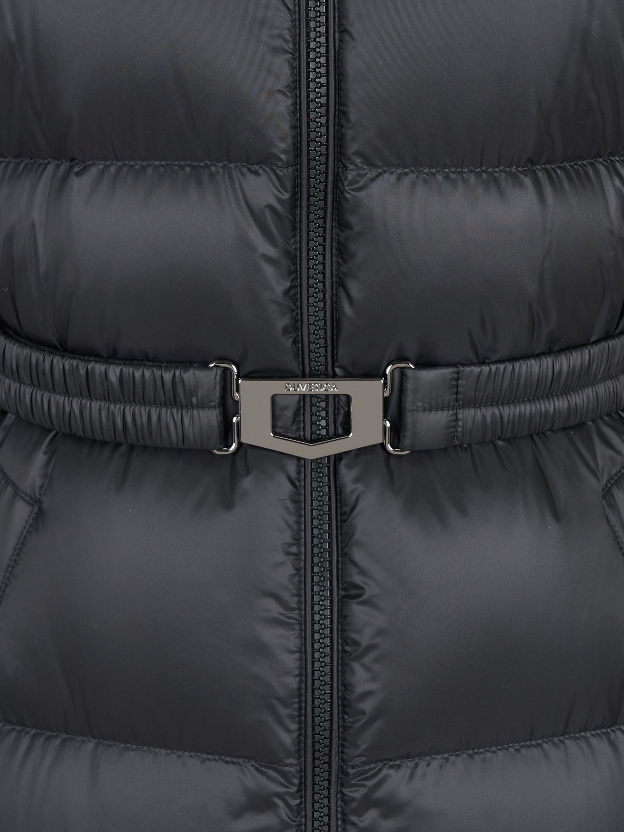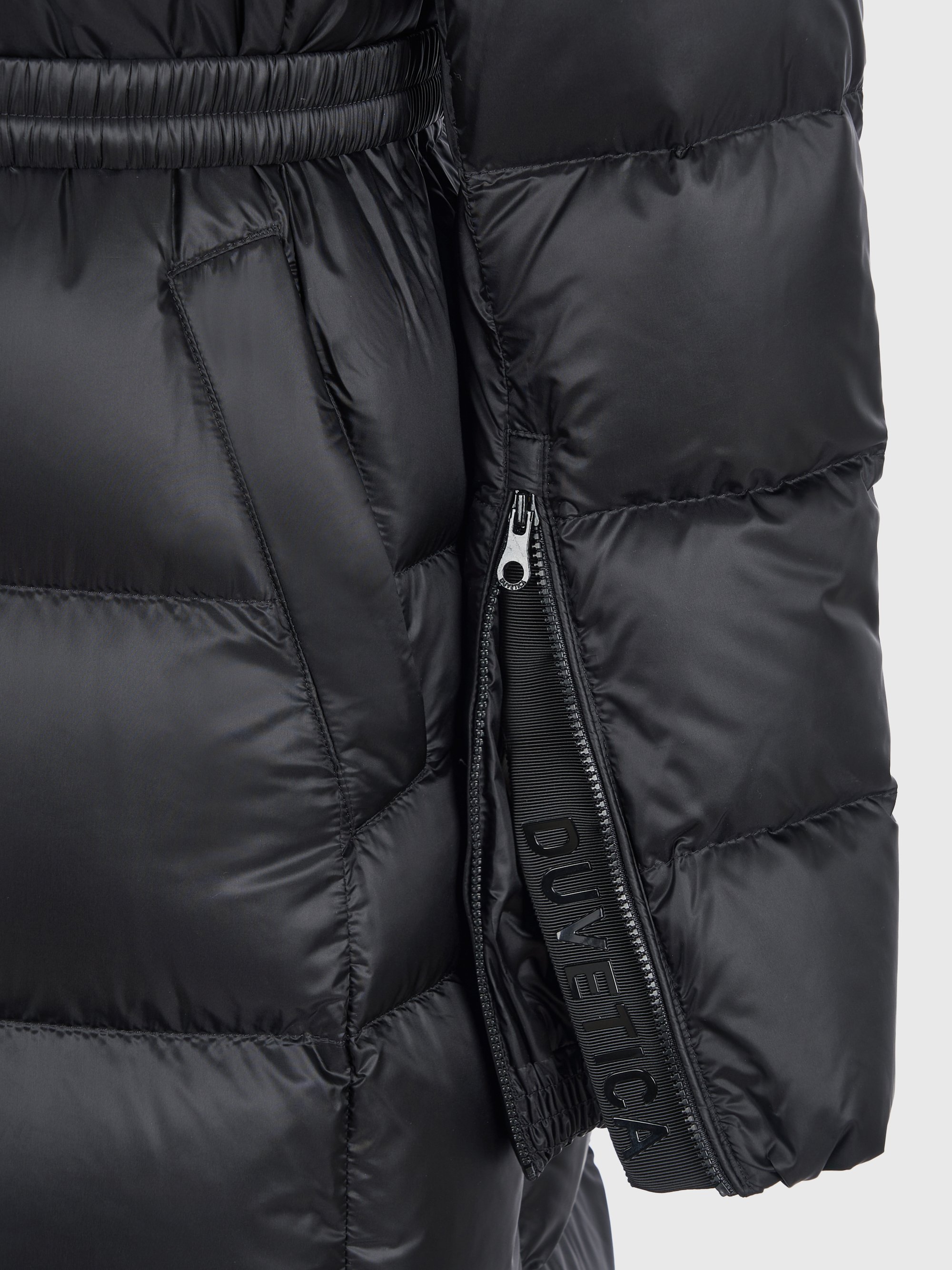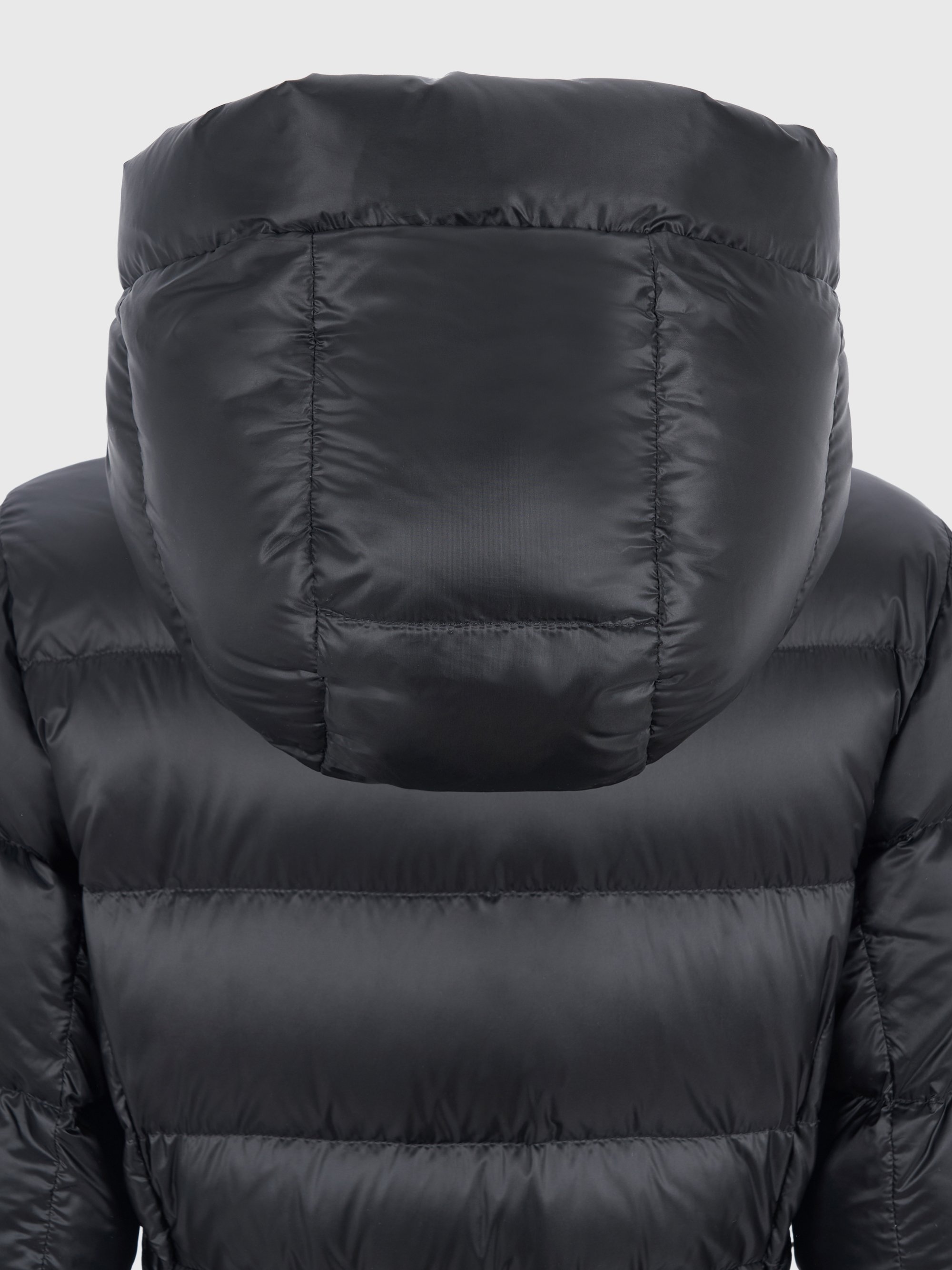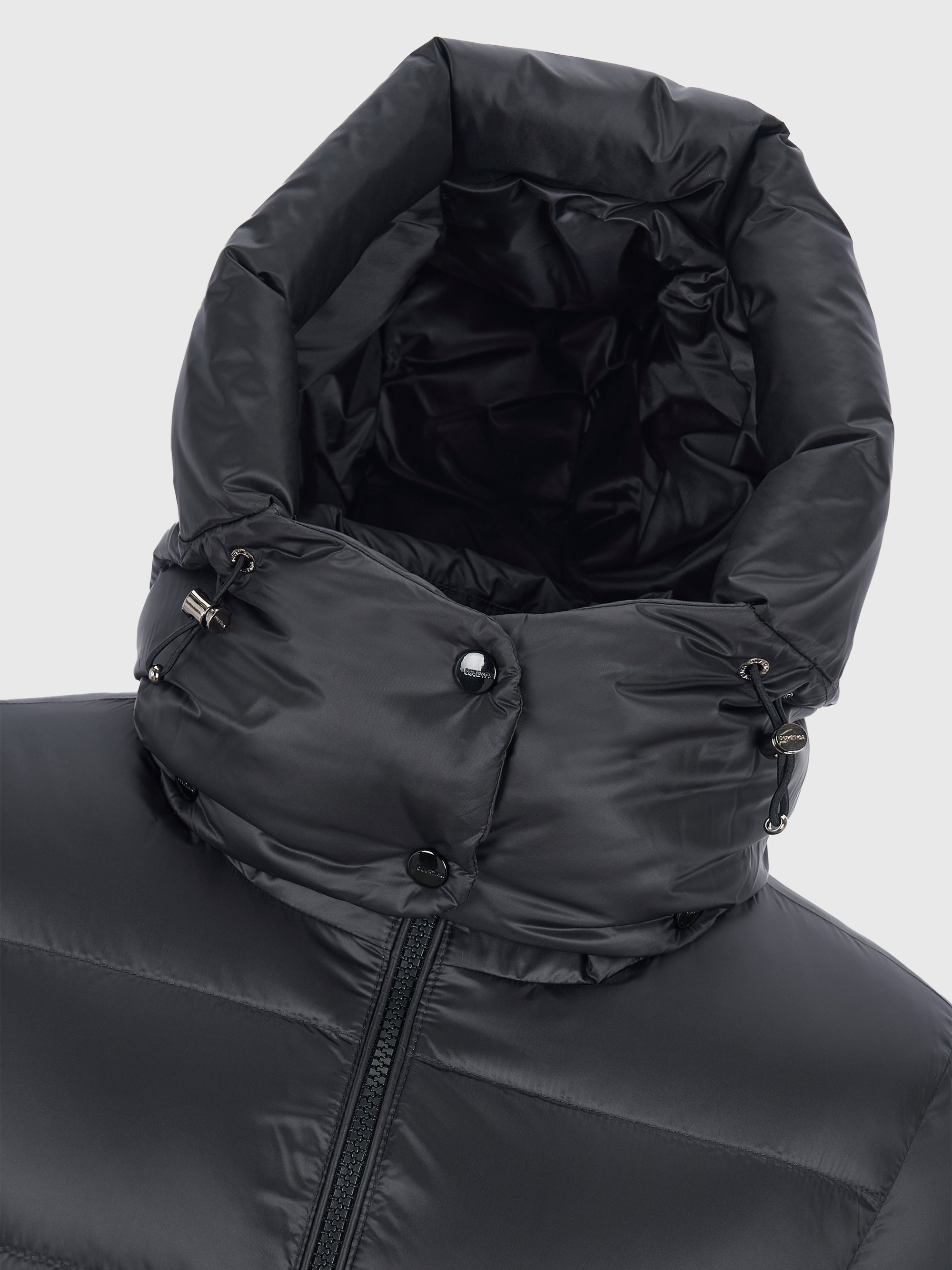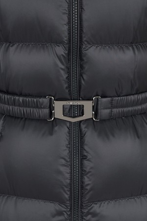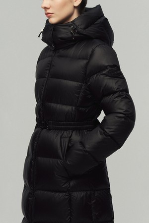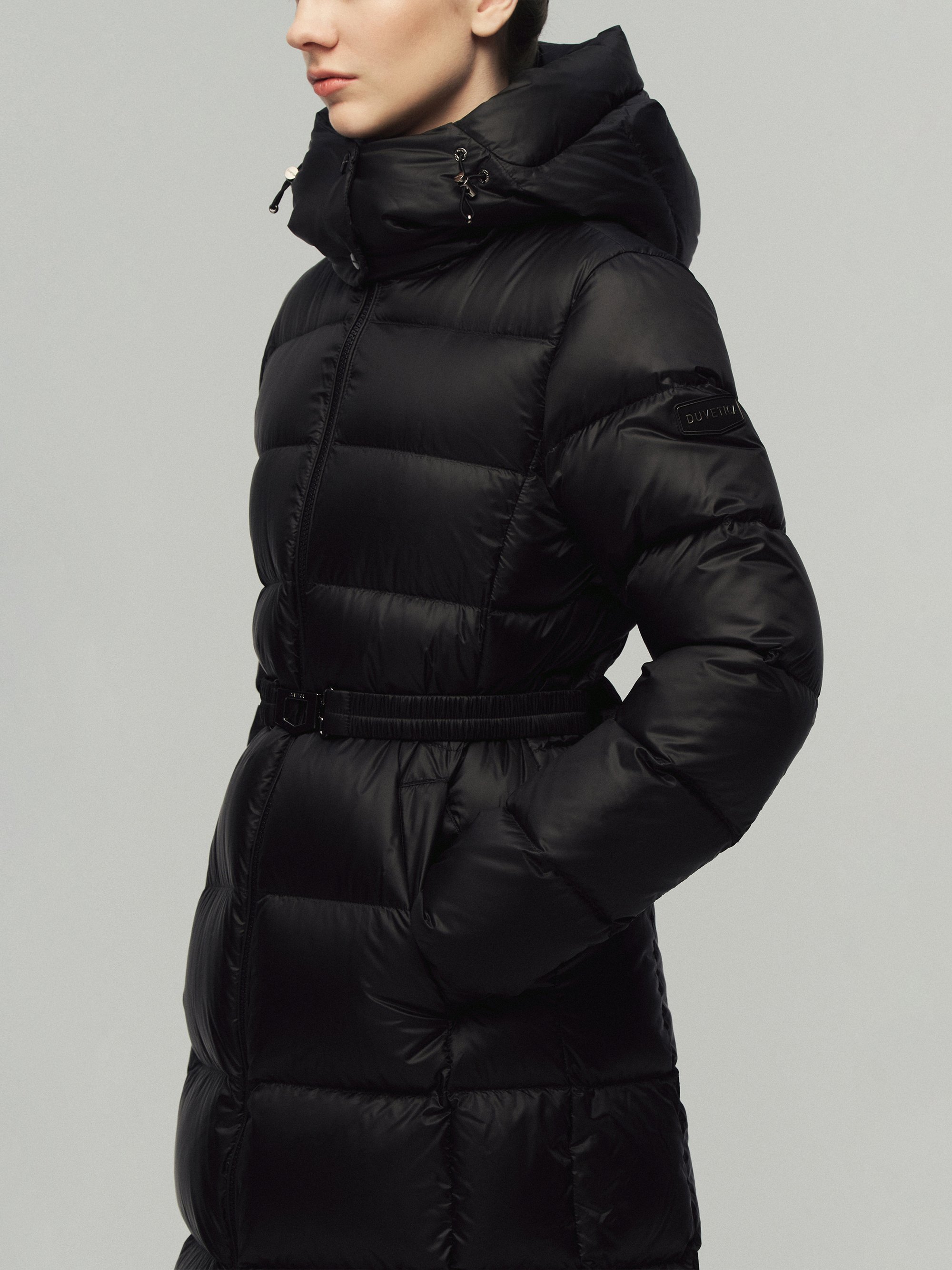 - 페미닌 실루엣과 은은한 반광 소재의 조화가 돋보이는 롱기장 다운 자켓