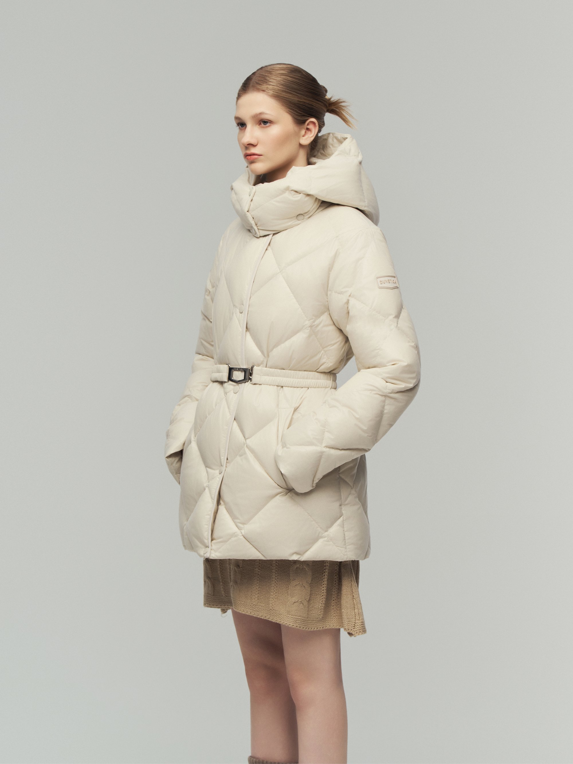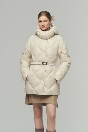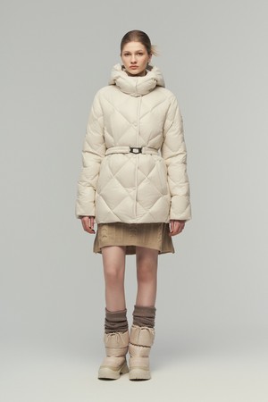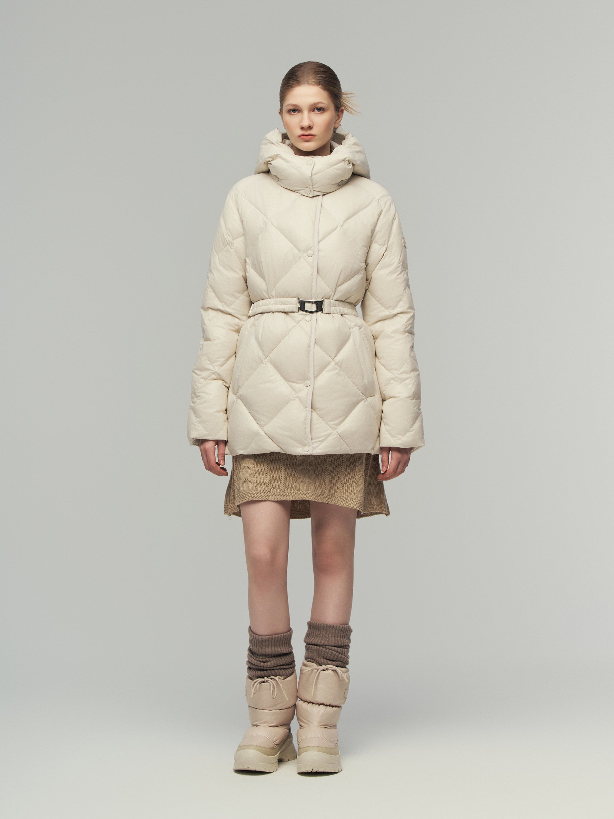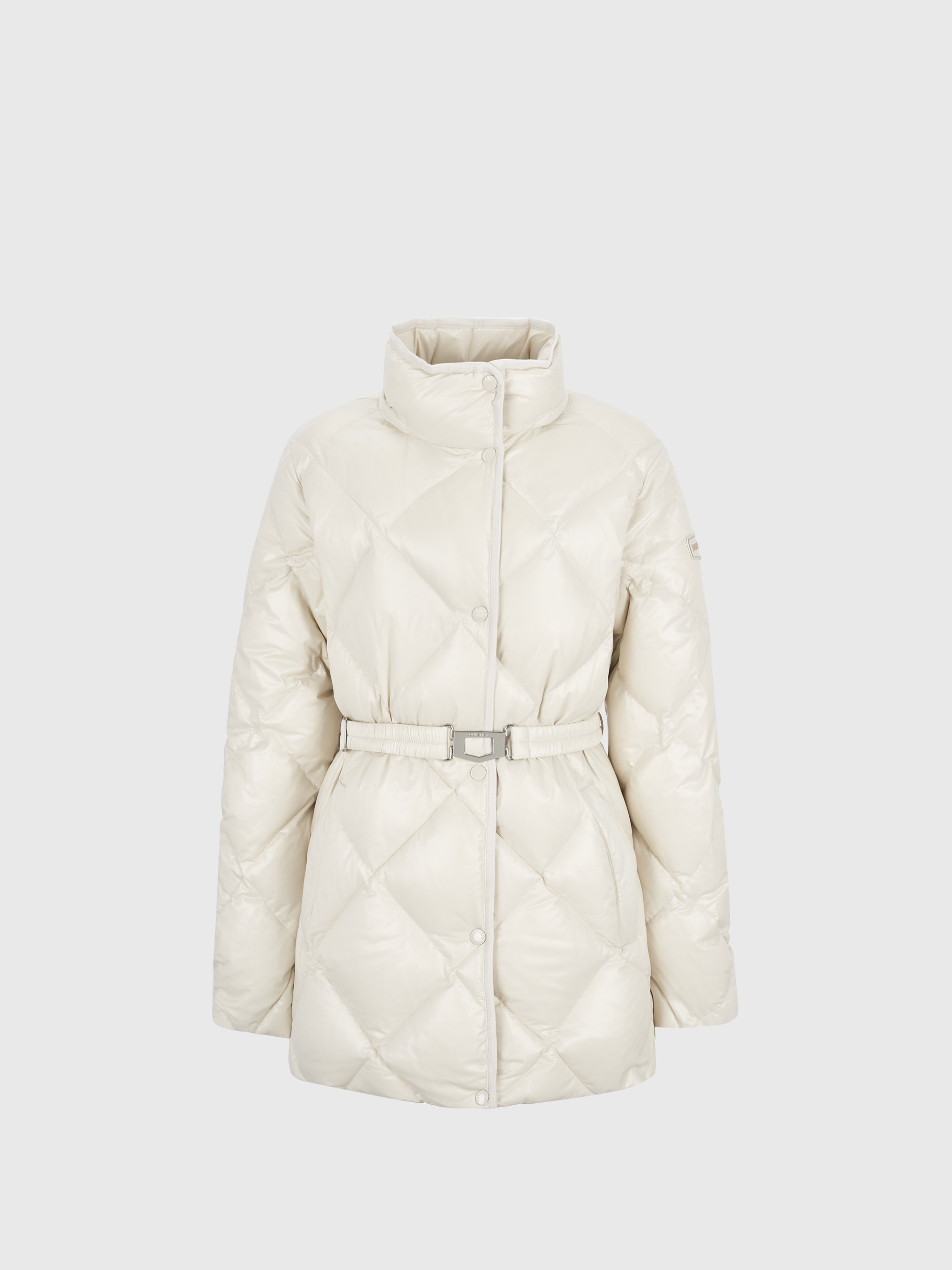 알리스카 글로시 다이아퀼팅 미드 다운자켓