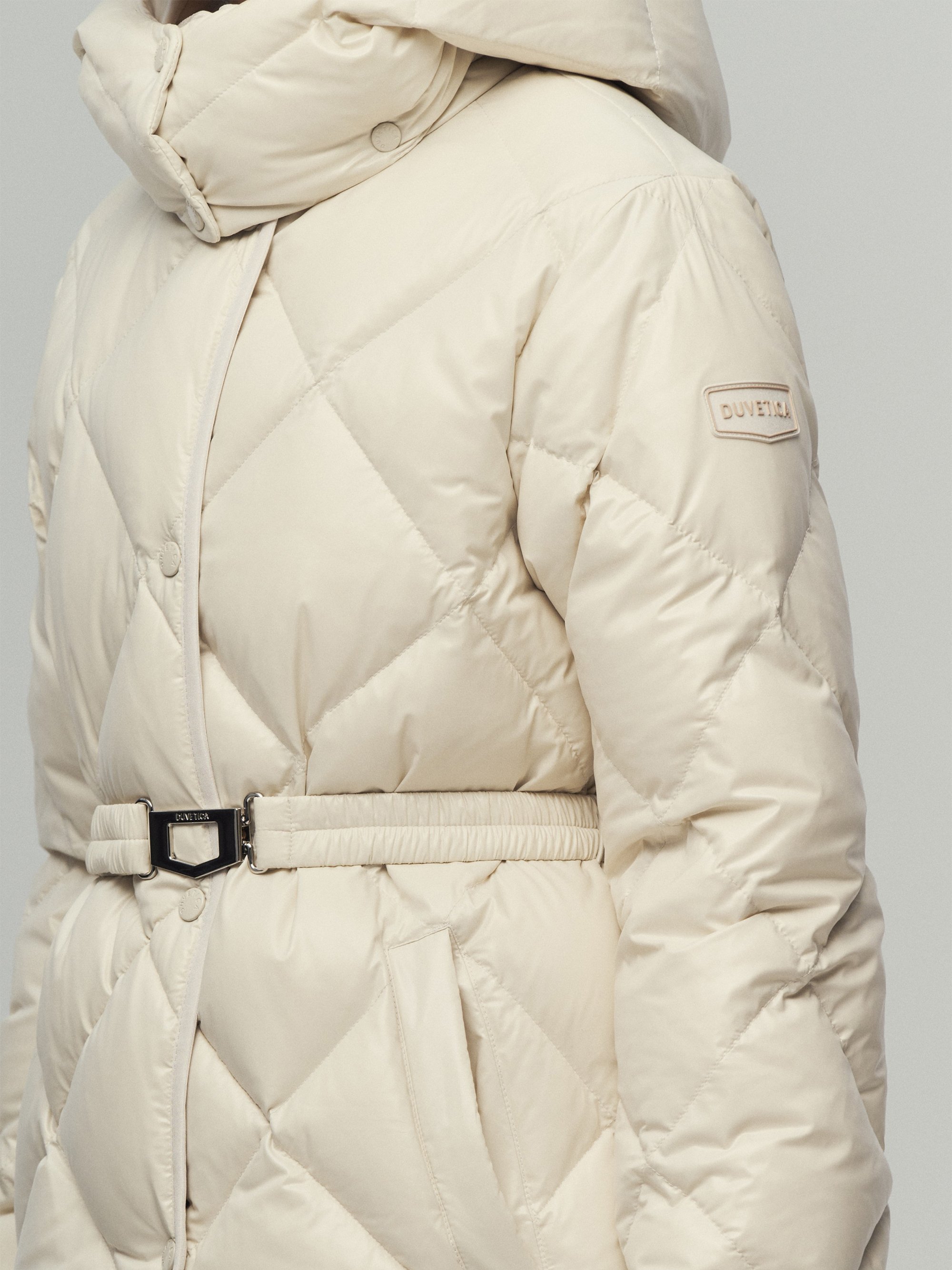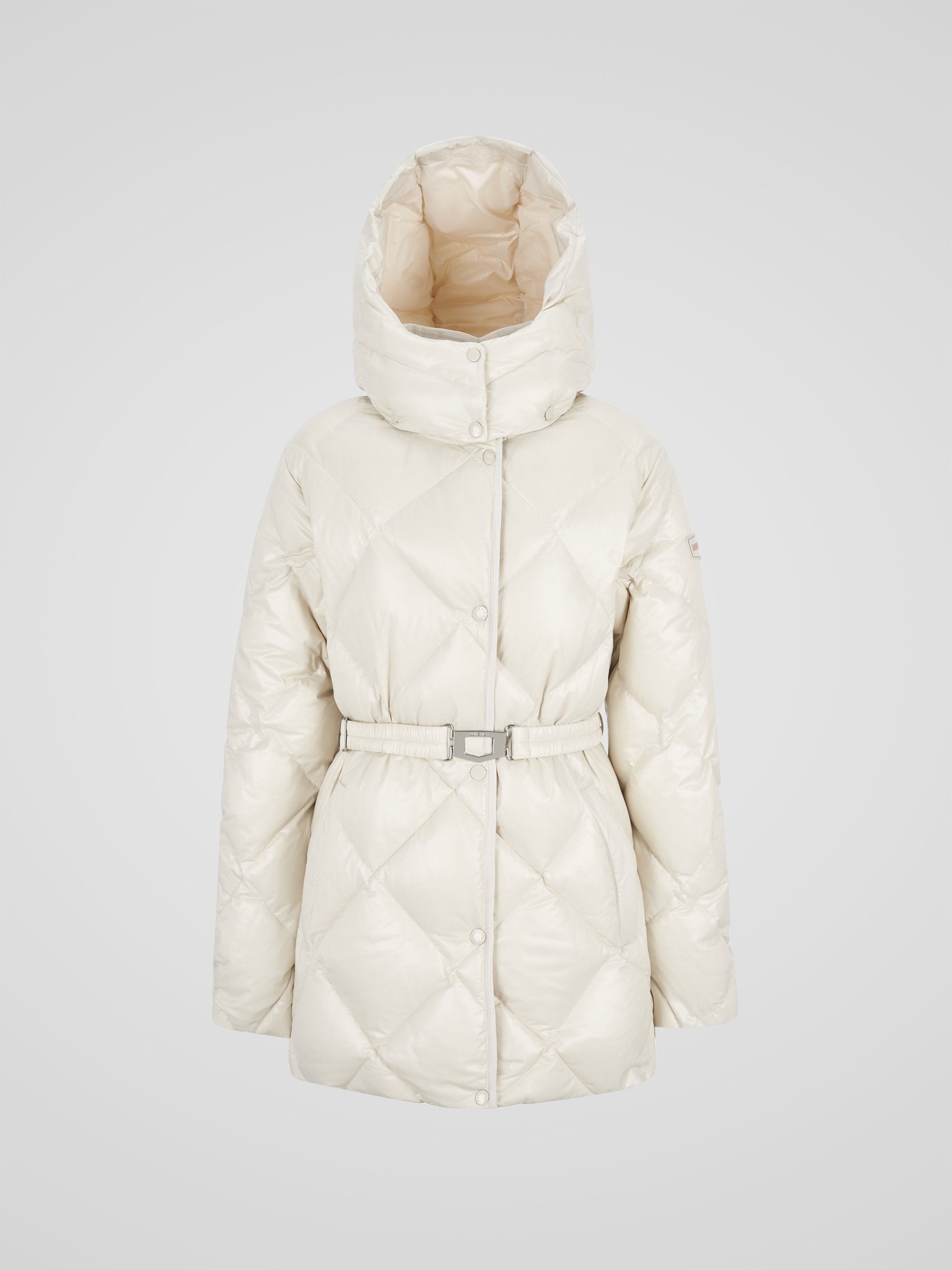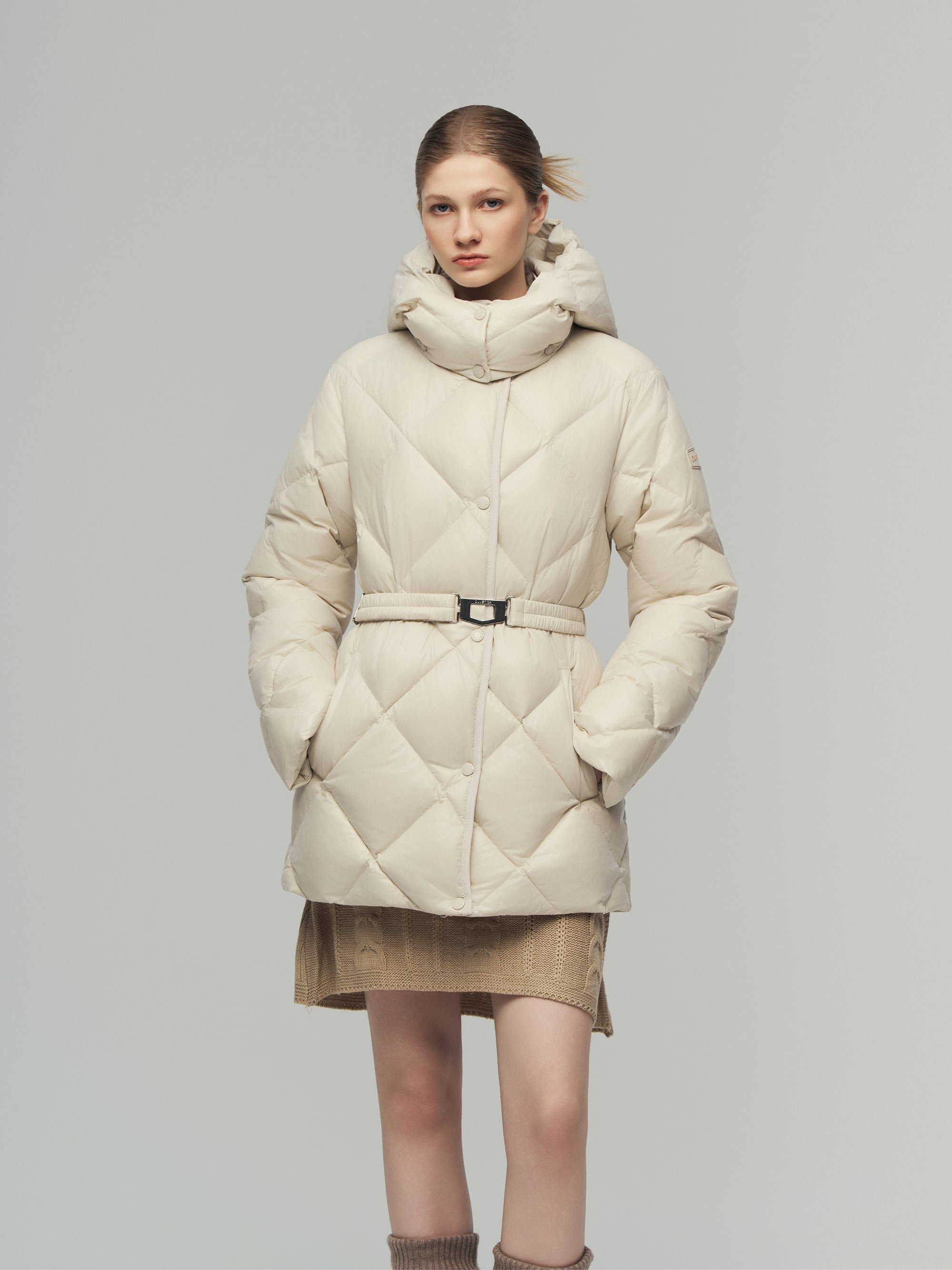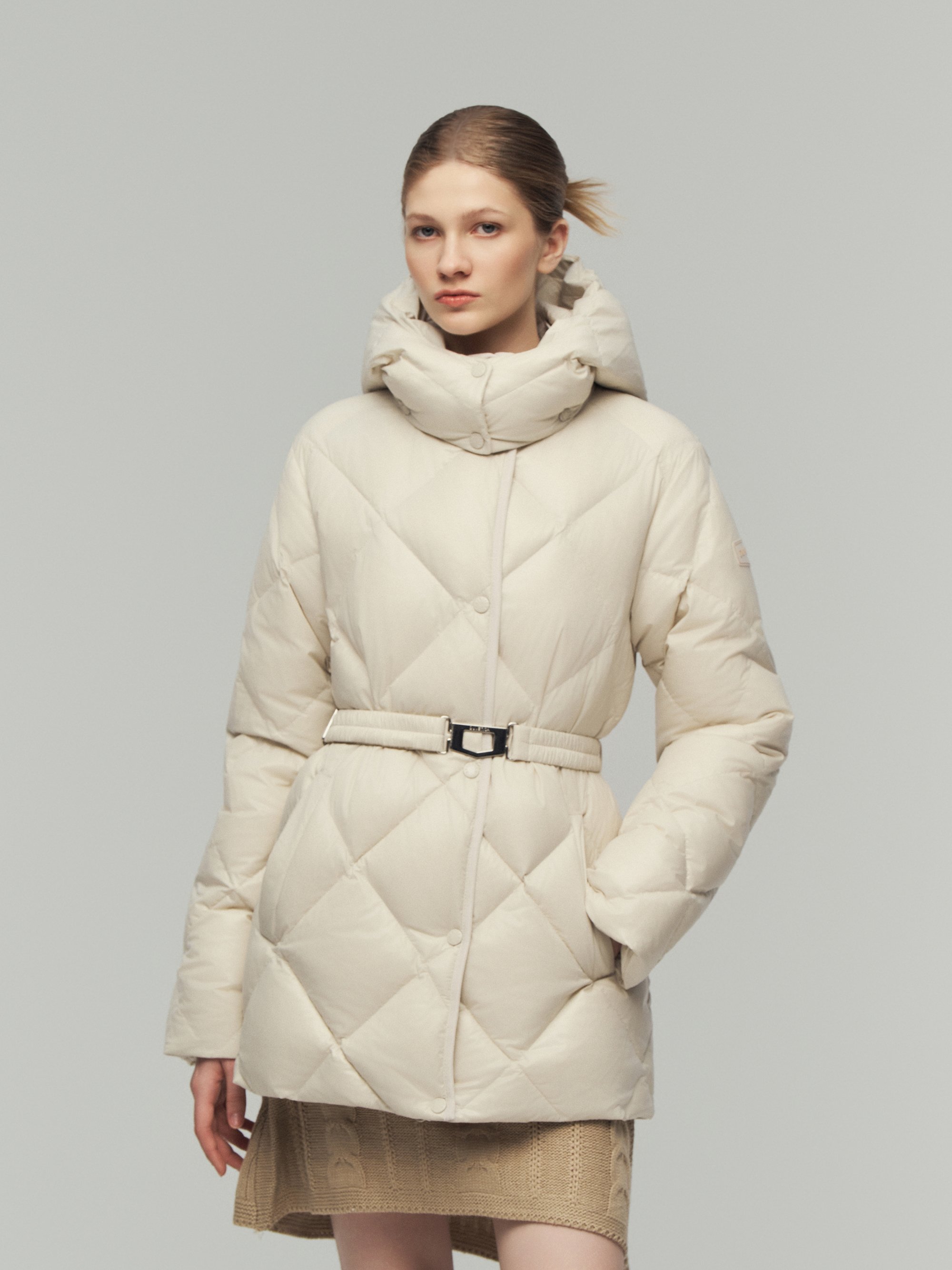알리스카 글로시 다이아퀼팅 미드 다운자켓