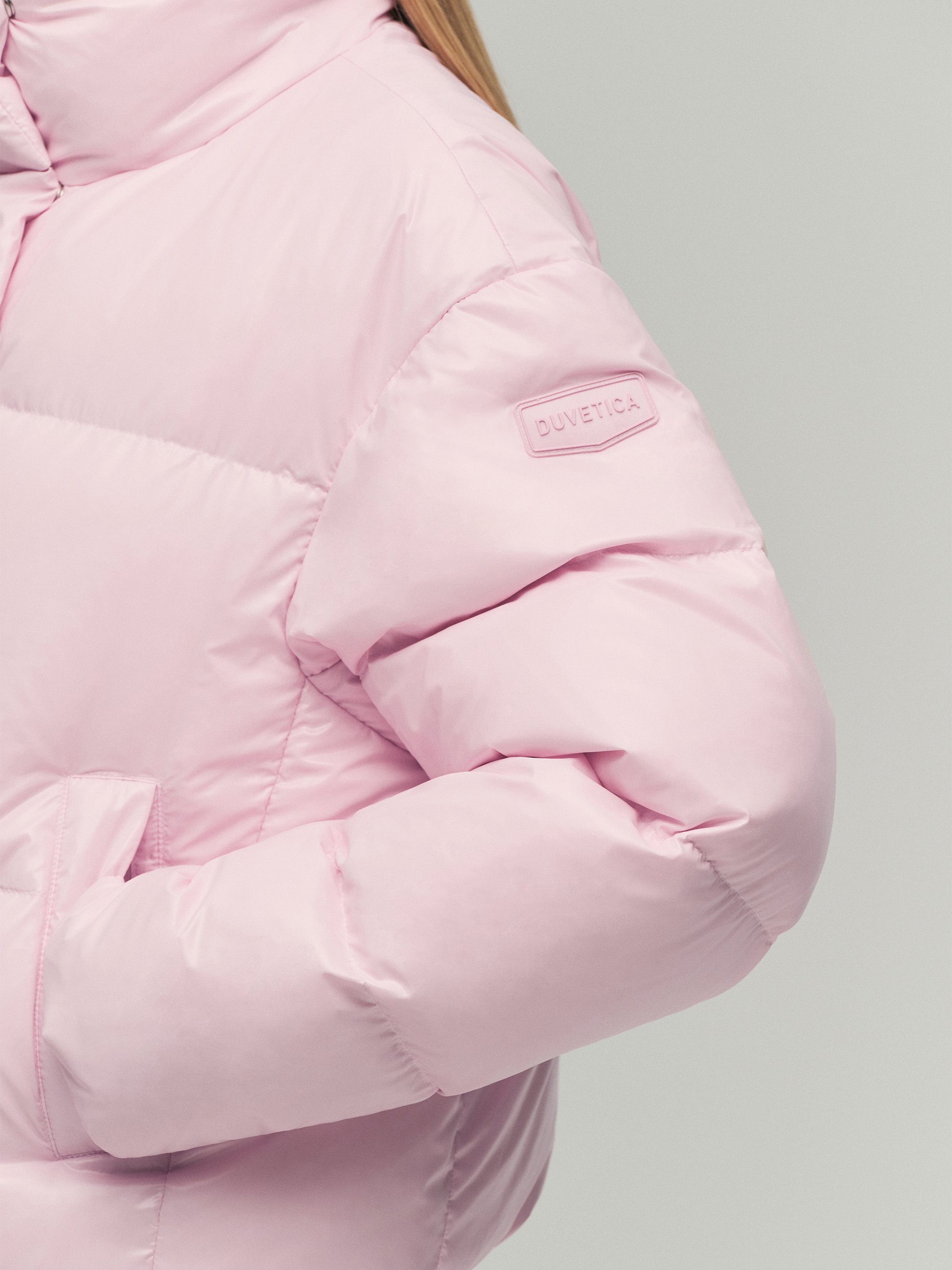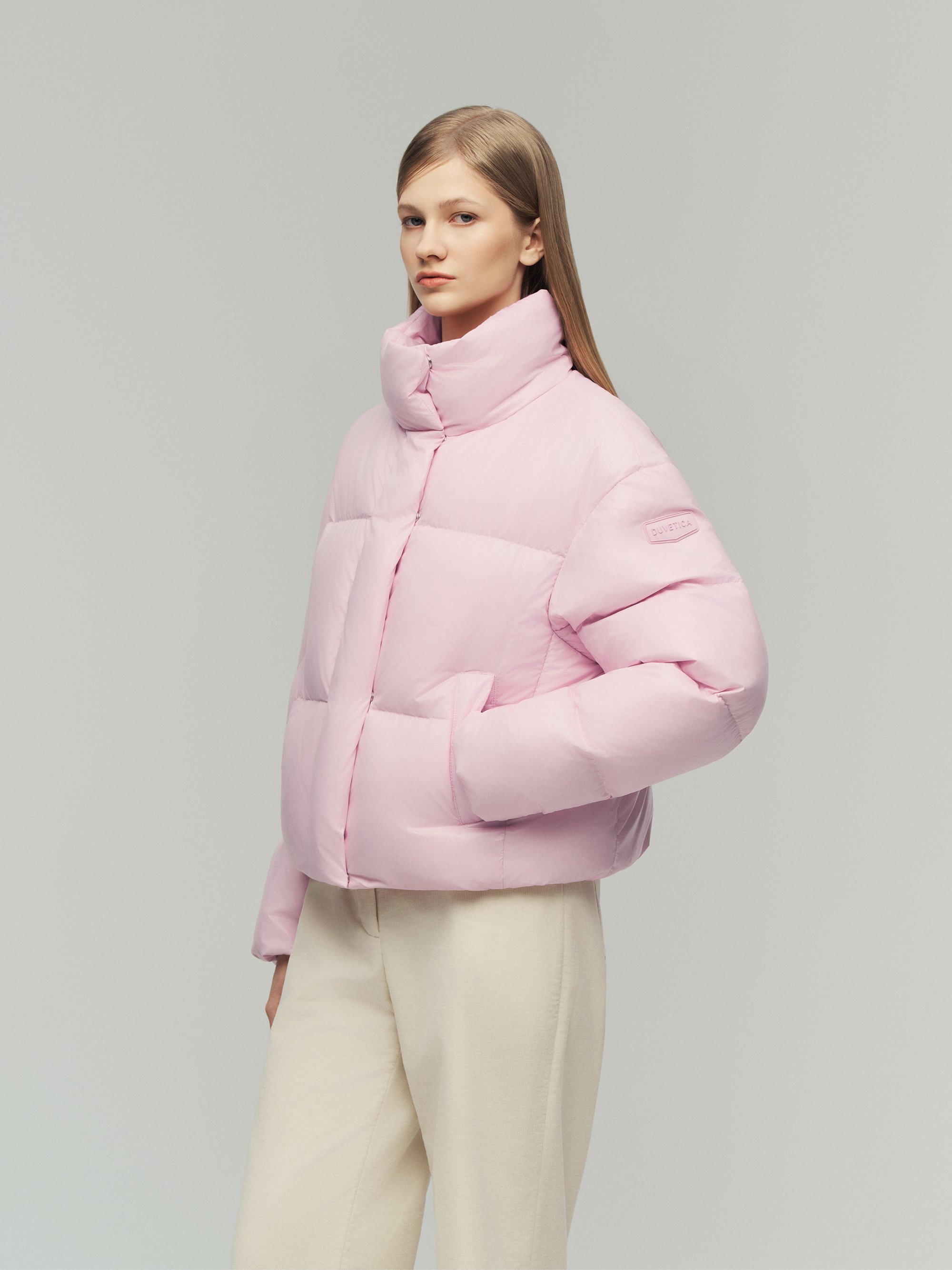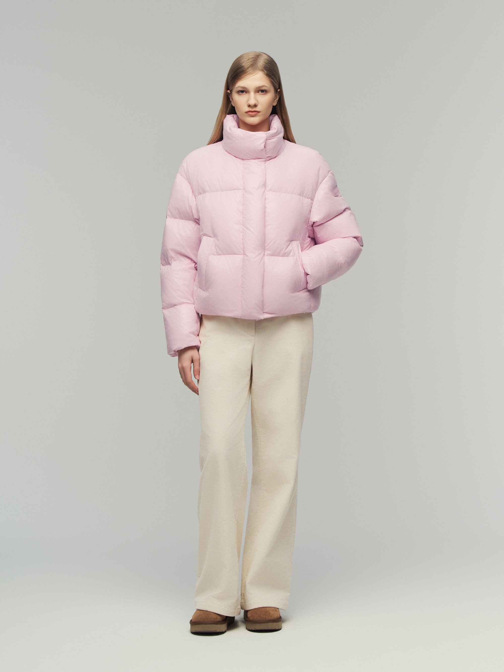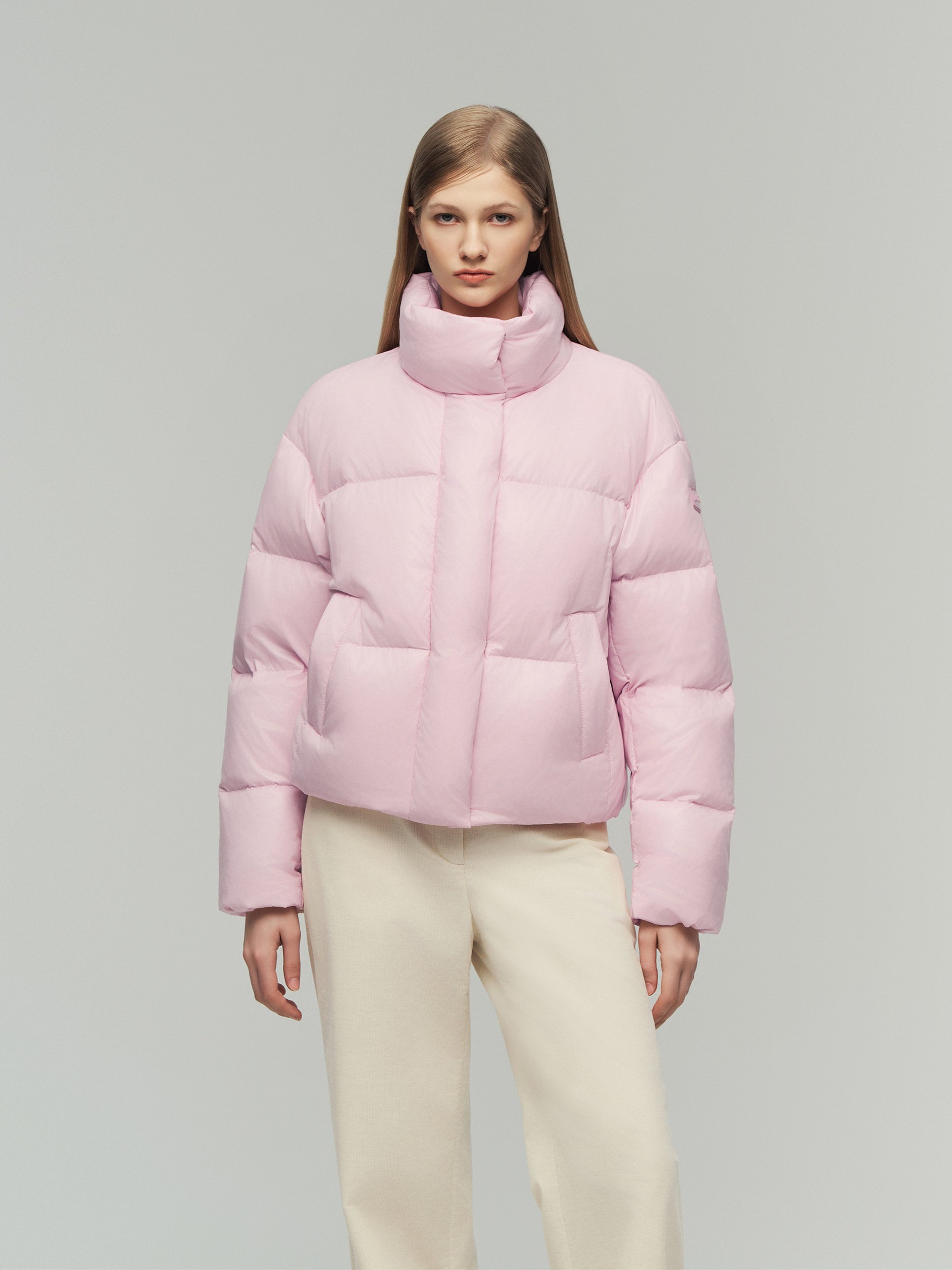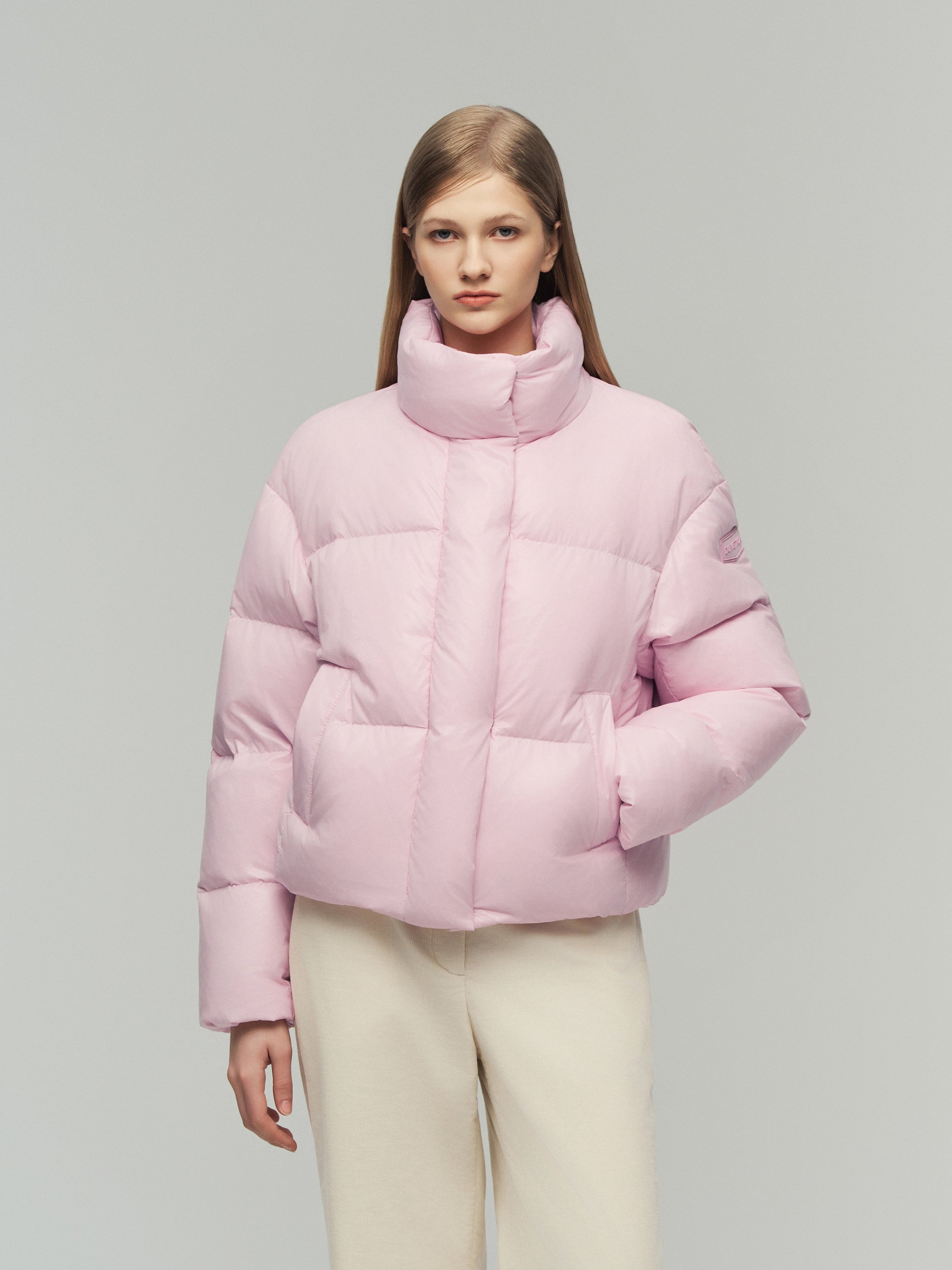 - 볼륨감 있는 크롭 기장의 하이넥 다운
