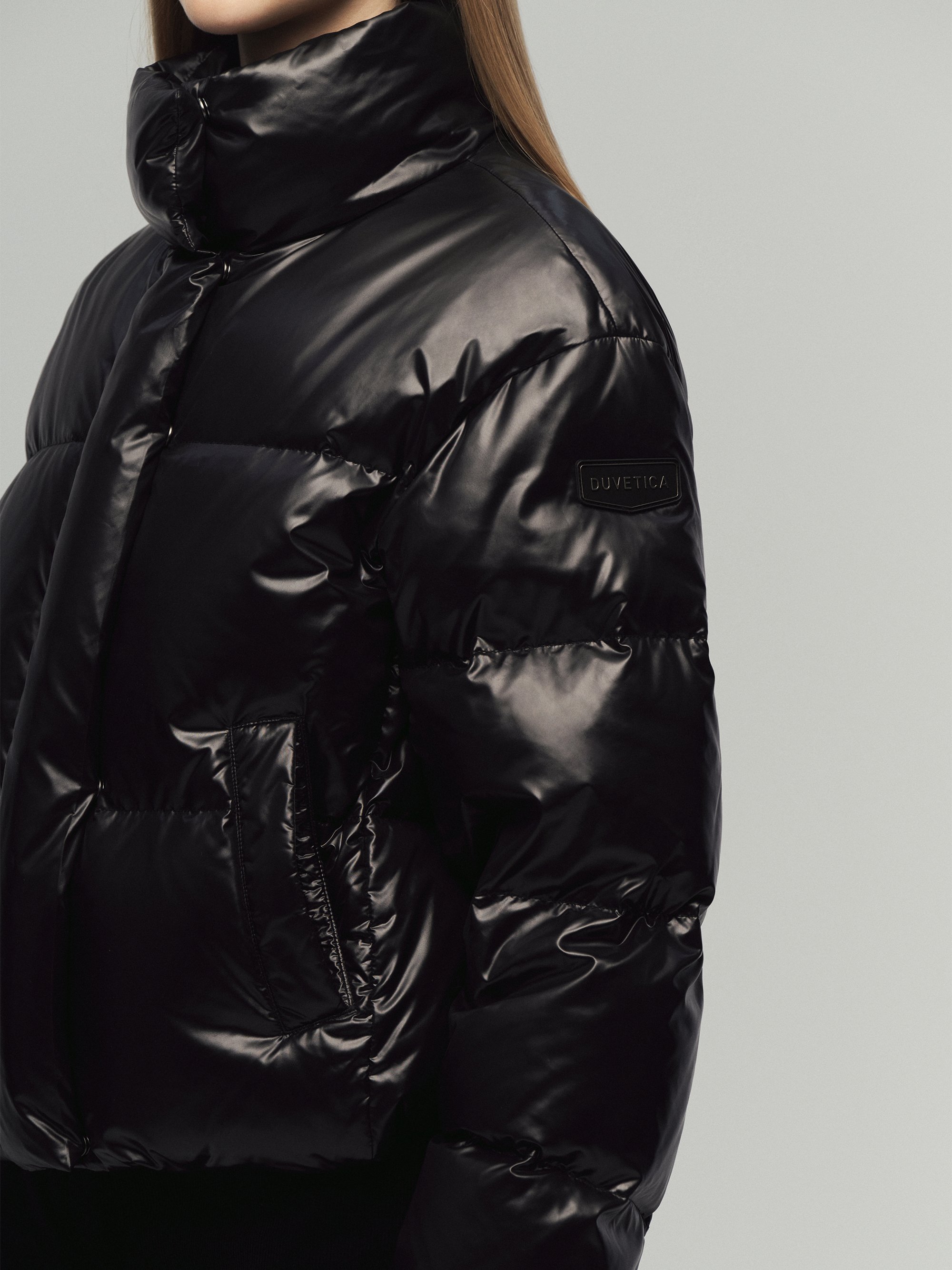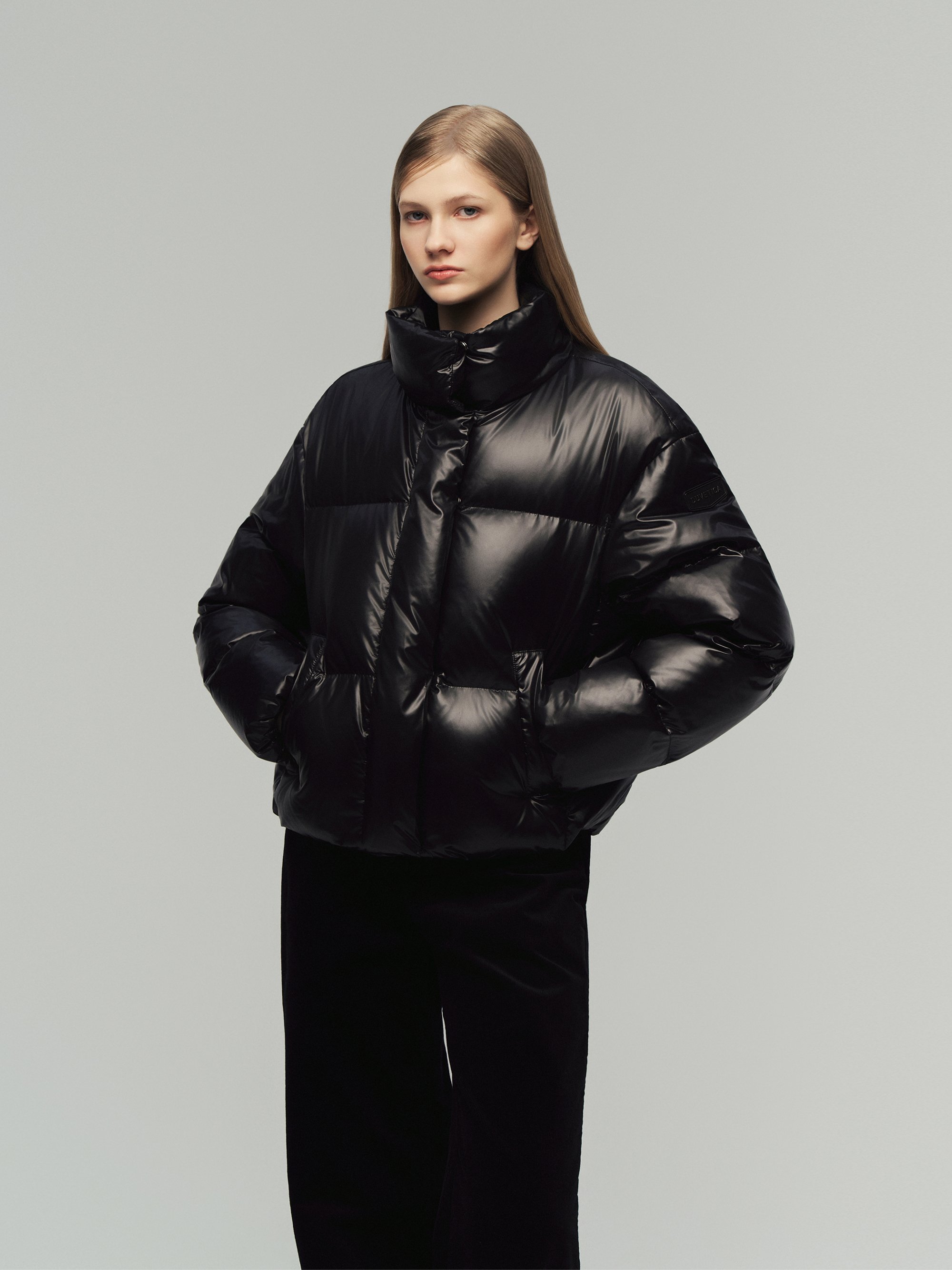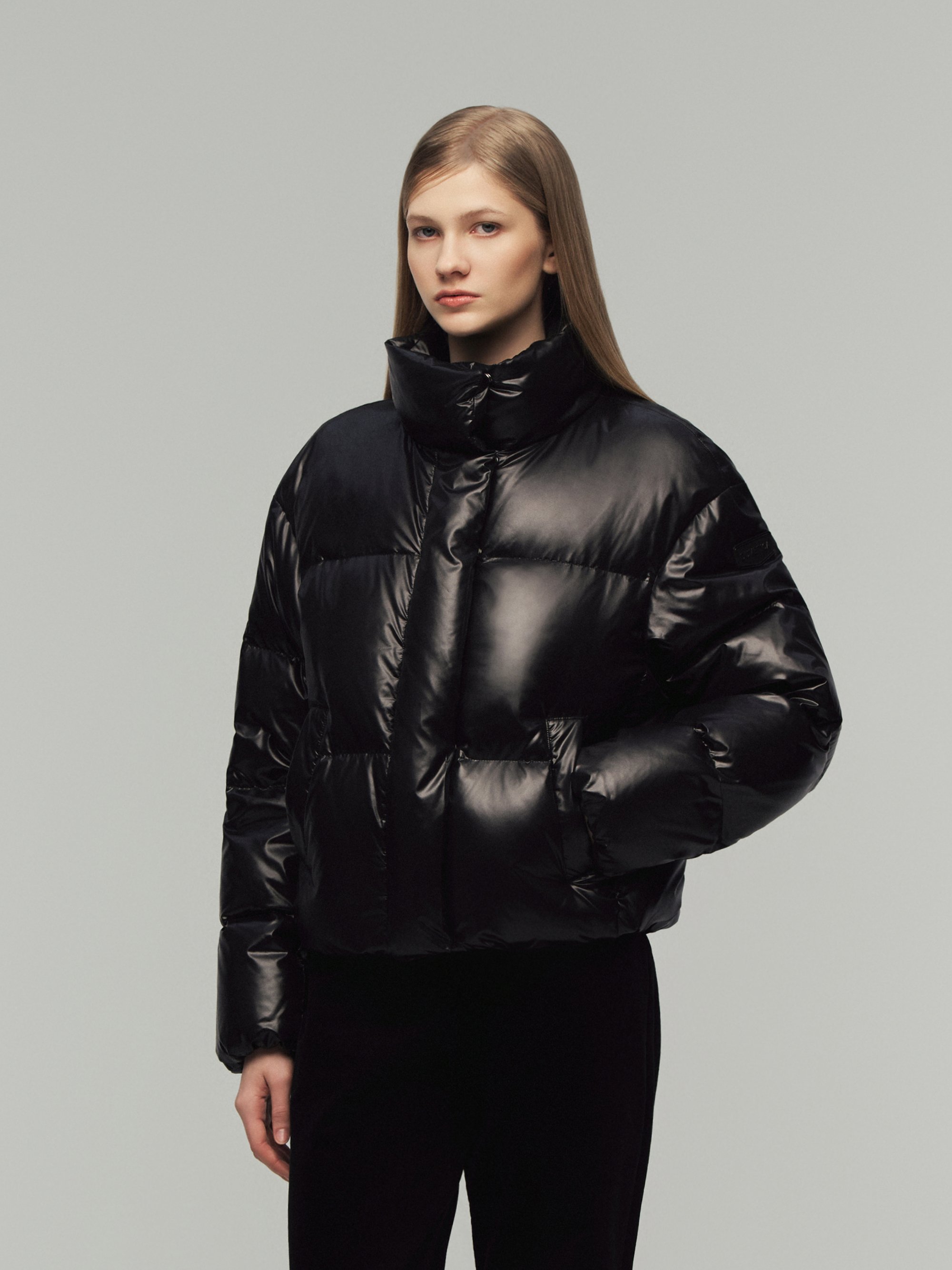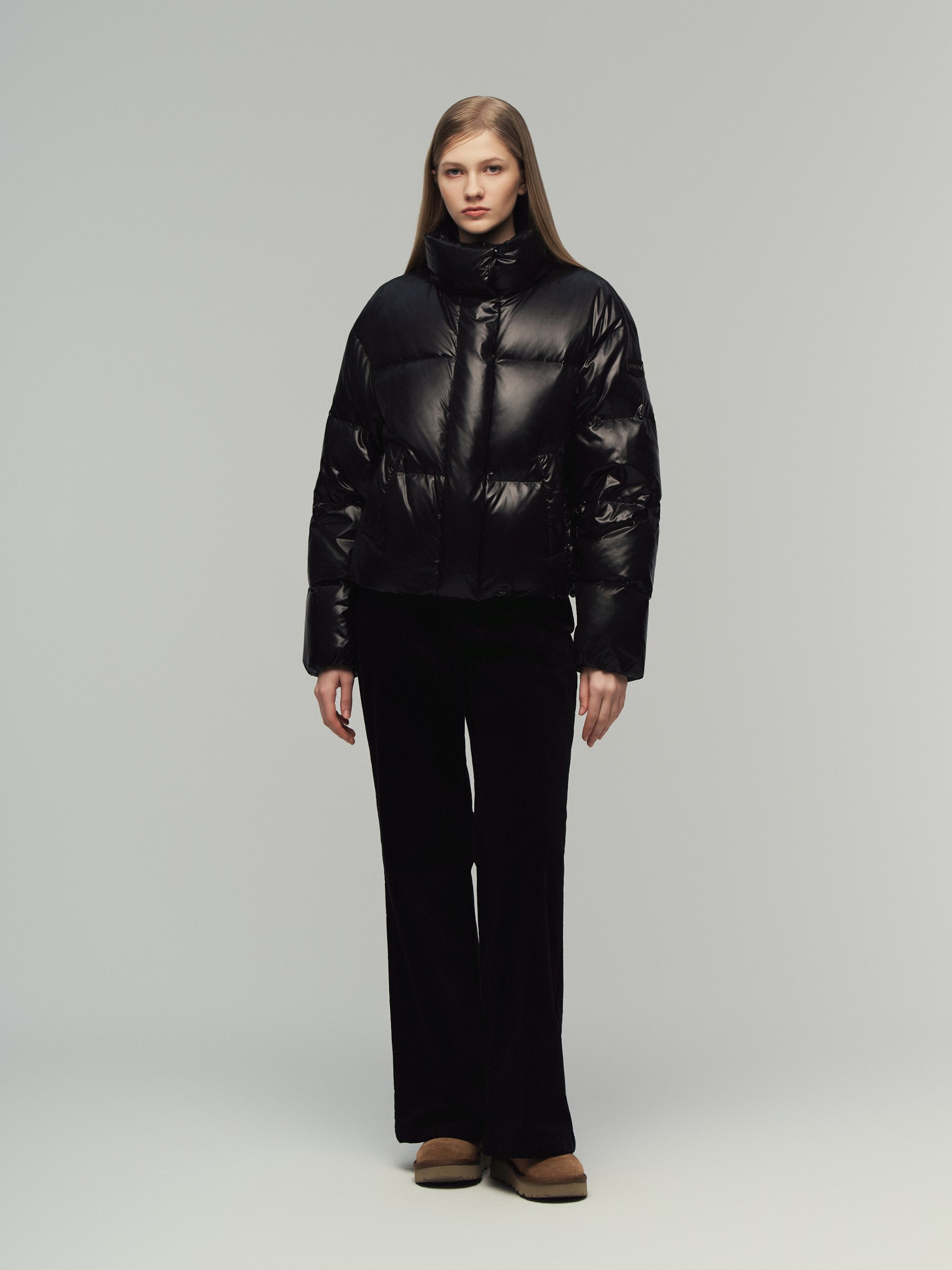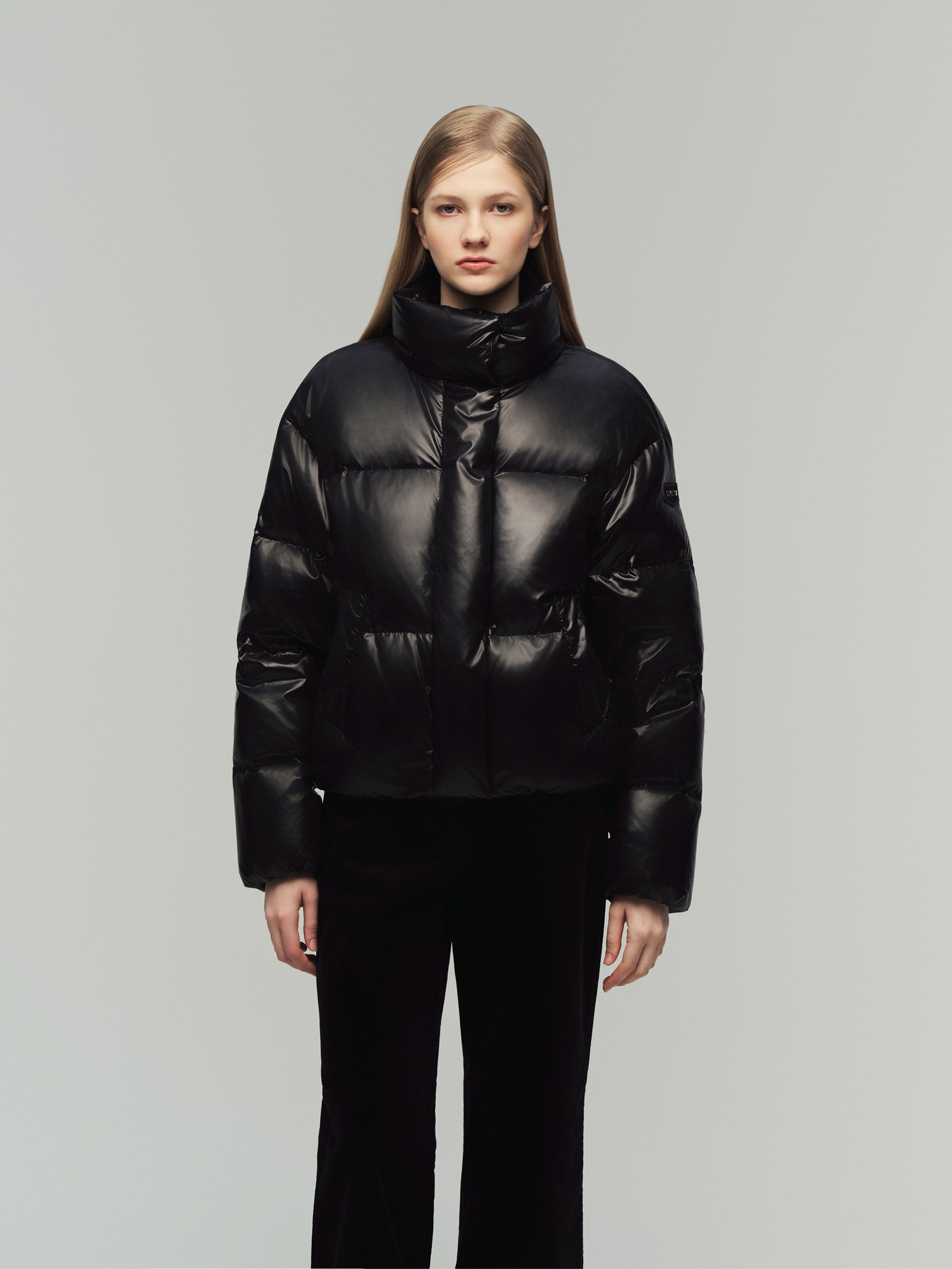 - 볼륨감 있는 크롭 기장의 하이넥 다운