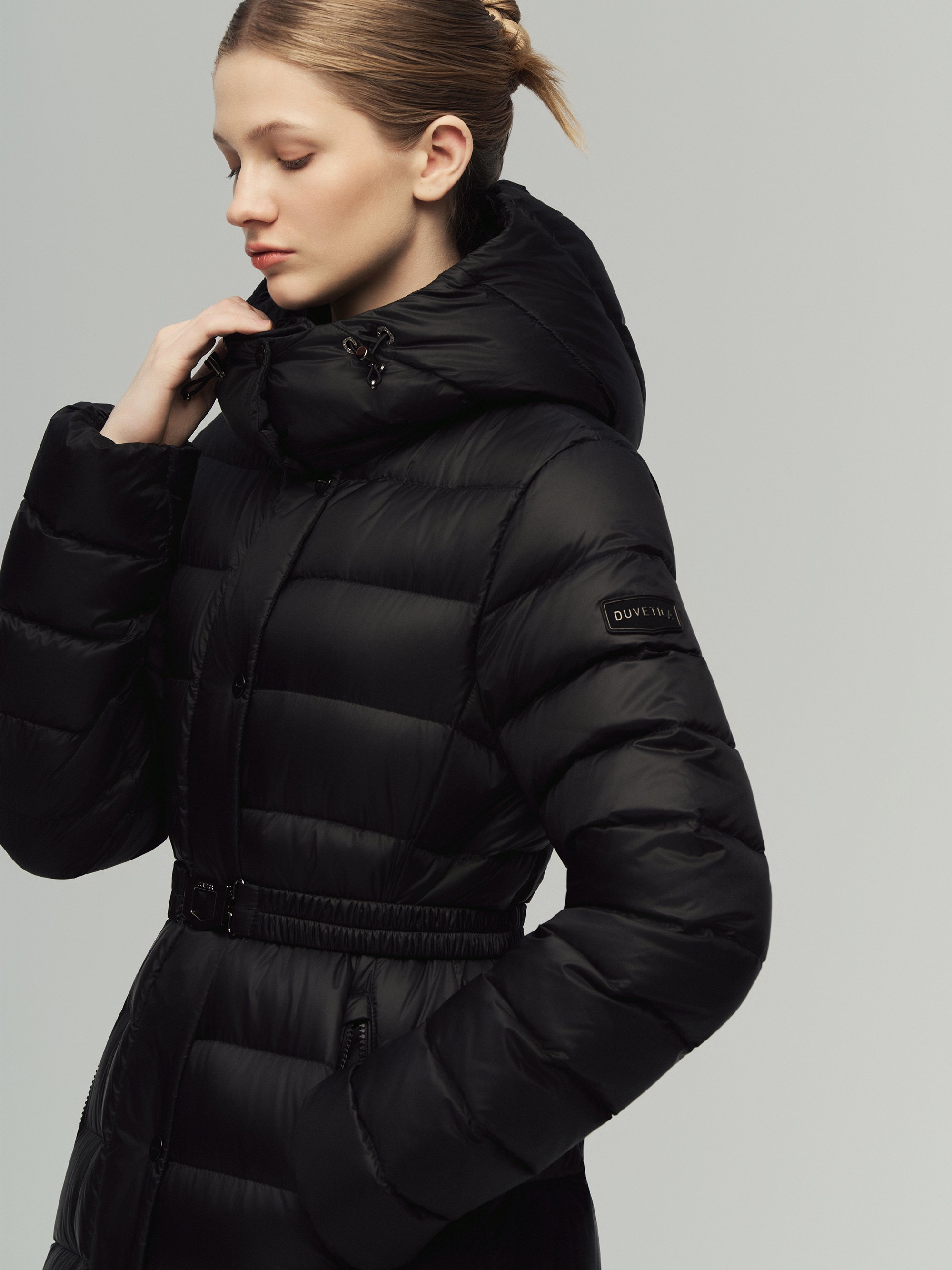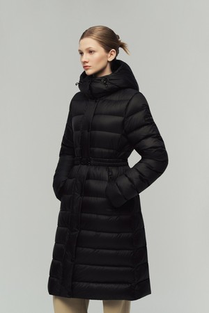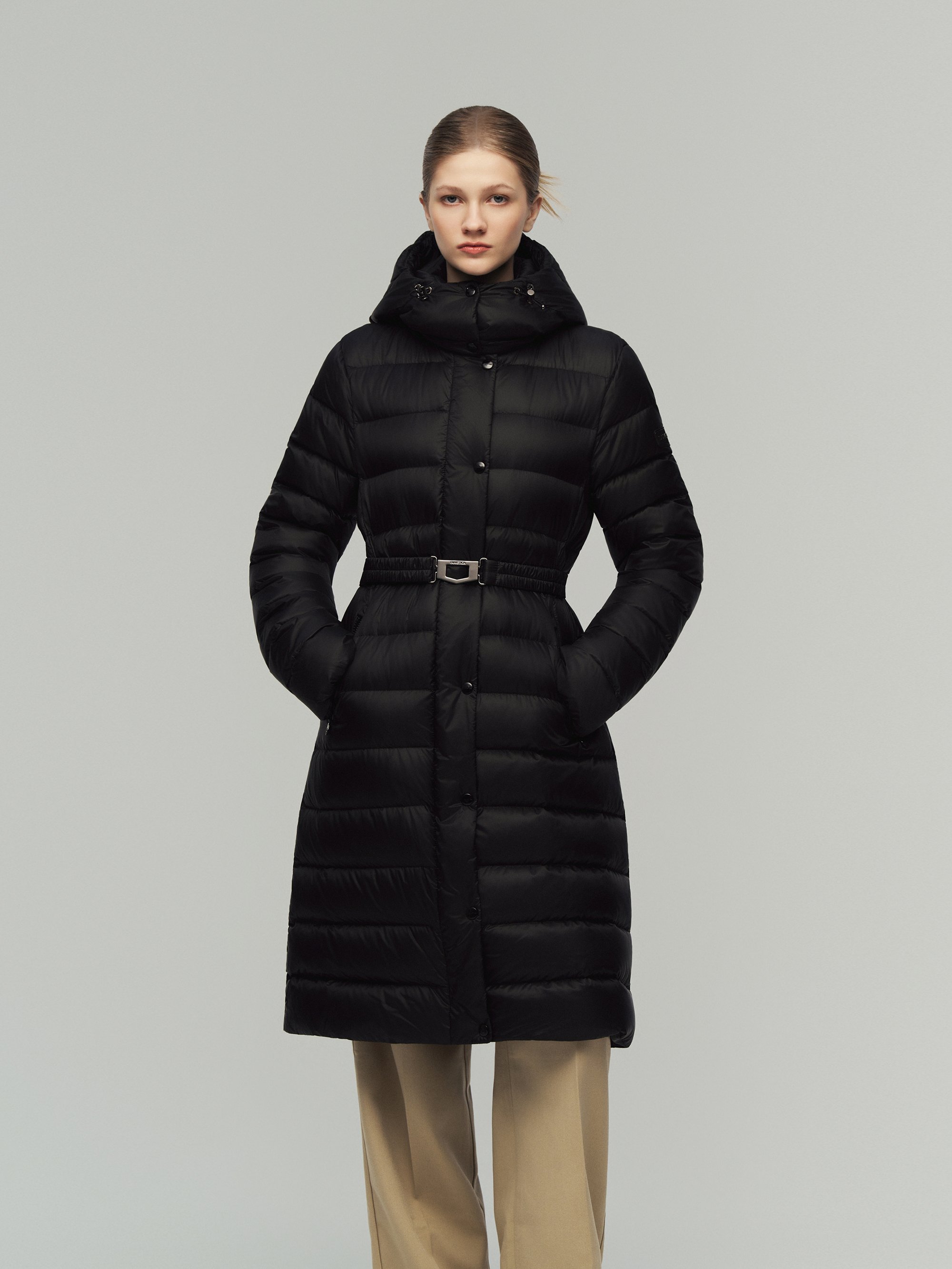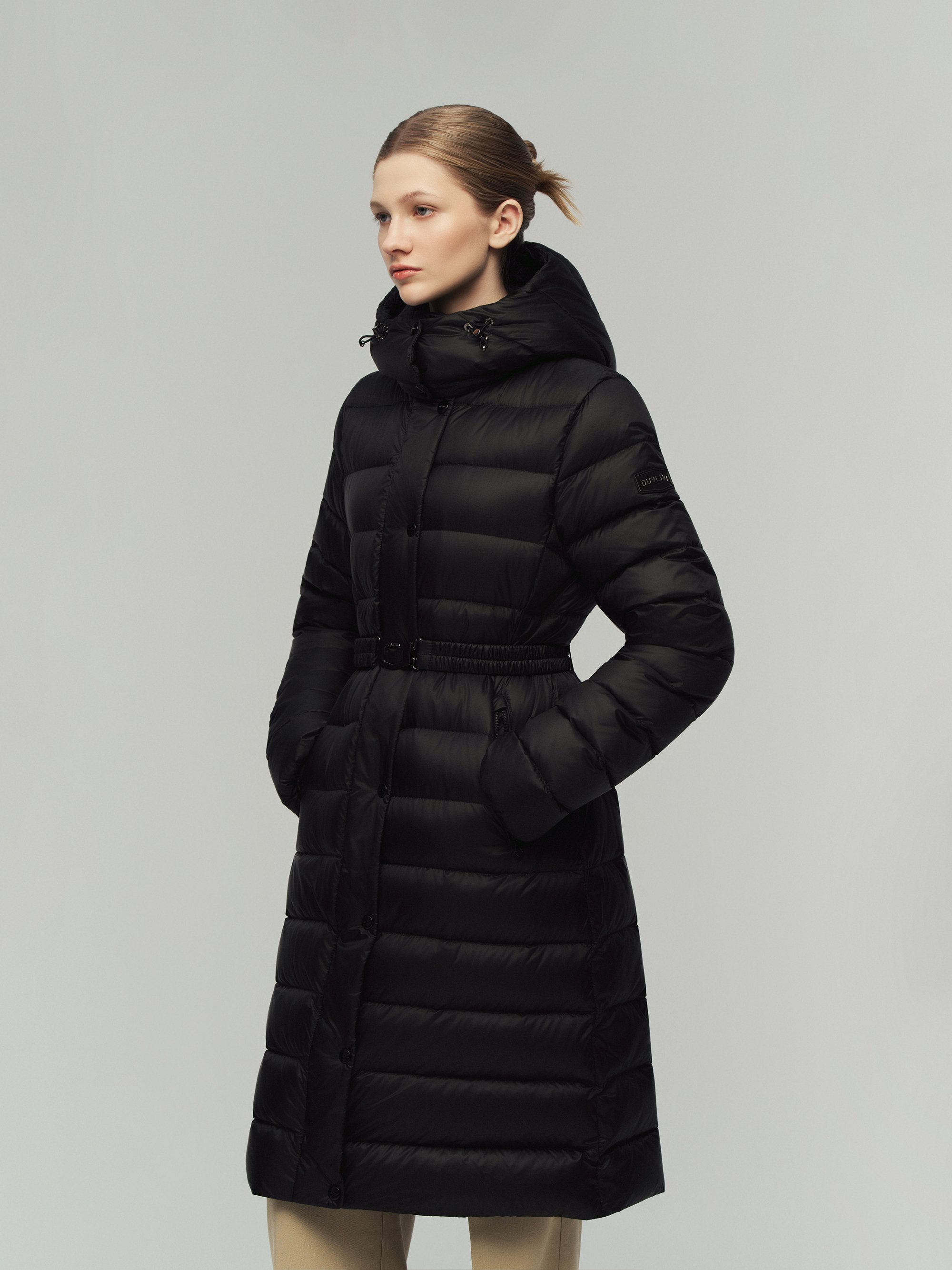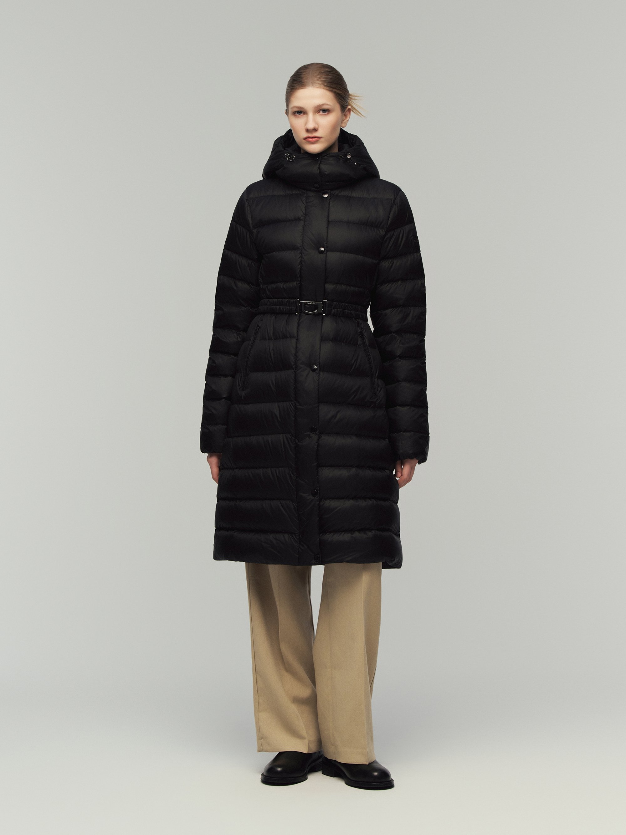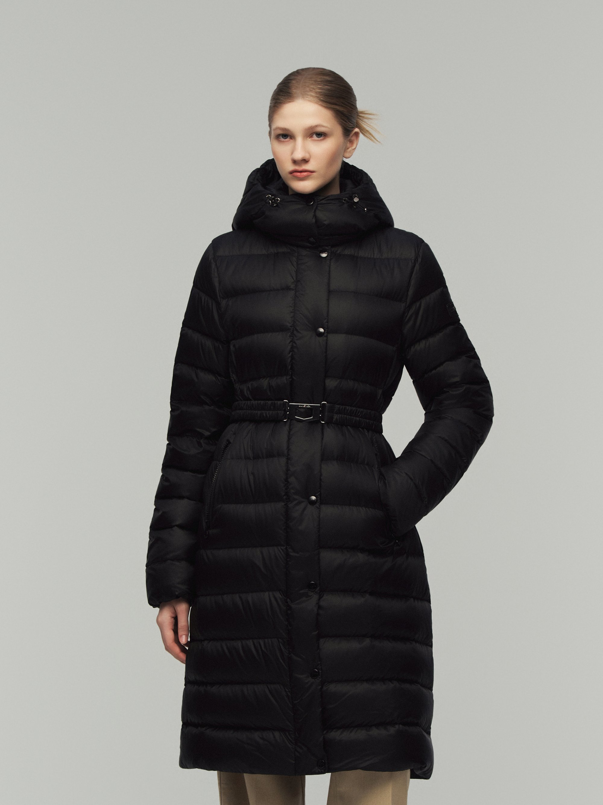 엘베지아 세미글로시 슬림 미드 다운자켓