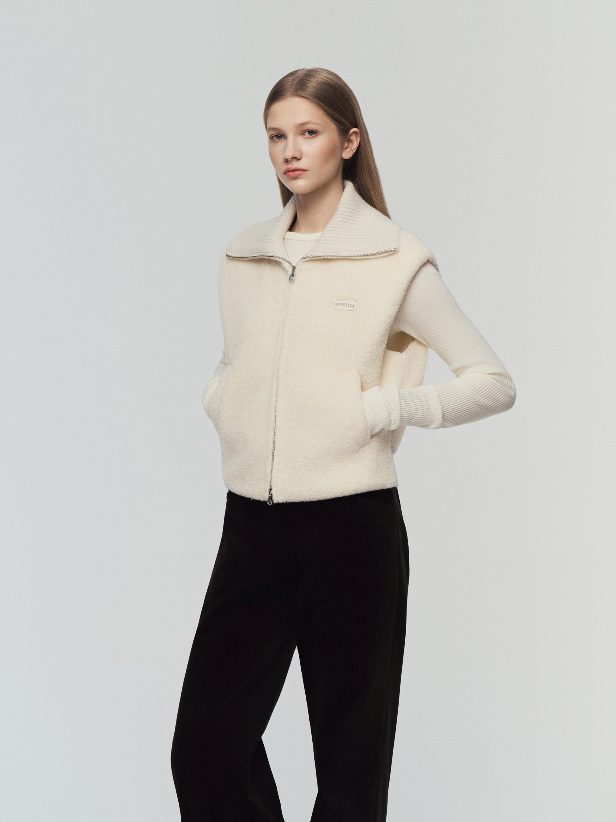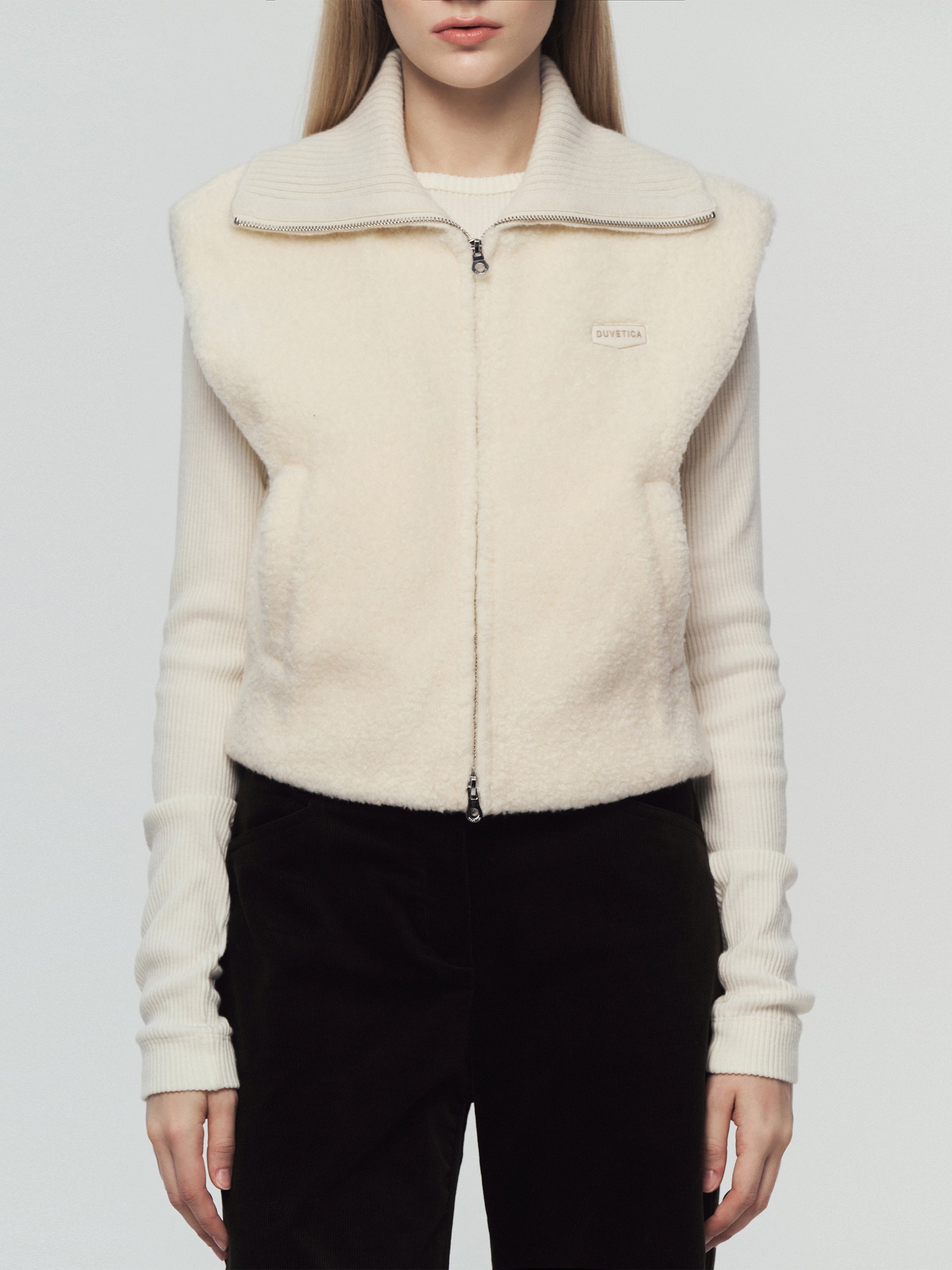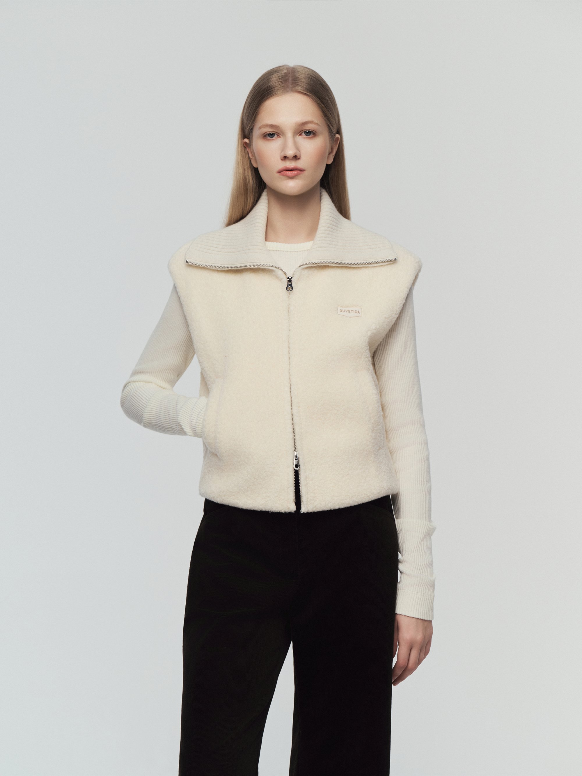 - 부드러운 촉감의 부클과 니트를 결합한 베스트