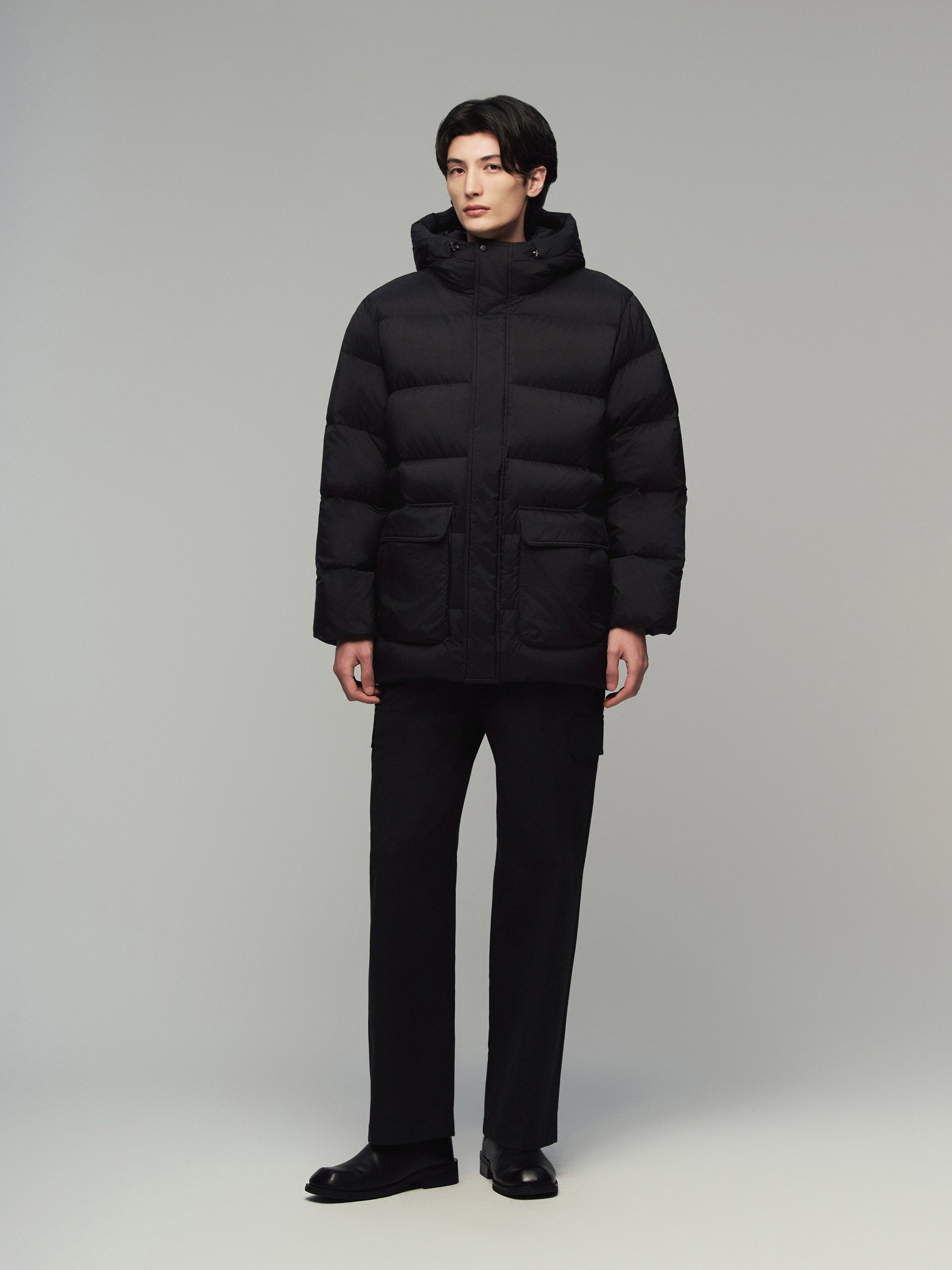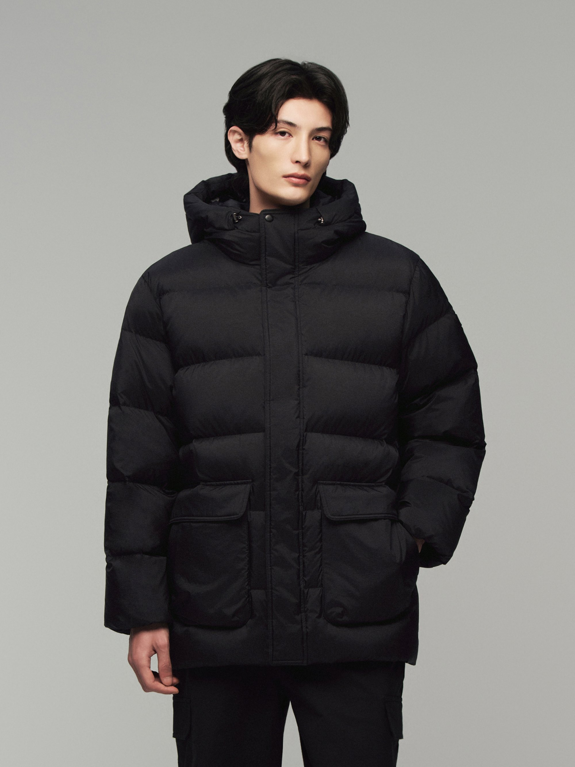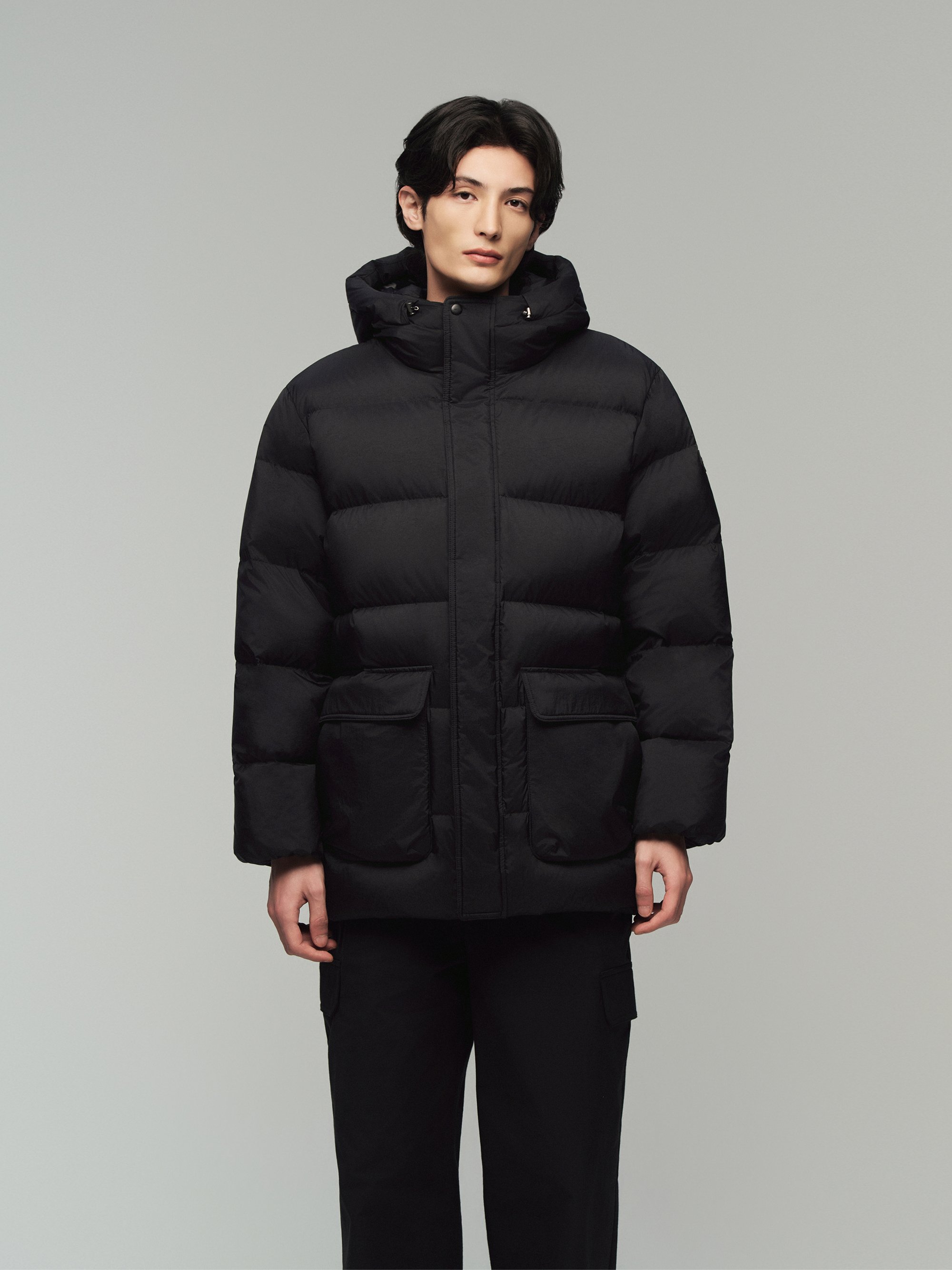 쿠크 아웃포켓 후디 미드 푸퍼 다운자켓