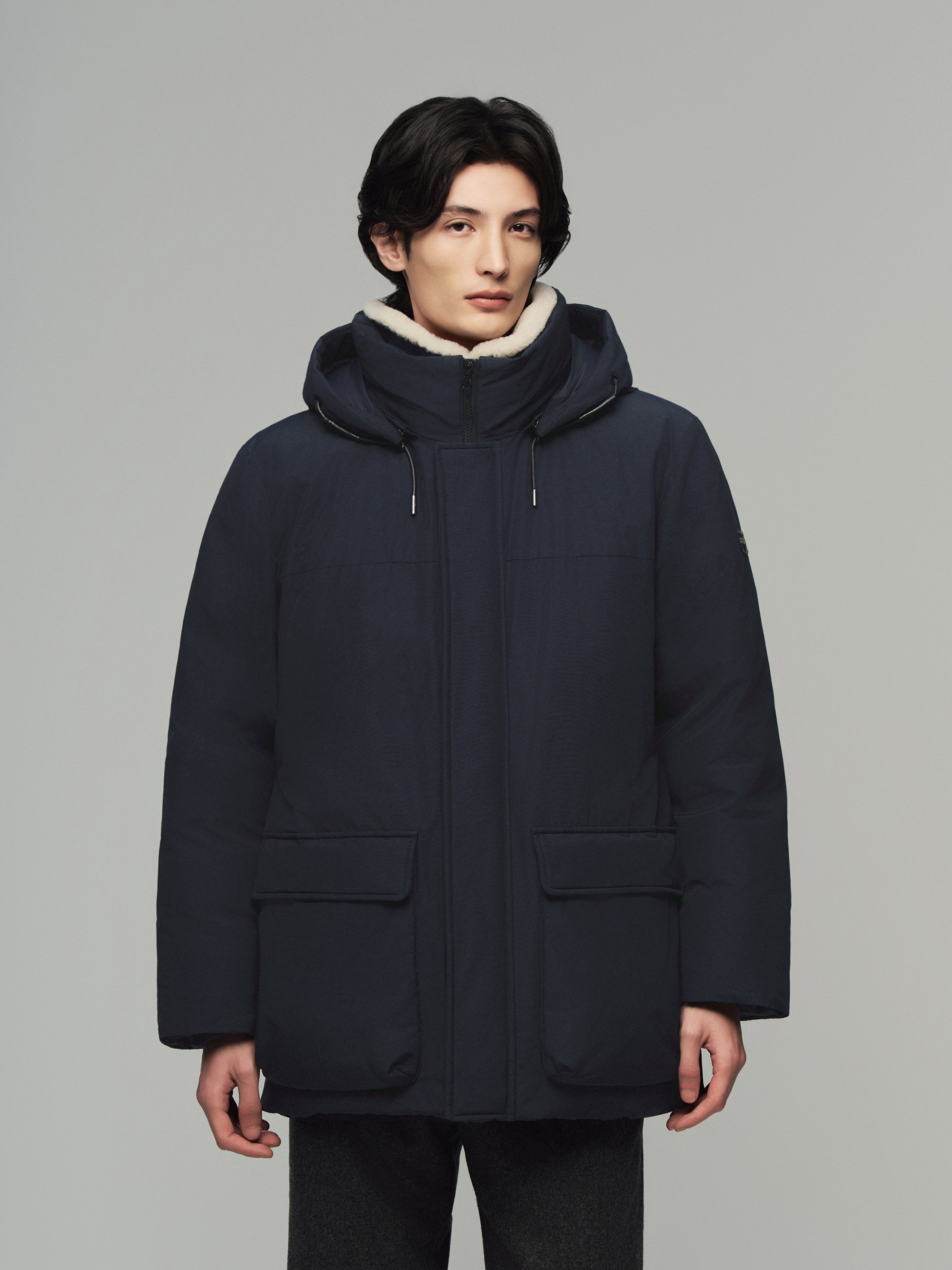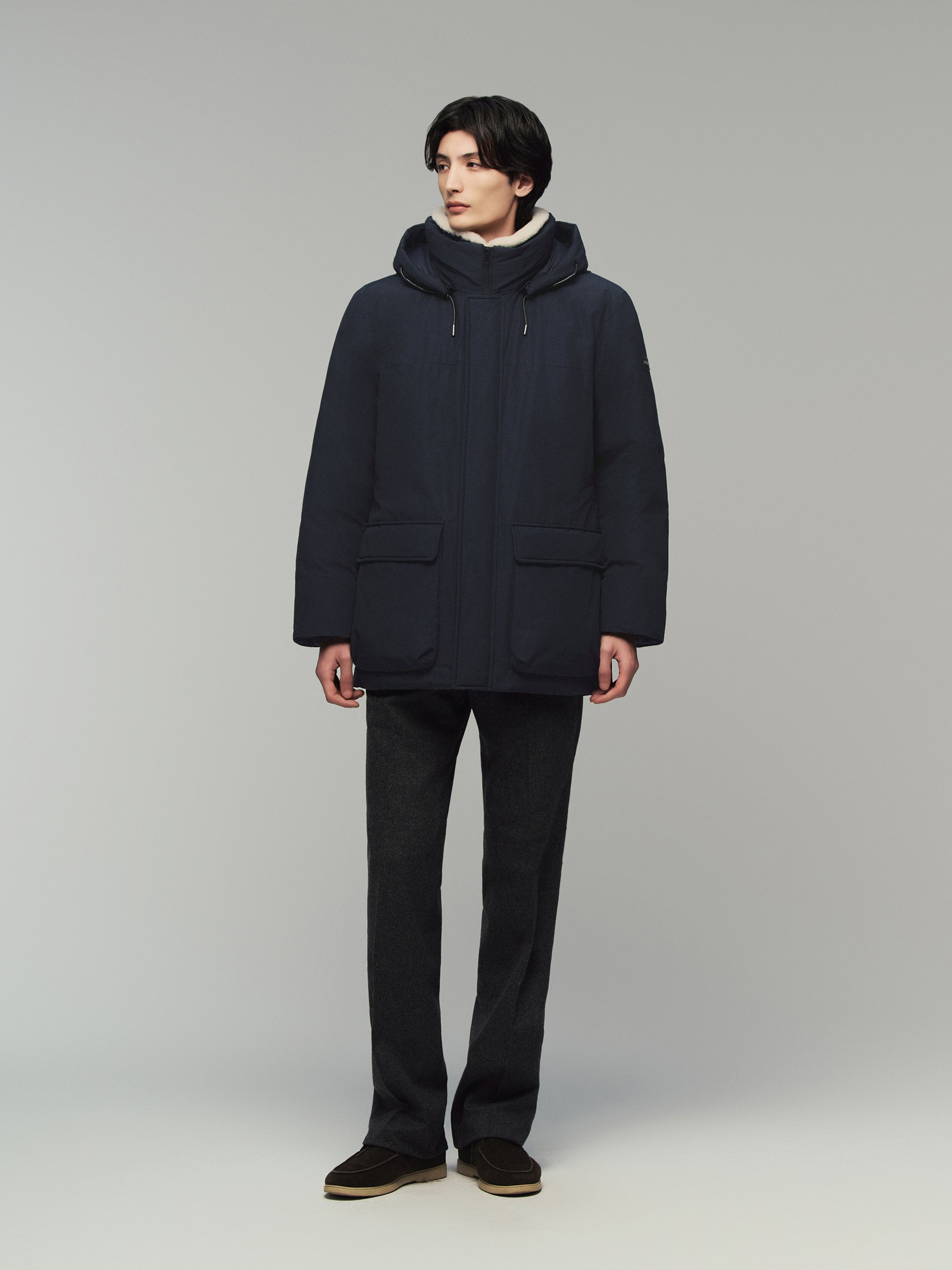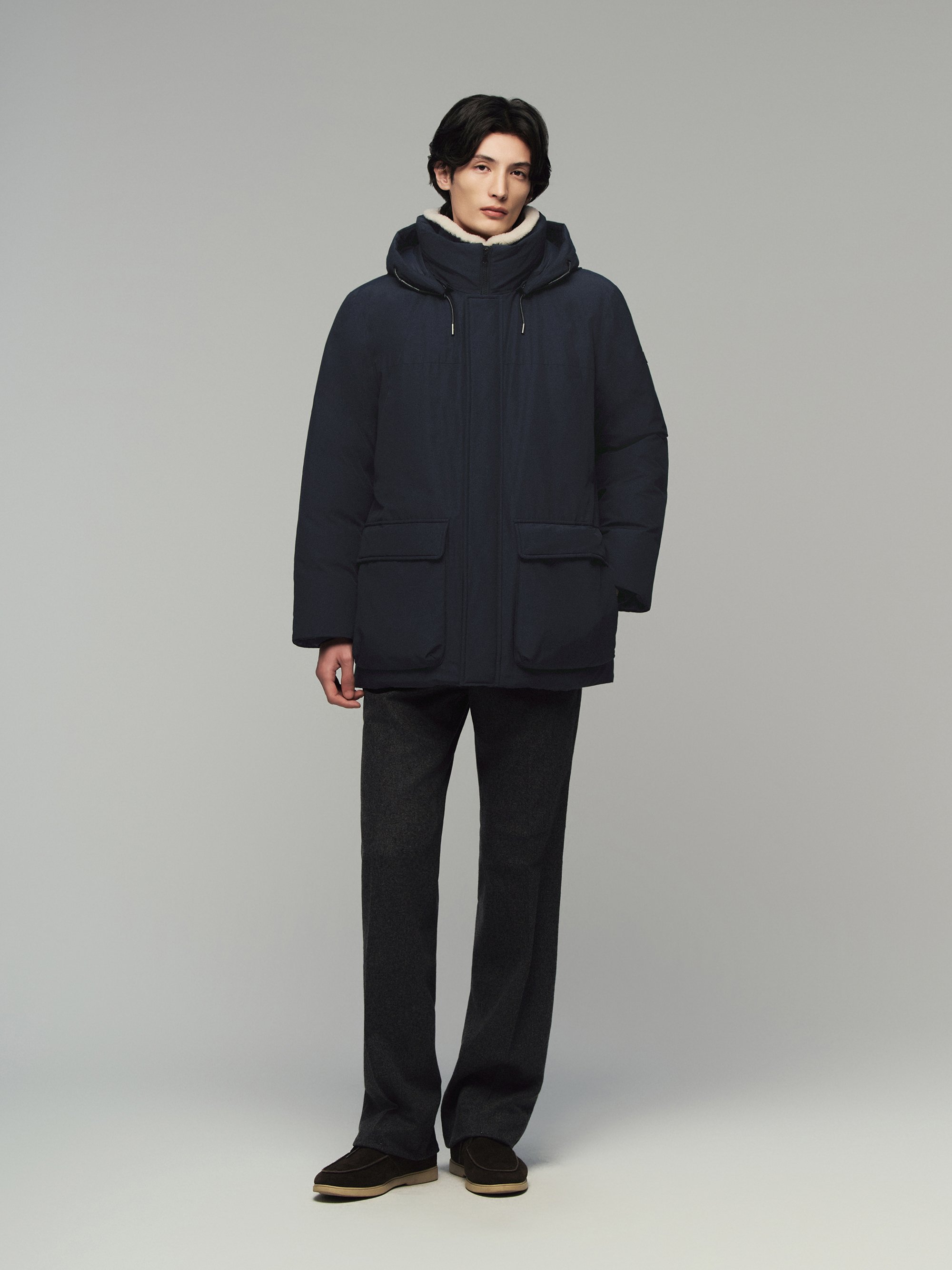 - 넥라인에 탈부착 가능한 부클 디테일을 적용하여 보온성을 강화.