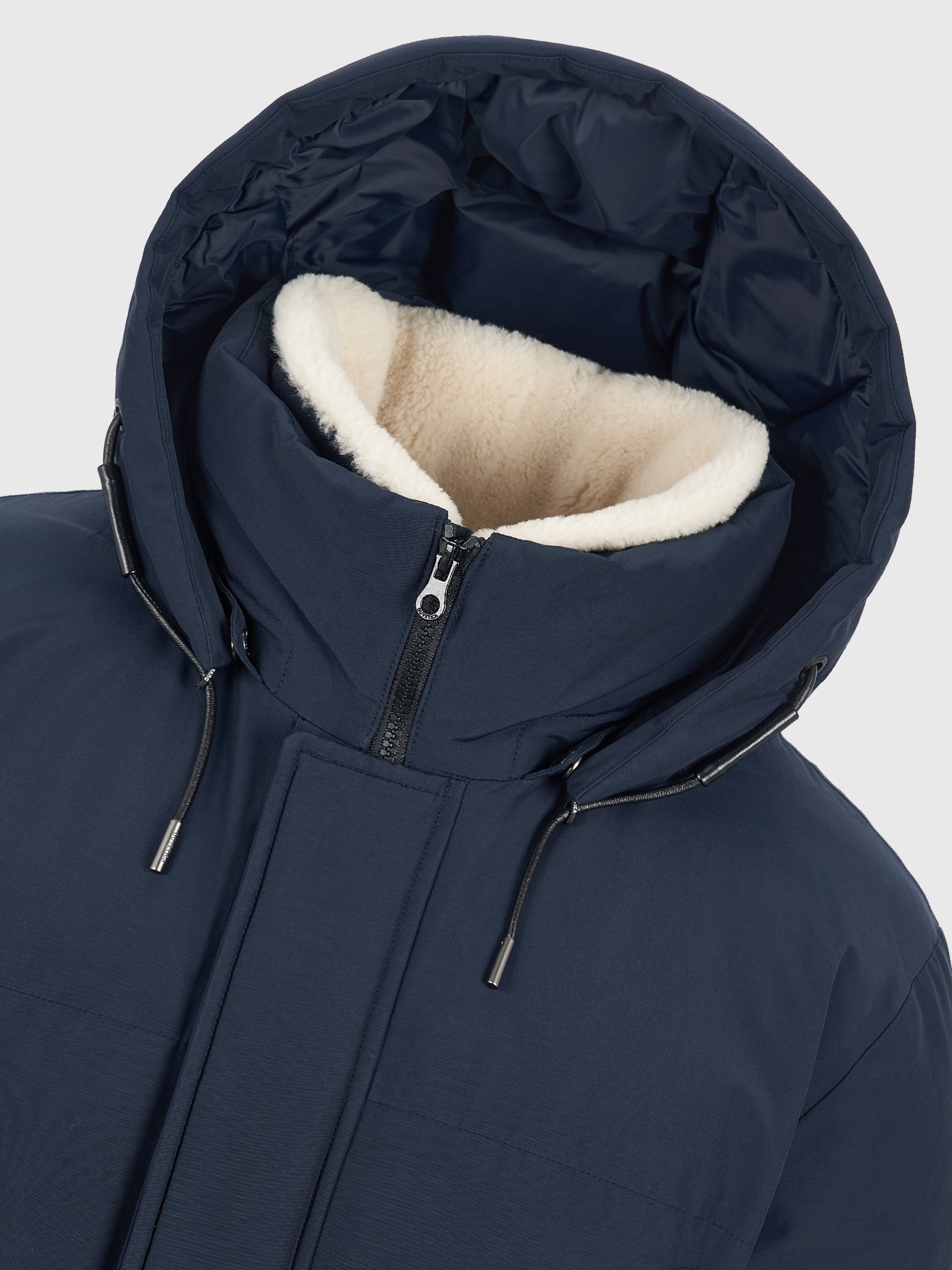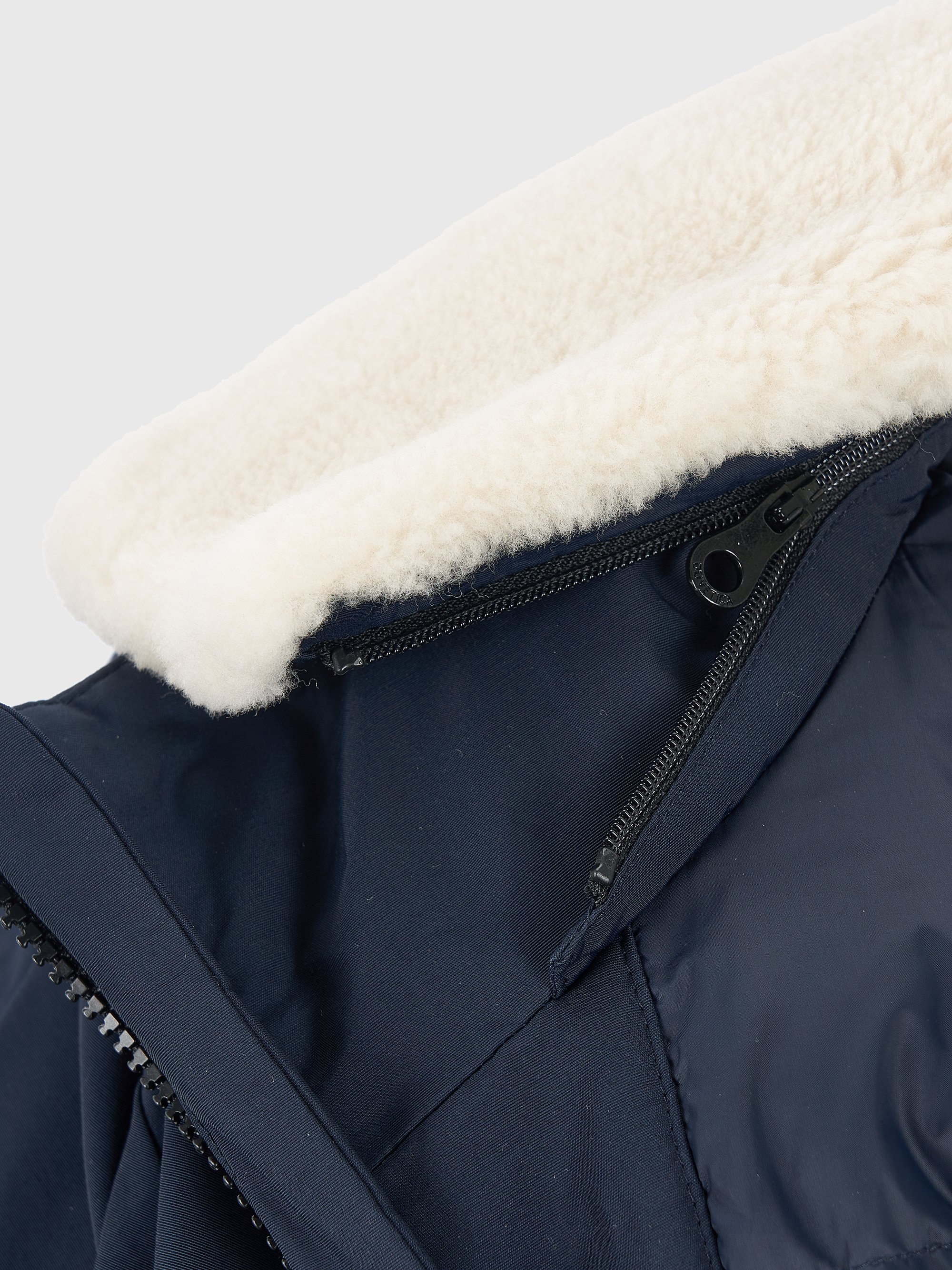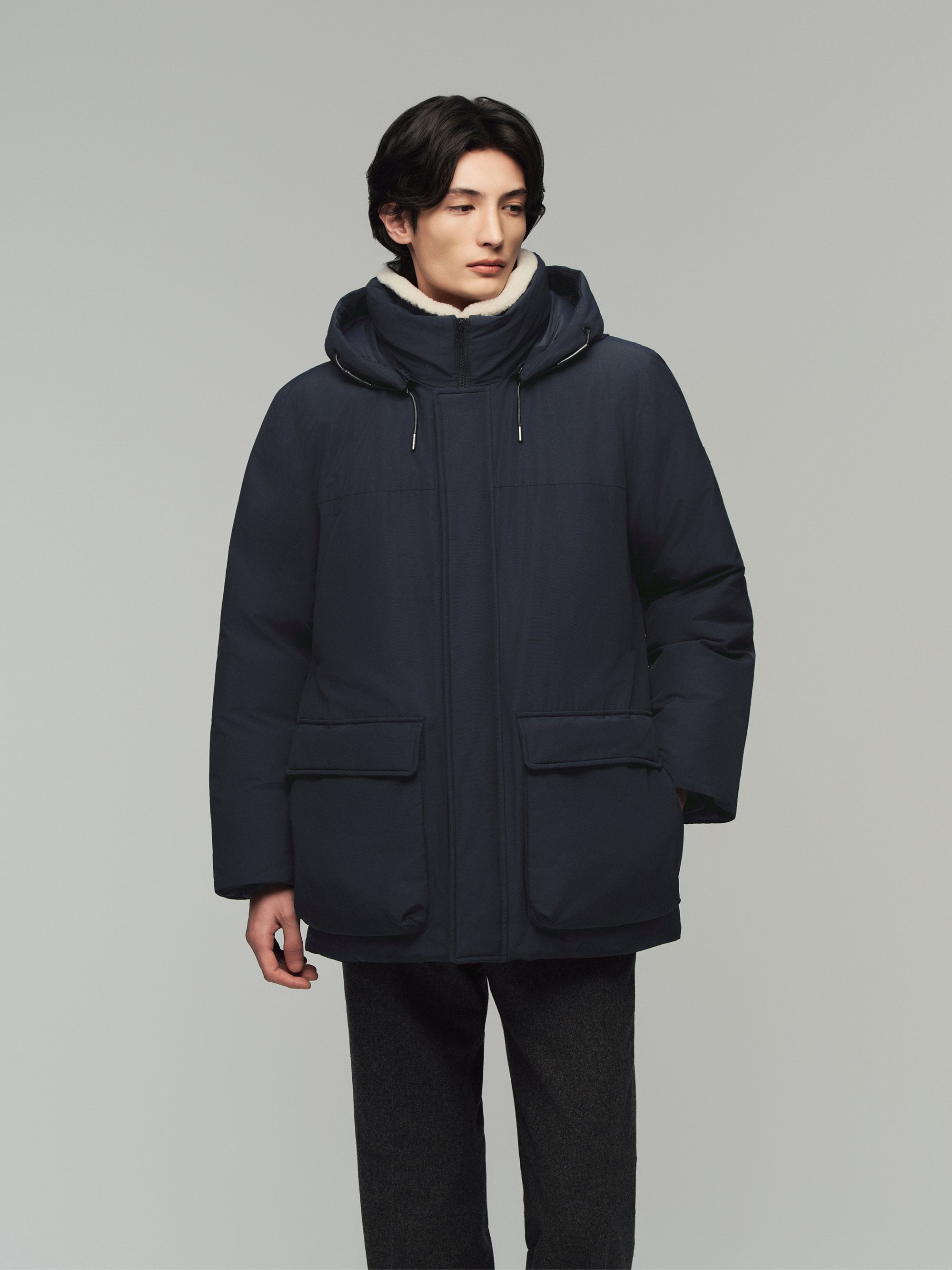 - 넥라인에 탈부착 가능한 부클 디테일을 적용하여 보온성을 강화.
