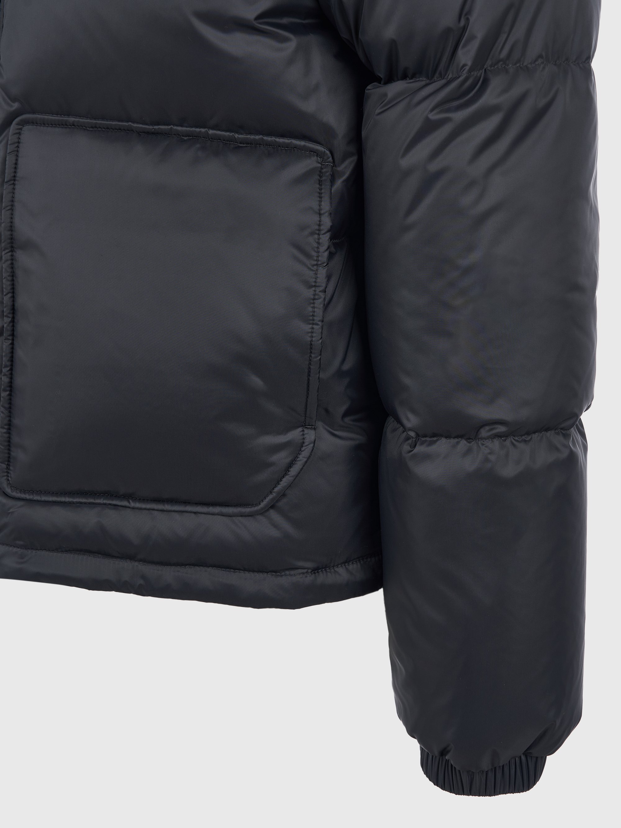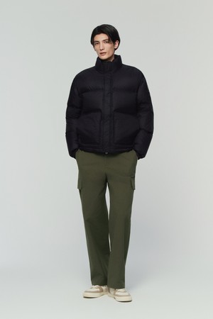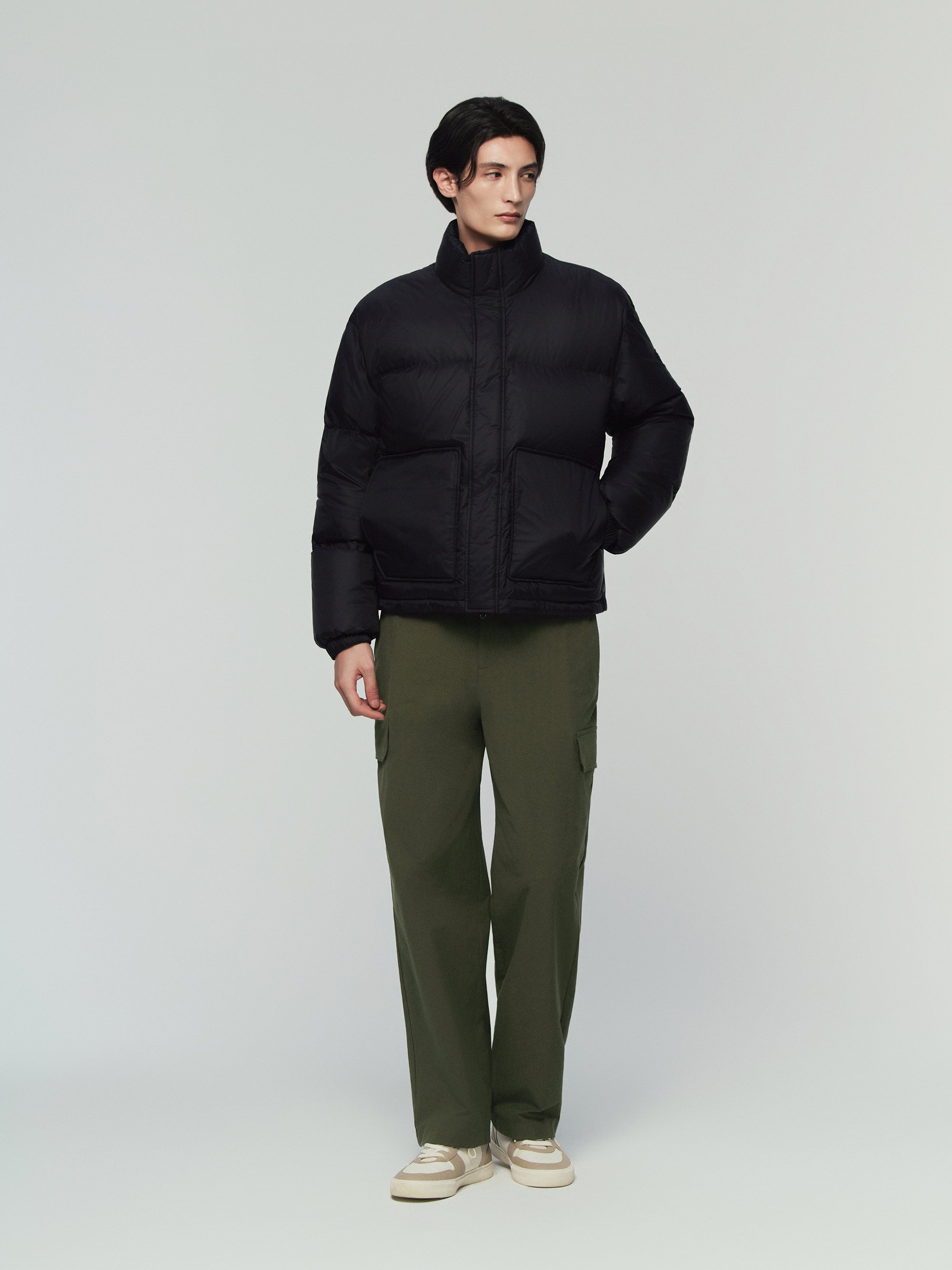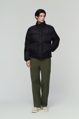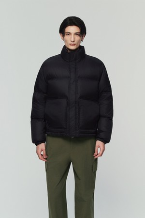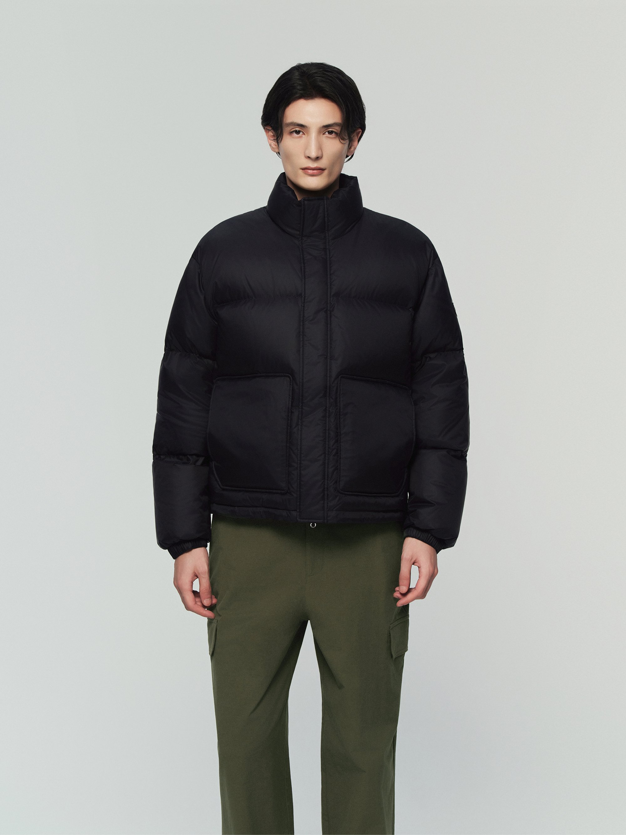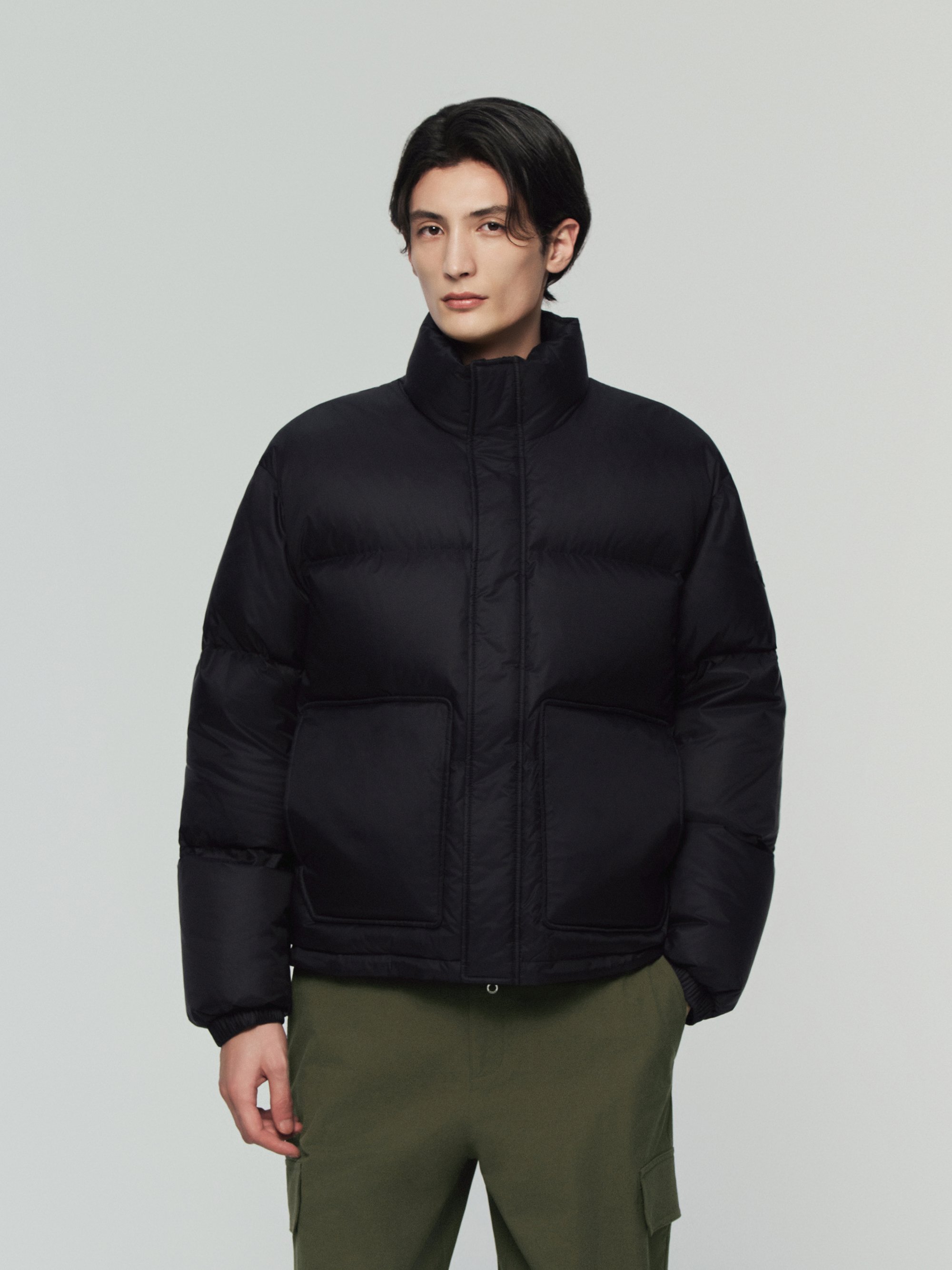 글로시 프론트 포켓 하이넥 숏 세미오버 헤비 다운자켓