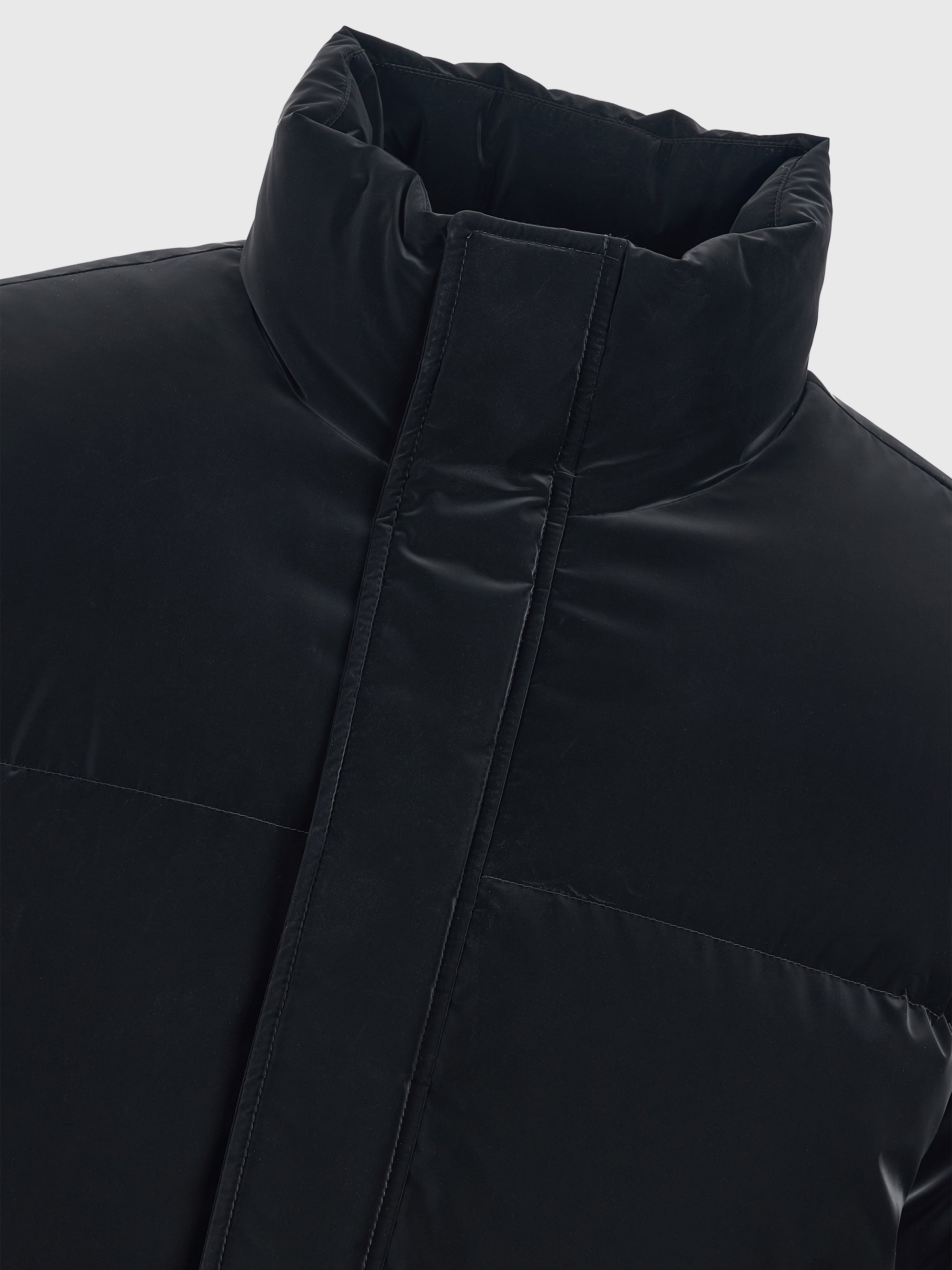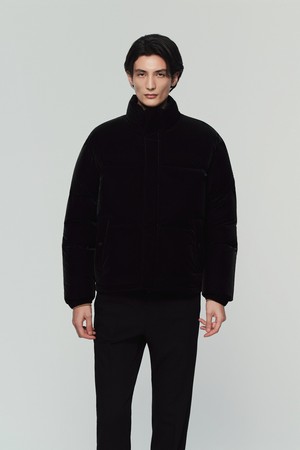 벨벳 프론트 포켓 하이넥 숏 세미오버 헤비 다운자켓